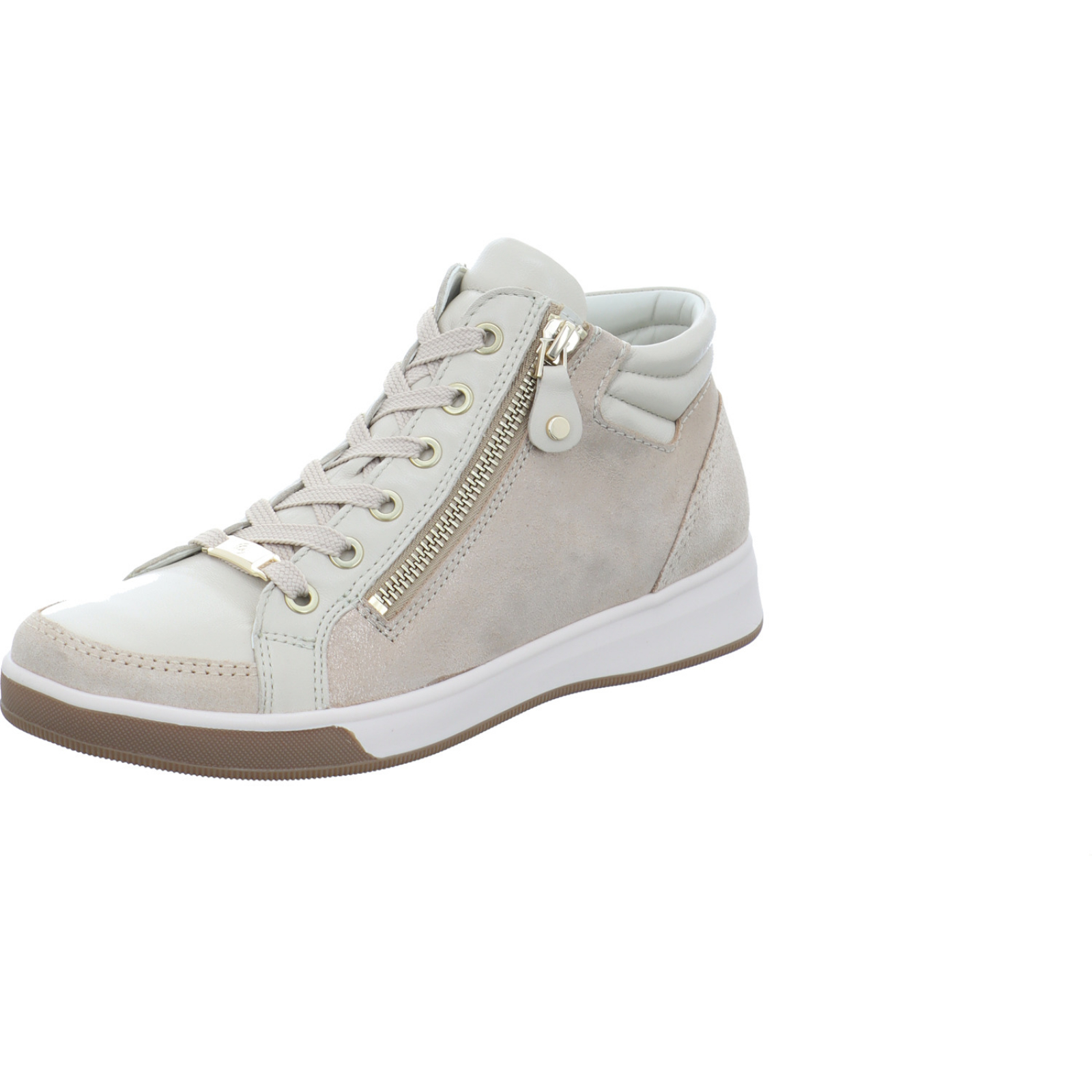 info@ara-shoes.de_____Der beige-goldene Damen-Schnürbootie Rom 12-24499-46 von Ara besteht aus Glatt- und Veloursleder. Das komfortable Wechselfußbett bietet einen optimales Tragegefühl und die High Soft Technologie dämpft jeden Schritt gezielt. Das Innenfutter auf Bambusbasis sorgt für ein hautfreundliches und natürliches Fußklima.