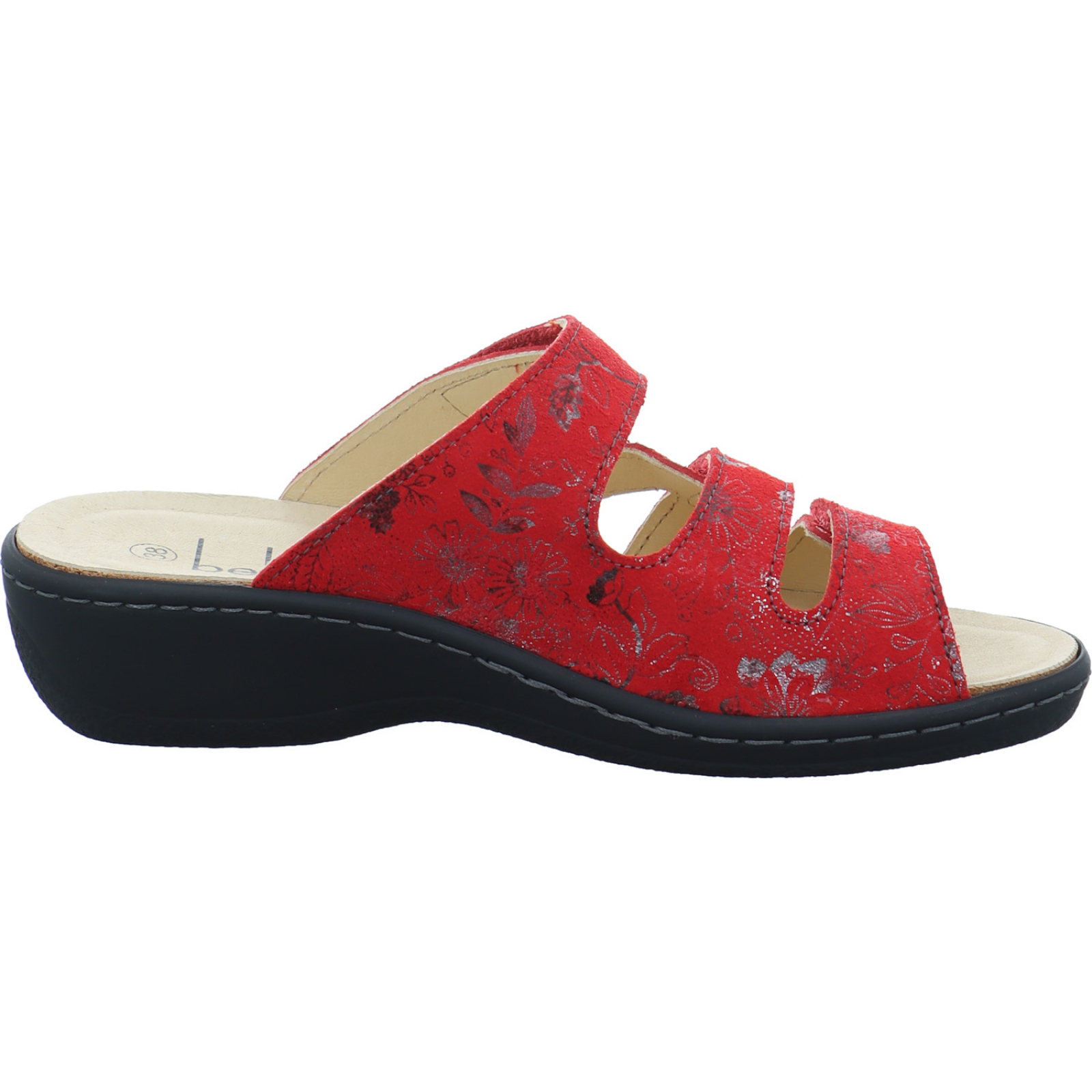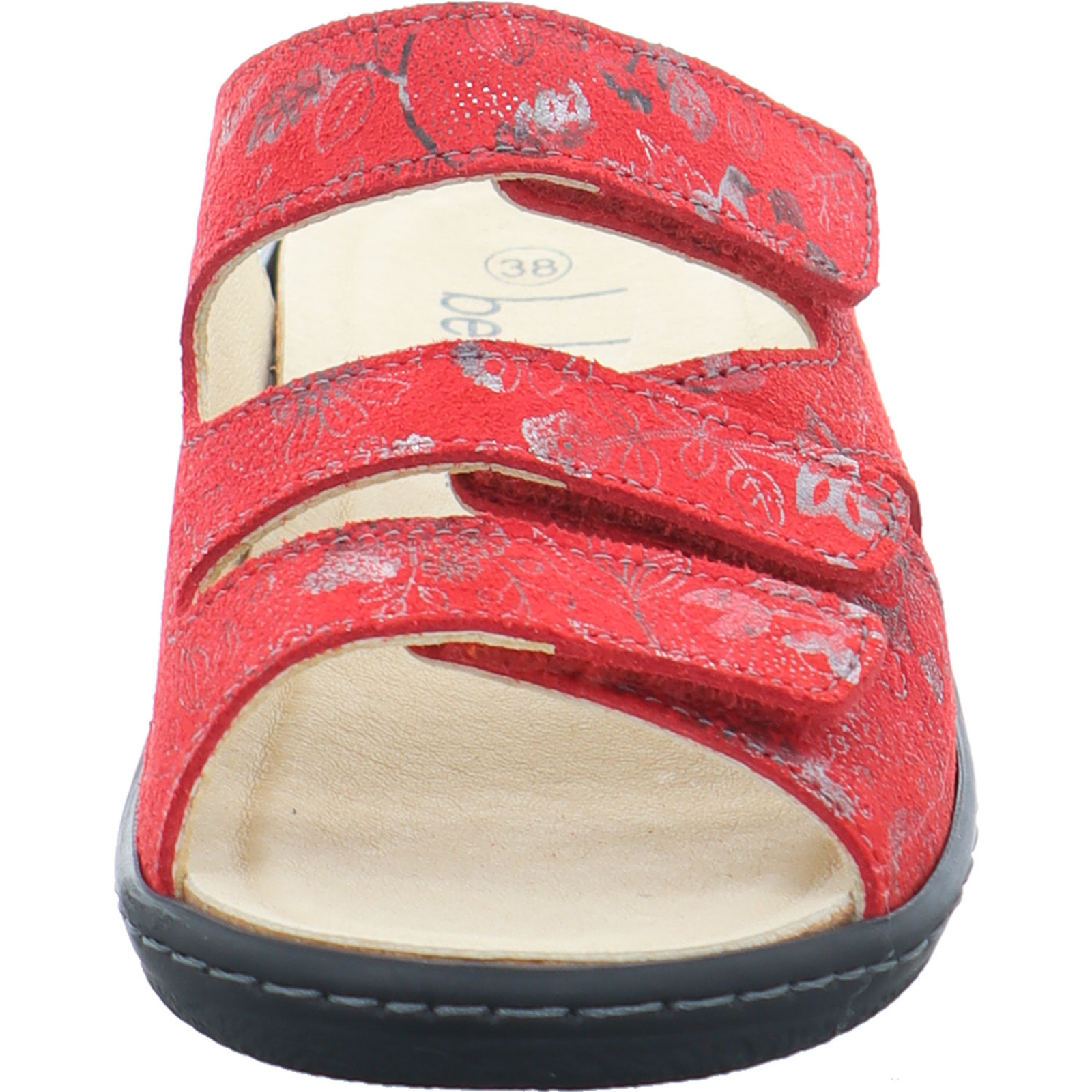 belvidashoes@gmail.com_____Die mittelrote Damen-Pantolette 42.482.0-002 von Belvida besteht aus Veloursleder und kann dank der 3 Klettverschlüsse individuell eingestellt werden. Durch das Wechselfußbett ist ebenfalls das Tragen von losen Einlagen möglich.