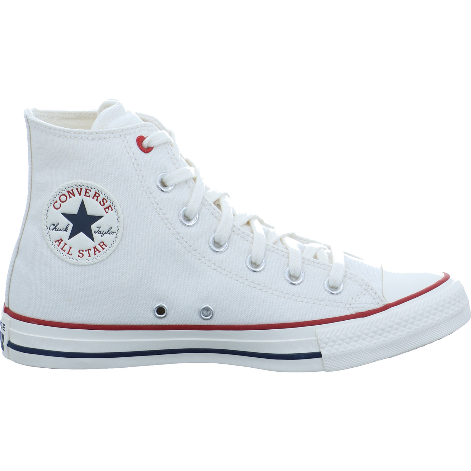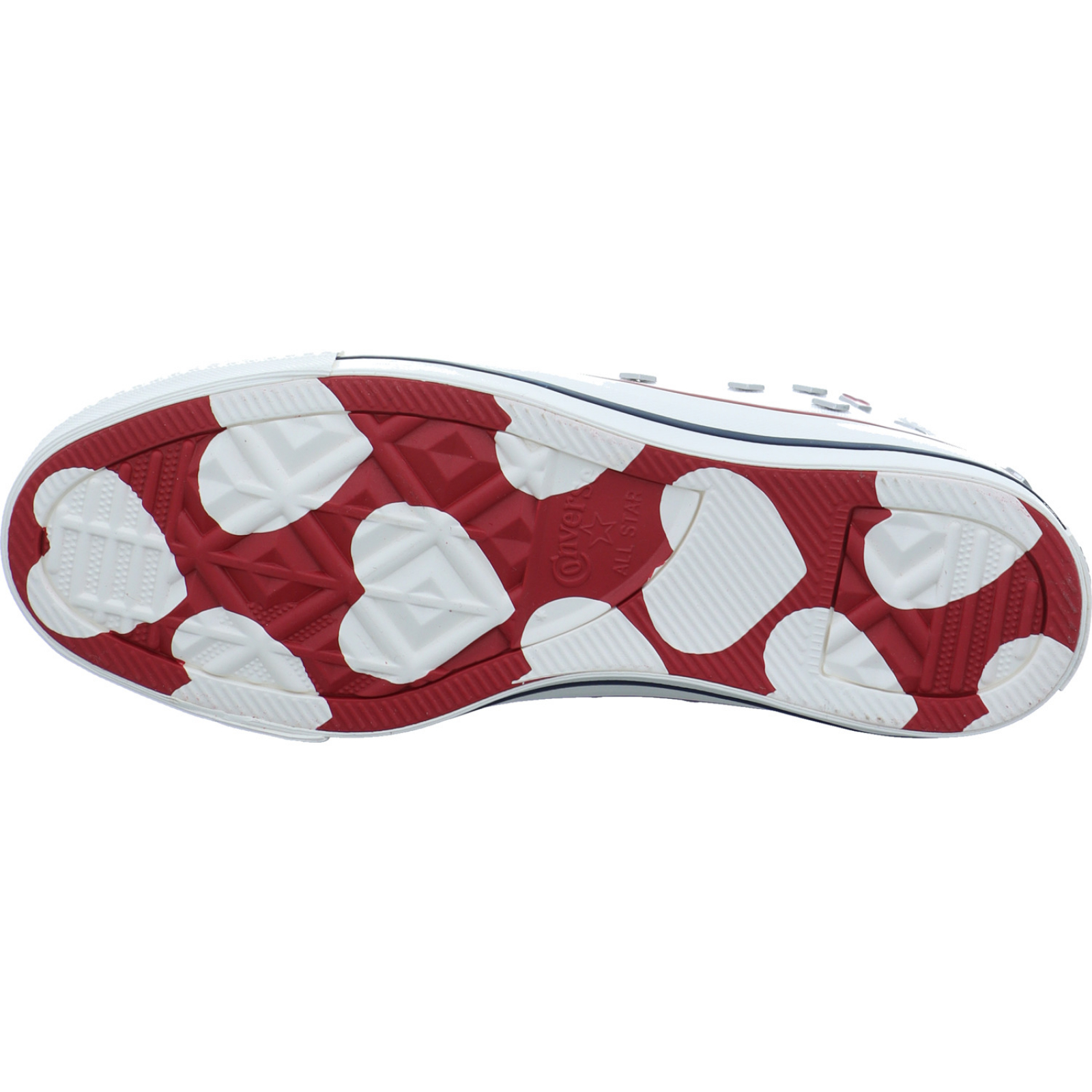 helpme.europe@converse.com_____Mit dem weißen Canvas Damen-Schnürbootie CTAS HI A19055C von Converse ist das Thema LOVE ganz groß geschrieben. Passend hierzu befinden sich auf der Außenseite süße kleine Herzen und auch die Zunge des Schuhs endet im Herz-Design.