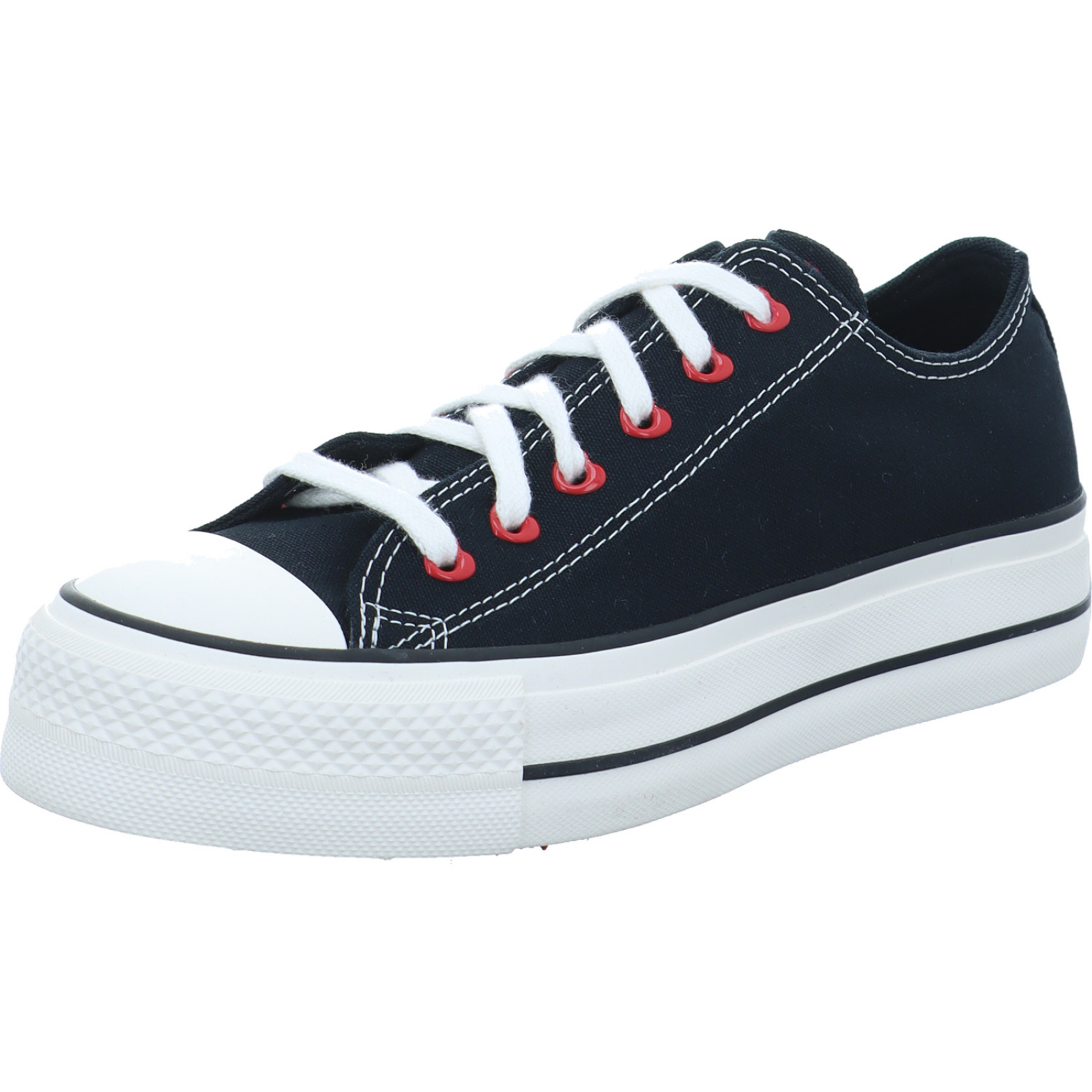 helpme.europe@converse.com_____Der schwarze Damen-Sneaker CTAS Lift OX A19059C von Converse besteht aus Canvas und hat eine Gummi-Vorderkappe. Designt wurde dieser ganz im Thema LOVE, mit Herzchen Ösen und einer Zunge die mit einem süßen Herz endet.