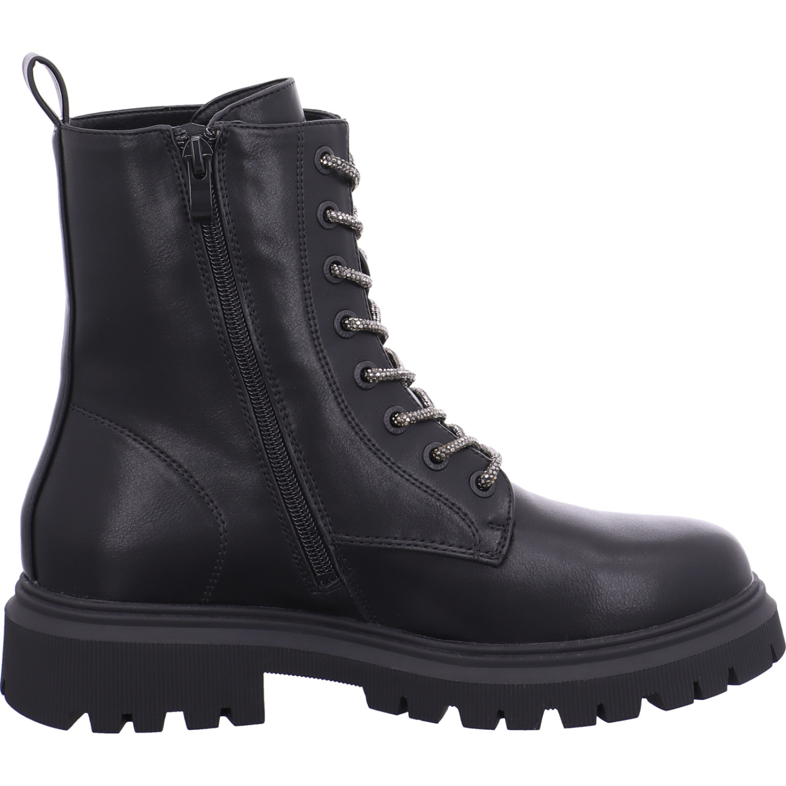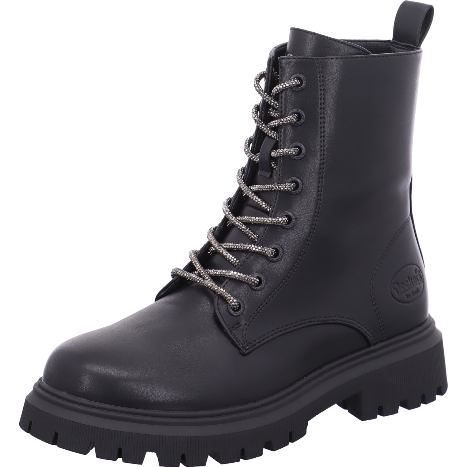 Herstellerinformation: Dockers Schuh-Import u. Export Gerli GmbH Höhstraße 31, 66978 Merzalben, DE info@dockersbygerli.de_____Der schwarze Mädchen-Schnürbootie 55QN710-610100 mit Glitzerschnürsenkel von Dockers besteht aus High-Tech.