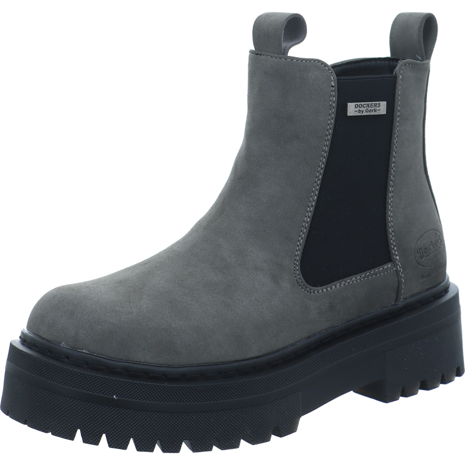 Herstellerinformation: Dockers Schuh-Import u. Export Gerli GmbH Höhstraße 31, 66978 Merzalben, DE info@dockersbygerli.de_____Die sportliche Damen-Stiefelette 57AZ204-810221 von Dockers besteht aus dunkelgrauen High-Tech und einem seitlichen Stretch-Gummi.