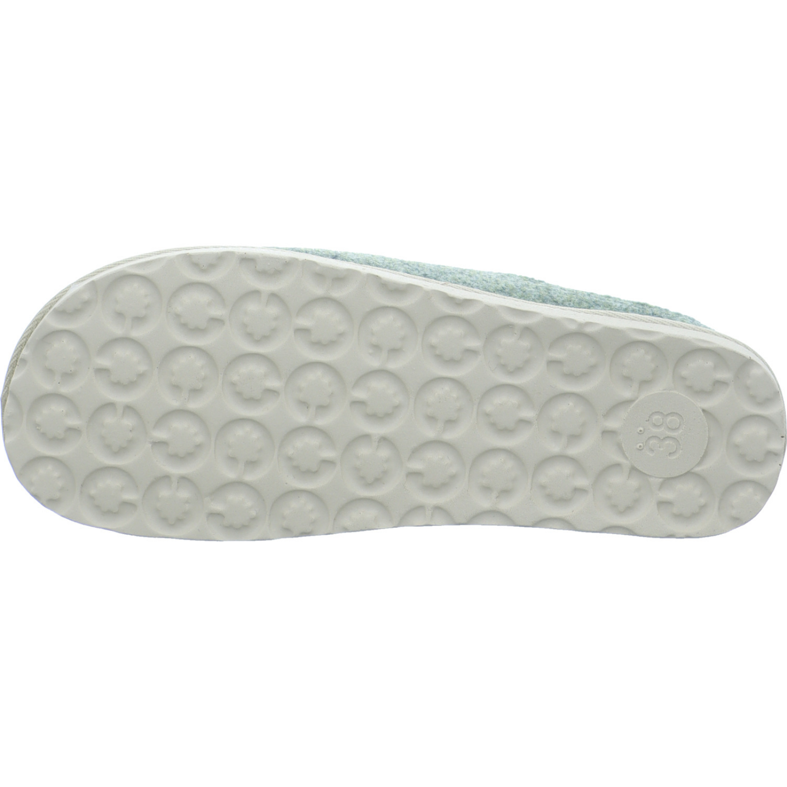 Herstellerinformation: Fischer Markenschuh GmbH Heidkampsweg 21, 29640 Schneverdingen, DE service@fischer-markenschuh.de_____Der mittelgrüne Damen-Hausschuh 655004-461 von Fischer besteht aus Filz und hat ein Wechselfußbett.