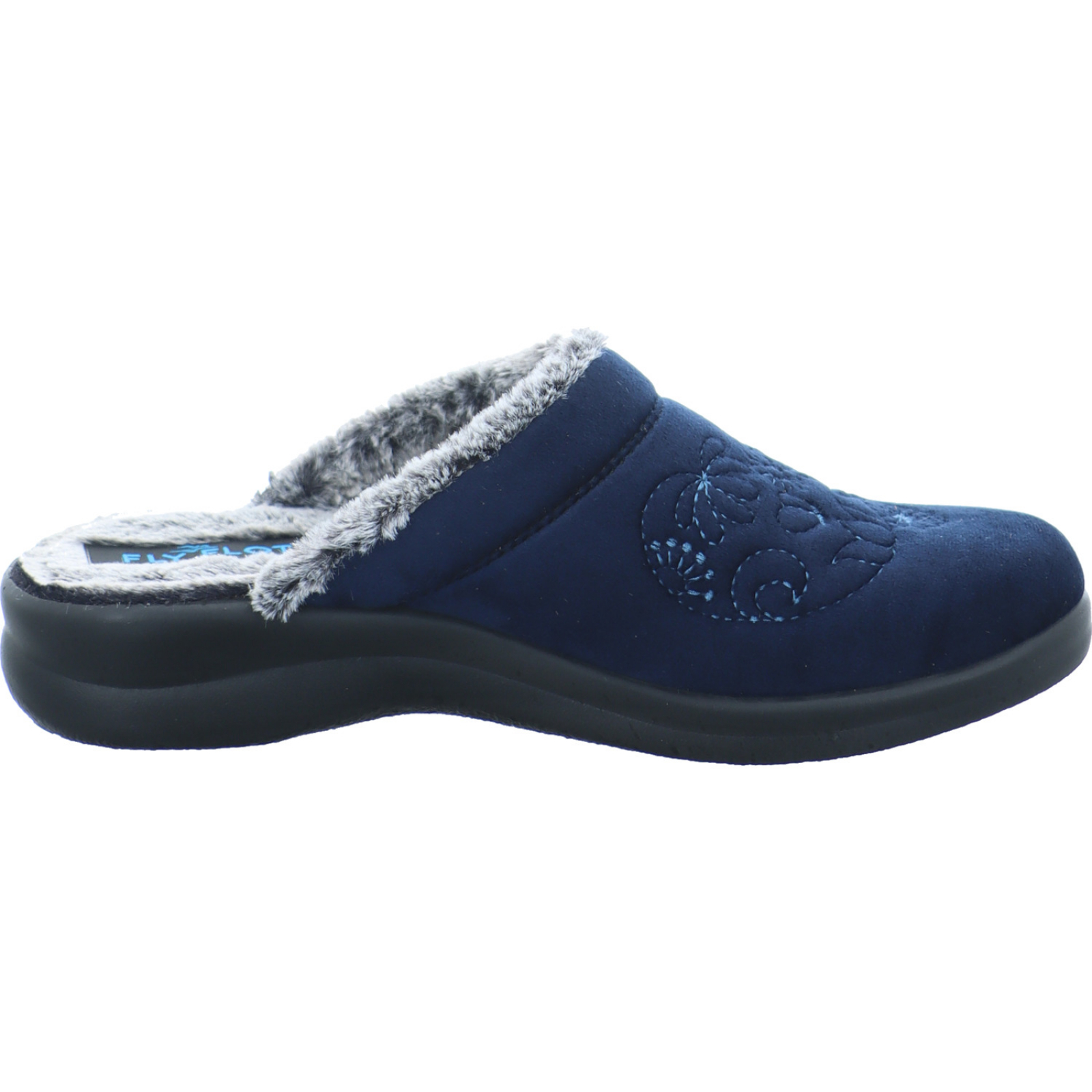 Herstellerinformation: Fly Flot J.H. Pölking GmbH Co. KG Großer Fledderweg 29, 49084 Osnabrück, DE service@poelking-schuhe.de_____Der dunkelblaue Damen-Hausschuh 320251-05 von Fly Flot besteht aus Microvelours.