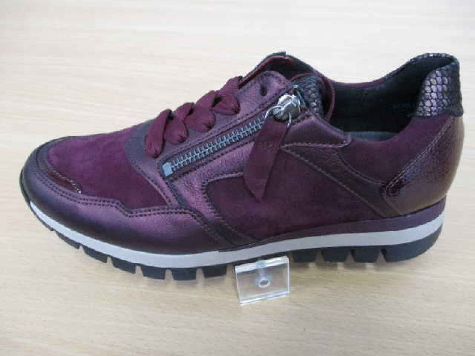 Der dunkellila-farbene Damen-Schnürhalbschuh 56-438-49 von Gabor besteht aus Velours- und Glattleder.