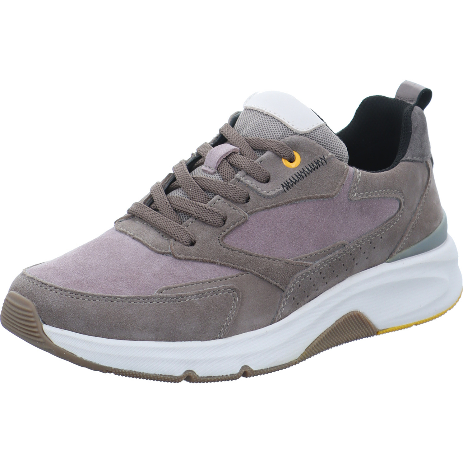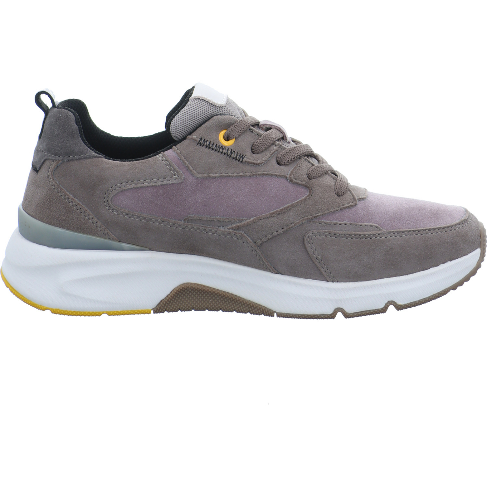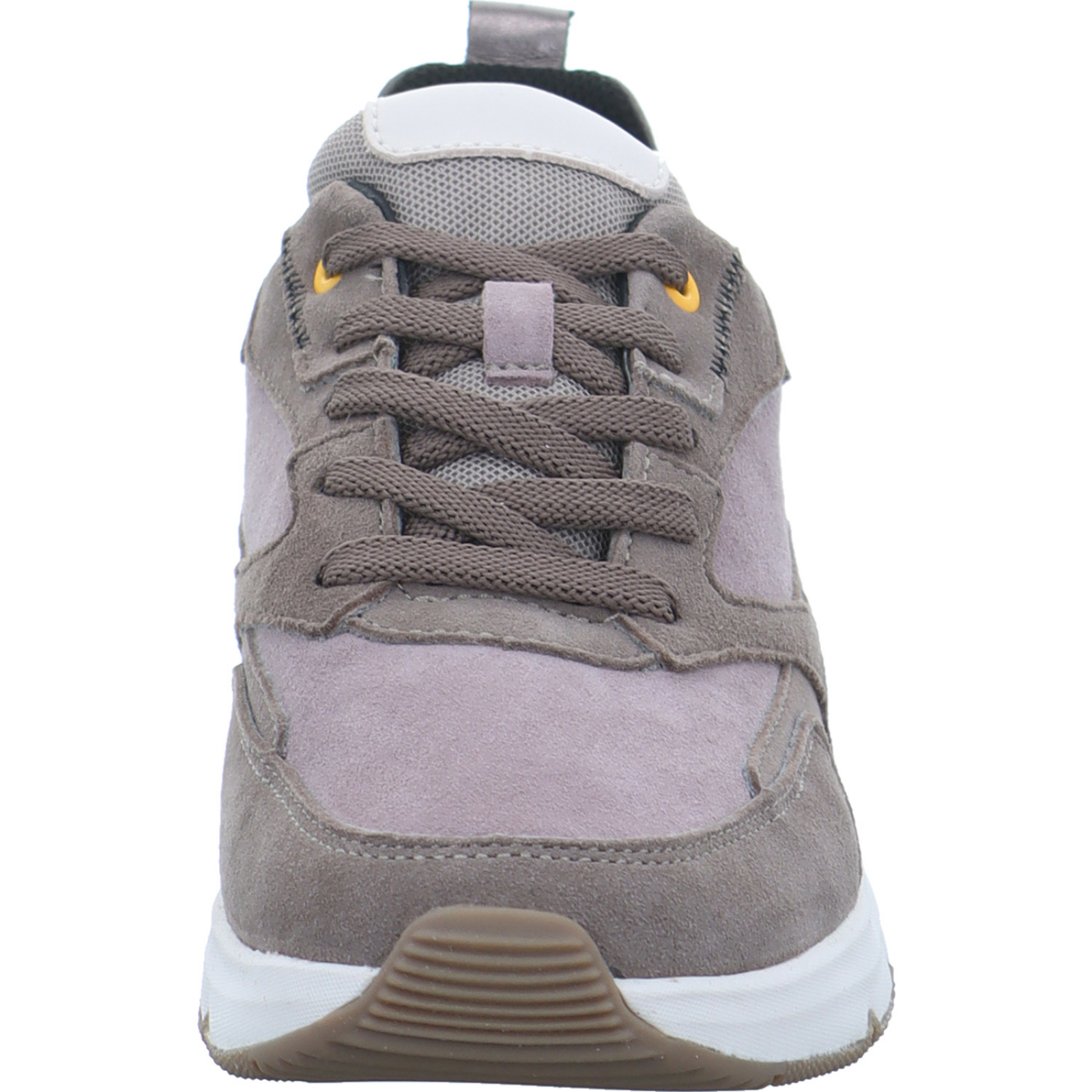info@gabor.com _____Der braun-beige Damen-Schnürhalbschuh 56.895.33 von Gabor Rolling Soft besteht aus Veloursleder und Mesh.