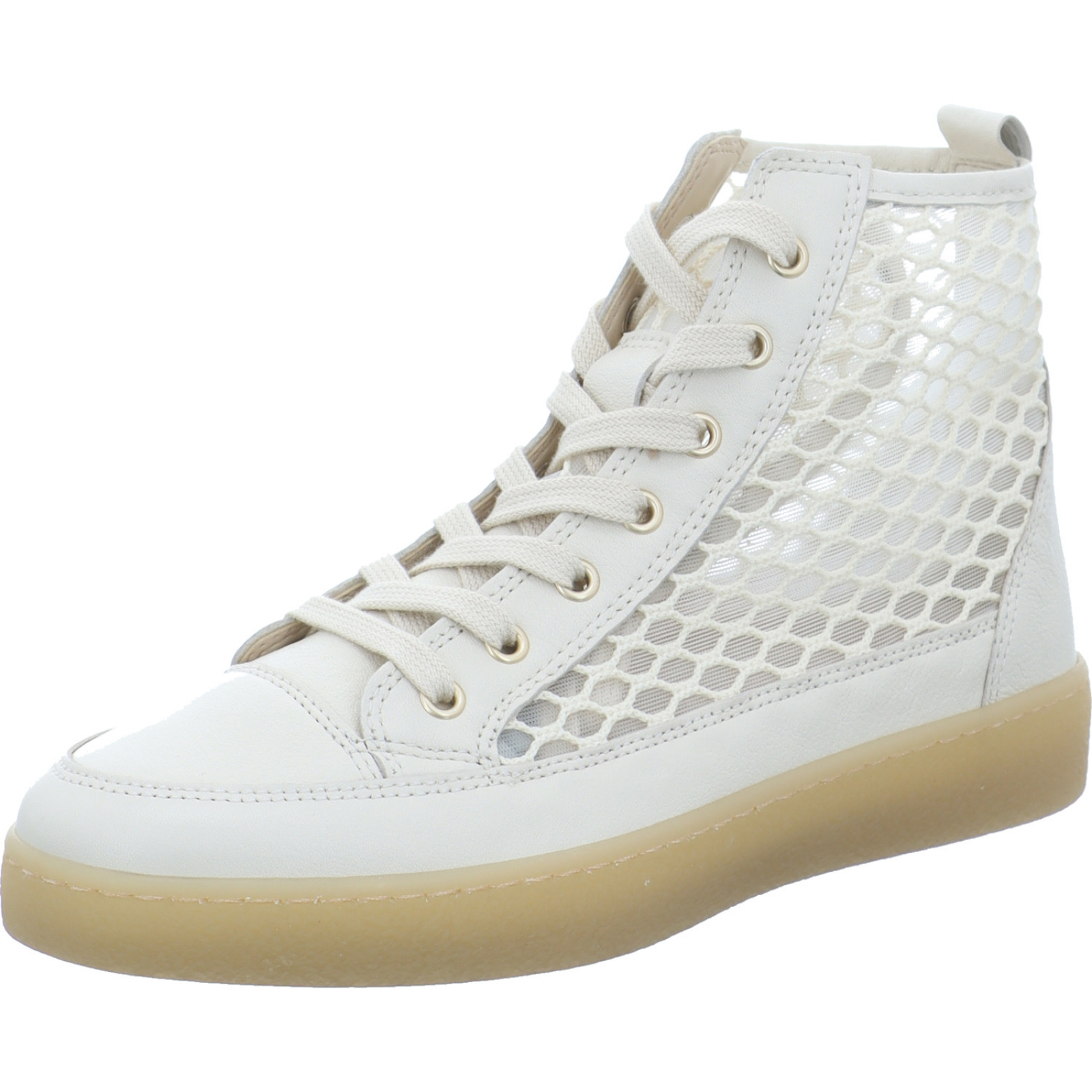 info@gabor.com_____Der sommerliche Damen-Schnürbootie 83.141.40 von Gabor besteht aus hellbeigen Glatteder mit einem Netzeinsatz. Optimalen Komfort bietet das weiche Wechselfußbett aus Microvelours.