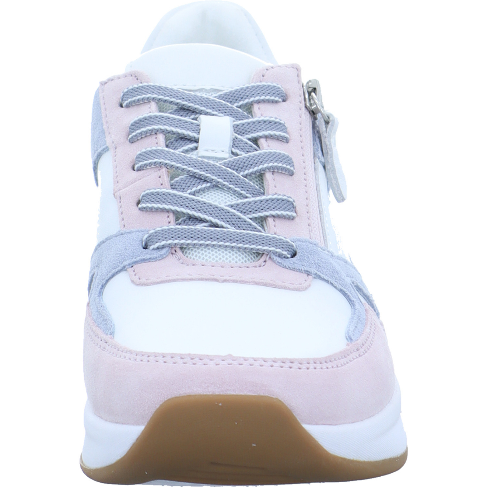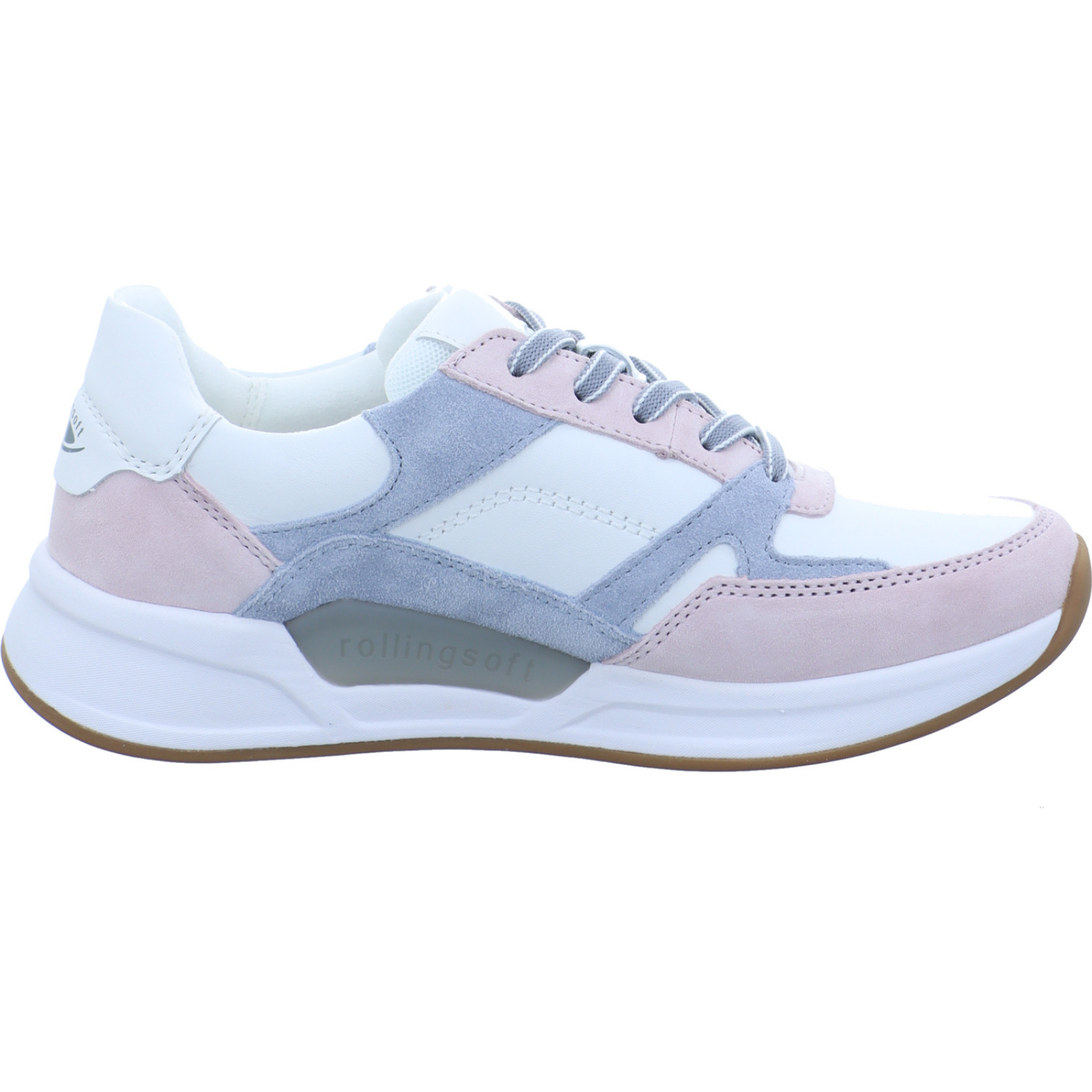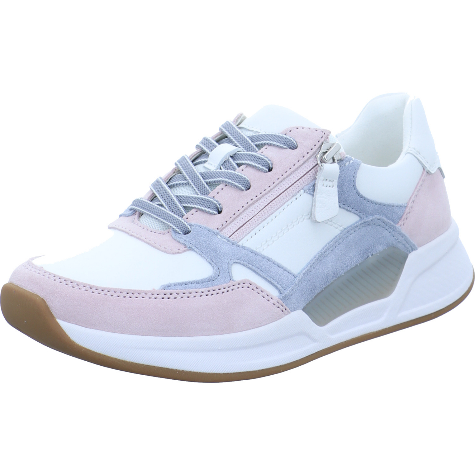 Herstellerinformation: Gabor Shoes AG  Joachim-Gabor-Platz 1, 83024 Rosenheim, DE info@gabor.com_____Der weiss-flieder-lagune-farbene Damen-Schnürhalbschuh 86.958.53 von Rolling Soft besteht aus Velours- und Glattleder sowie Mesh. Ein seitlicher Reißverschluss an der Außenseite des Schuhs emöglicht ein schnelles An- und Ausziehen ohne lässtiges Schnüren. Ebenfalls ist das Tauschen gegen orthopädische Einlagen dank des Wechselfußbettes kein Problem.