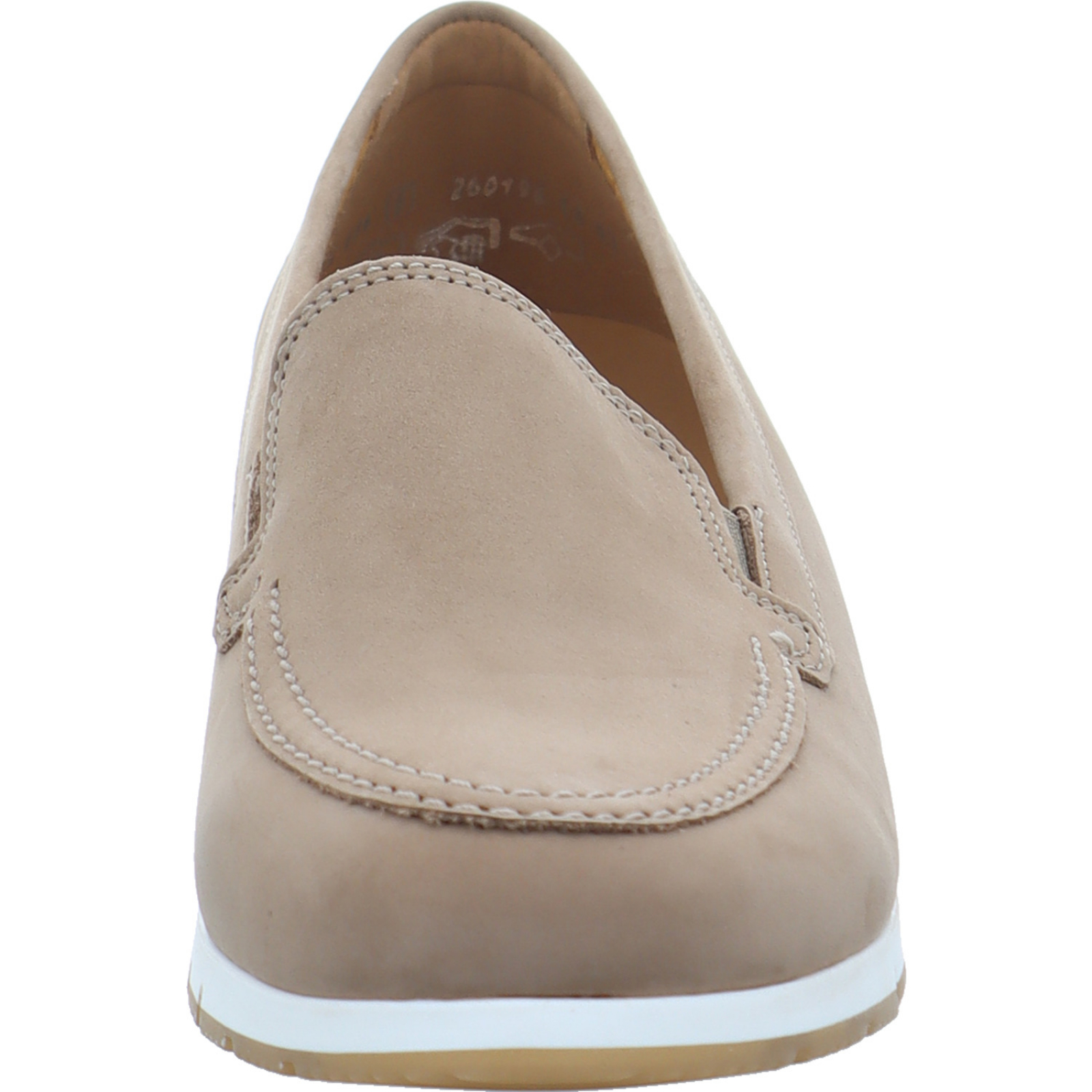 info@gabor.com_____Der mittelbeige Damen-Slipper 82.414-30 von Gabor besteht aus Nubukleder. Duch das komfortable Wechselfußbett ist dieser ideal für orthopädische Einlagen geeignet.
