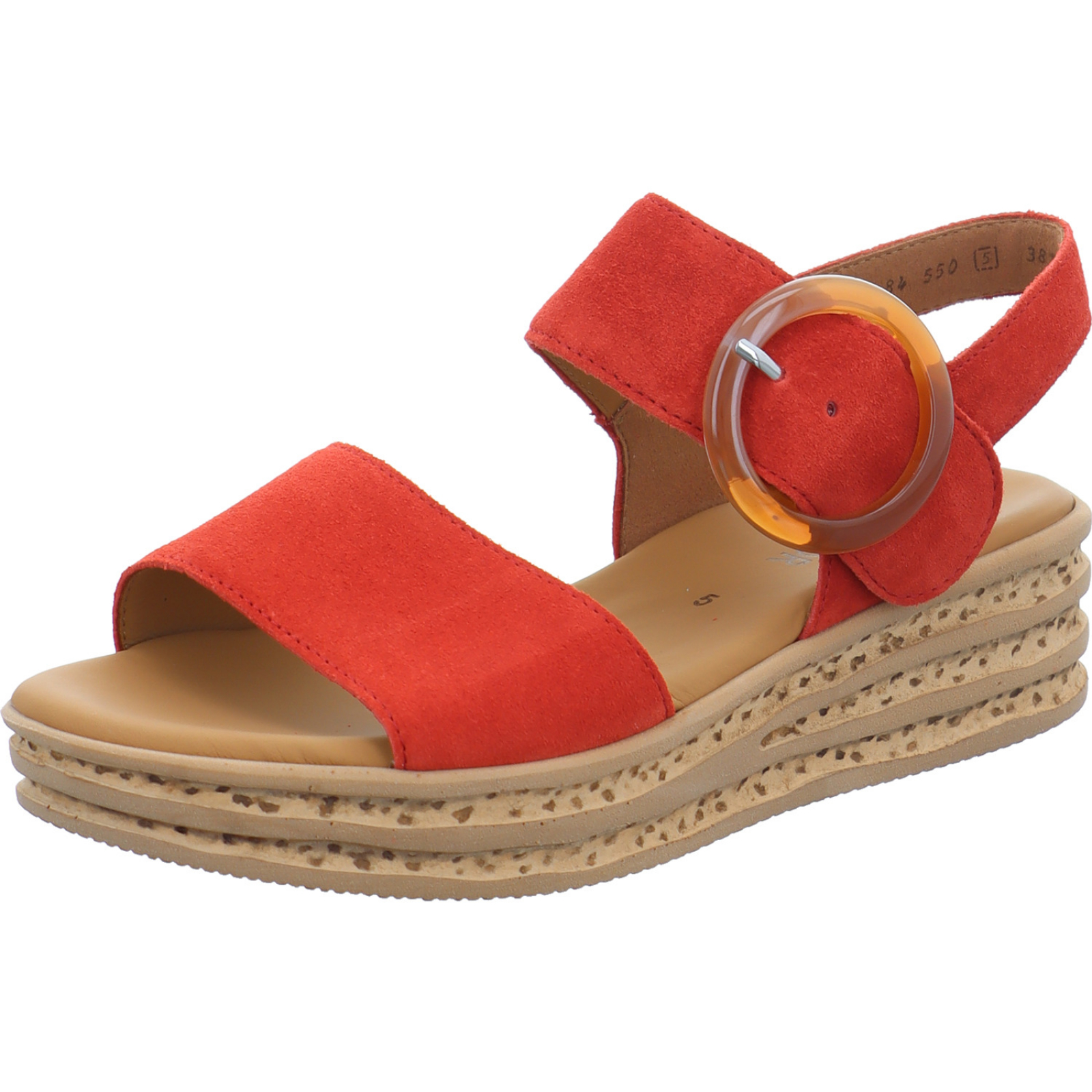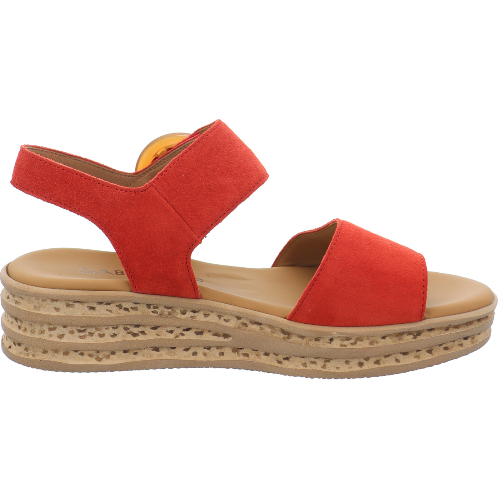 Herstellerinformation: Gabor Shoes AG Joachim-Gabor-Platz 1, 83024 Rosenheim, DE info@gabor.com_____Die mittelrote Damen-Sandalette 84.550-15 von Gabor besteht aus Veloursleder und hat ein komfortables Fußbett aus Leder.