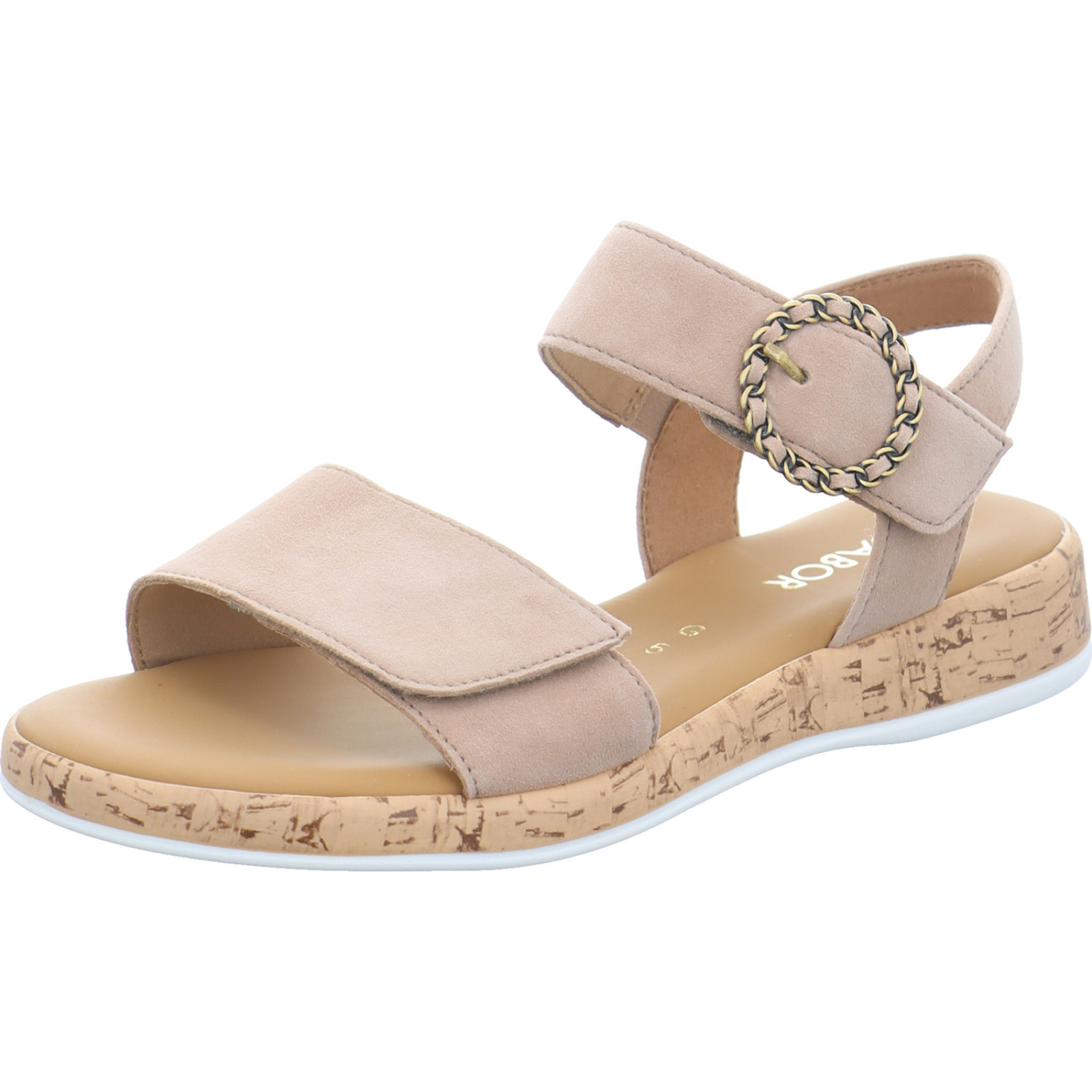 Herstellerinformation: Gabor Shoes AG Joachim-Gabor-Platz 1, 83024 Rosenheim, DE info@gabor.com_____Die mittelbeige Damen-Sandalette 82.734.30 von Gabor besteht aus Veloursleder und hat eine weich gepolsterte Innensohle.