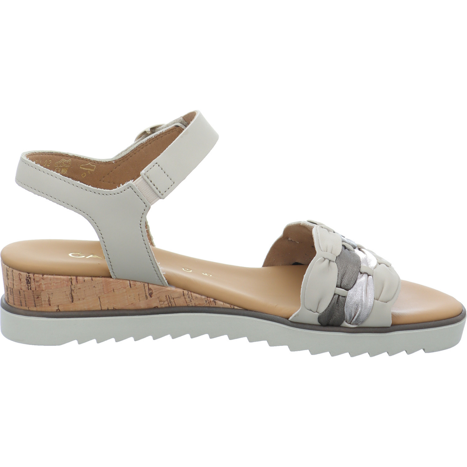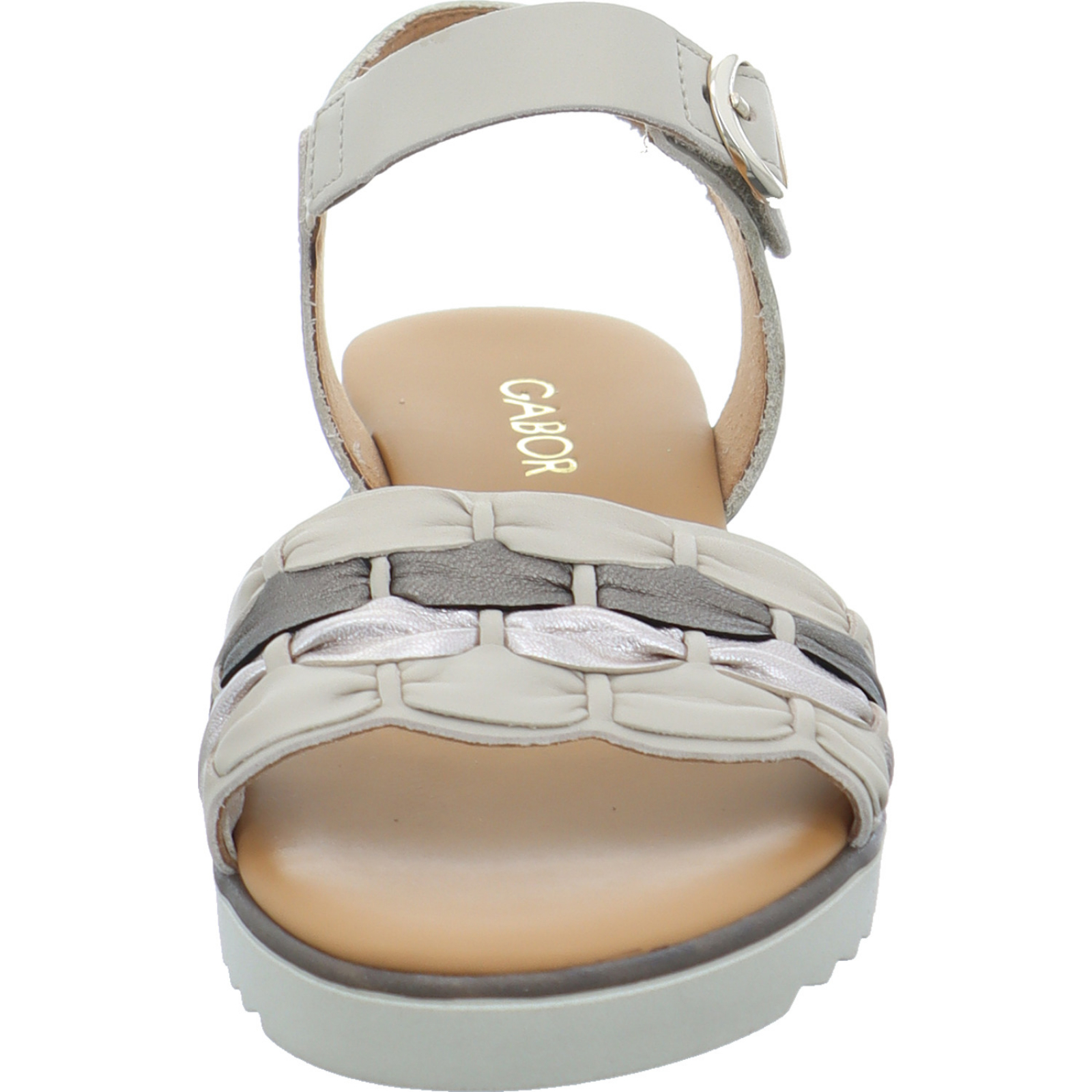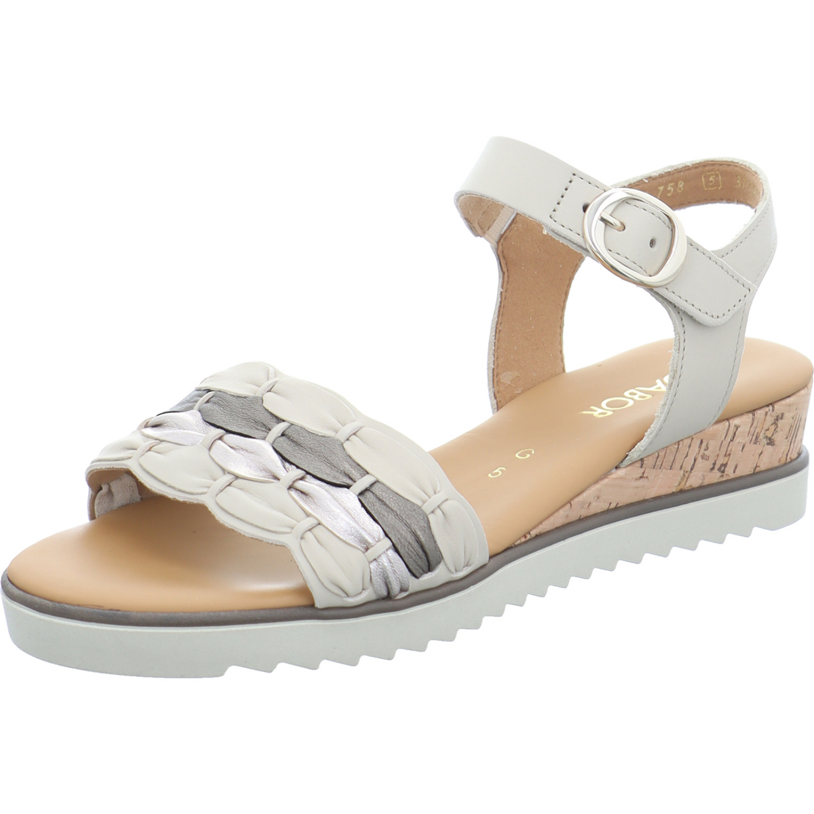 Herstellerinformation: Gabor Shoes AG Joachim-Gabor-Platz 1, 83024 Rosenheim, DE info@gabor.com_____Die beige-silber-farbene Damen-Sandalette 82.758-65 von Gabor besteht aus Glattleder und hat ein komfortables Fußbett.