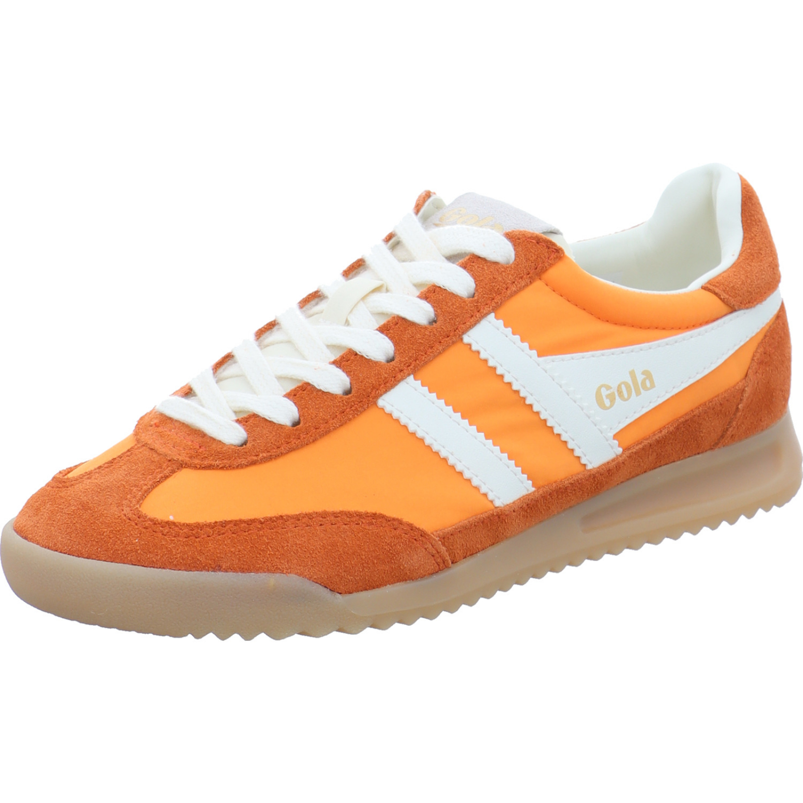 service@catwalkeurope.de_____Der orange-weiße Damen-Sneaker Firefly CLB577UU205 von Gola besteht aus Veloursleder und Textil.