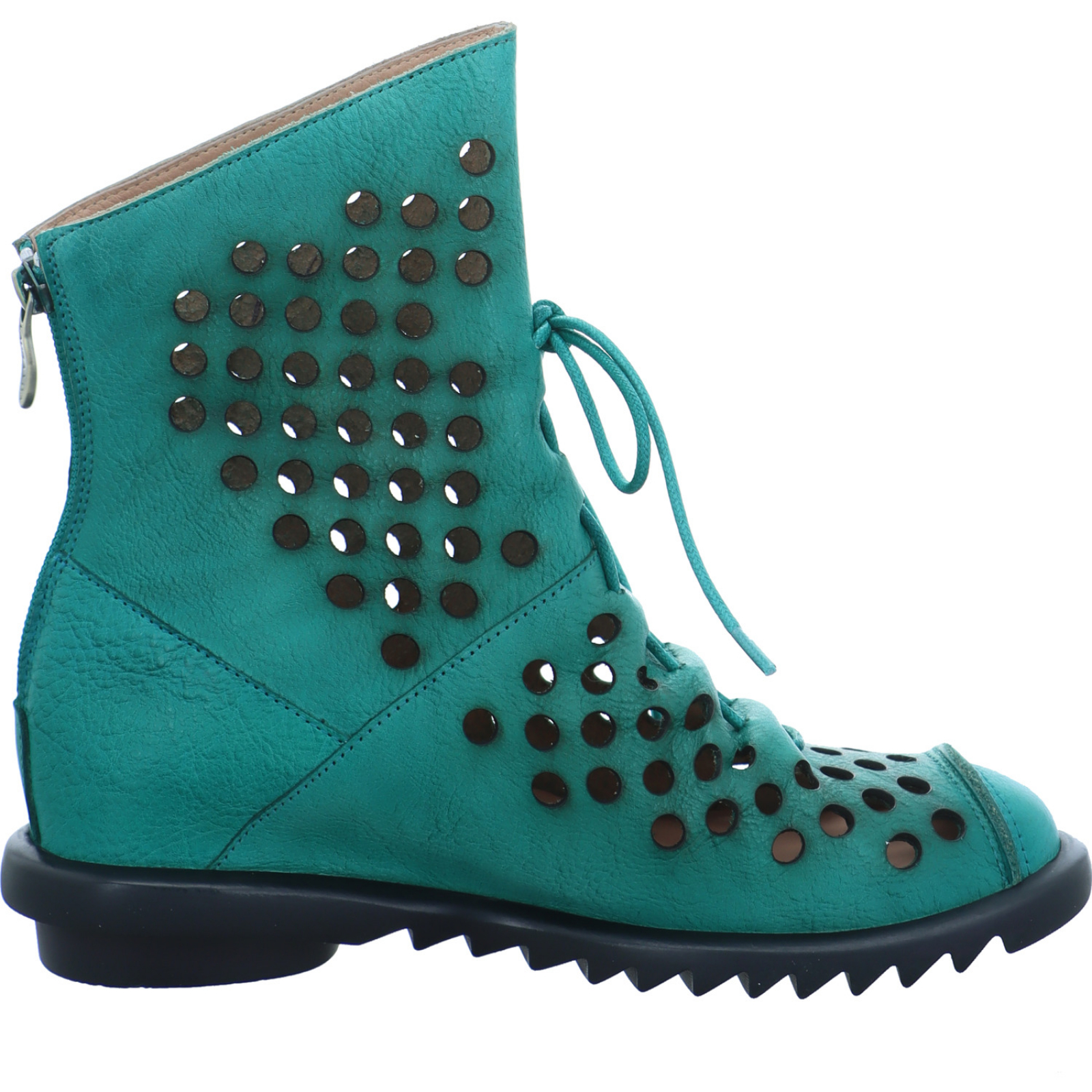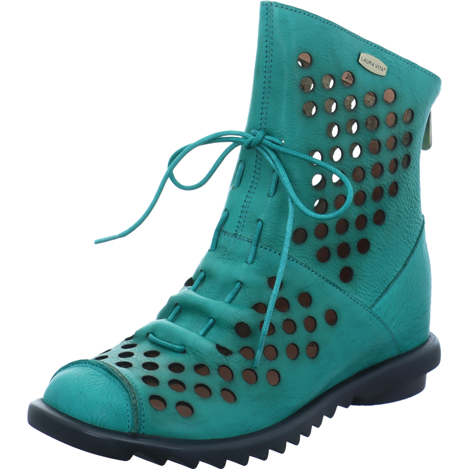 contact@lauravita.com _____Der mint-petrol-farbene Damen-Bootie Cyrielle 11 ZY2666-1 von Laura Vita besteht aus gelochten Glattleder. Durch das schlichte aber dennoch außergewöhnliche Design, ist dieses Modell ein echter Hingucker.
