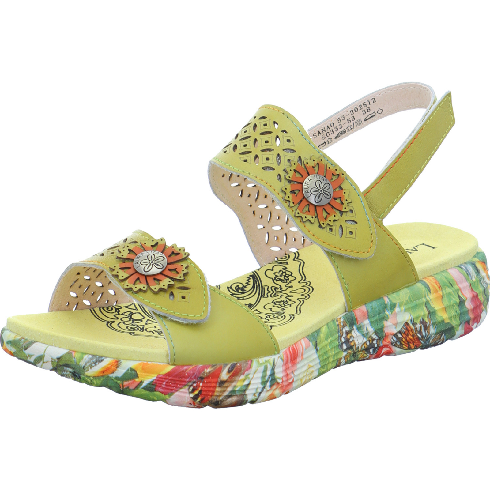 contact@lauravita.com _____Die grasgrün-braune Damen-Sandalette Sanao 53 SO333-53 von Laura Vita besteht aus teilweise gelochten Glattleder. Das weiche Fußbett sorgt auch bei langen Tagen auf den Beinen für einen optimalen Komfort.