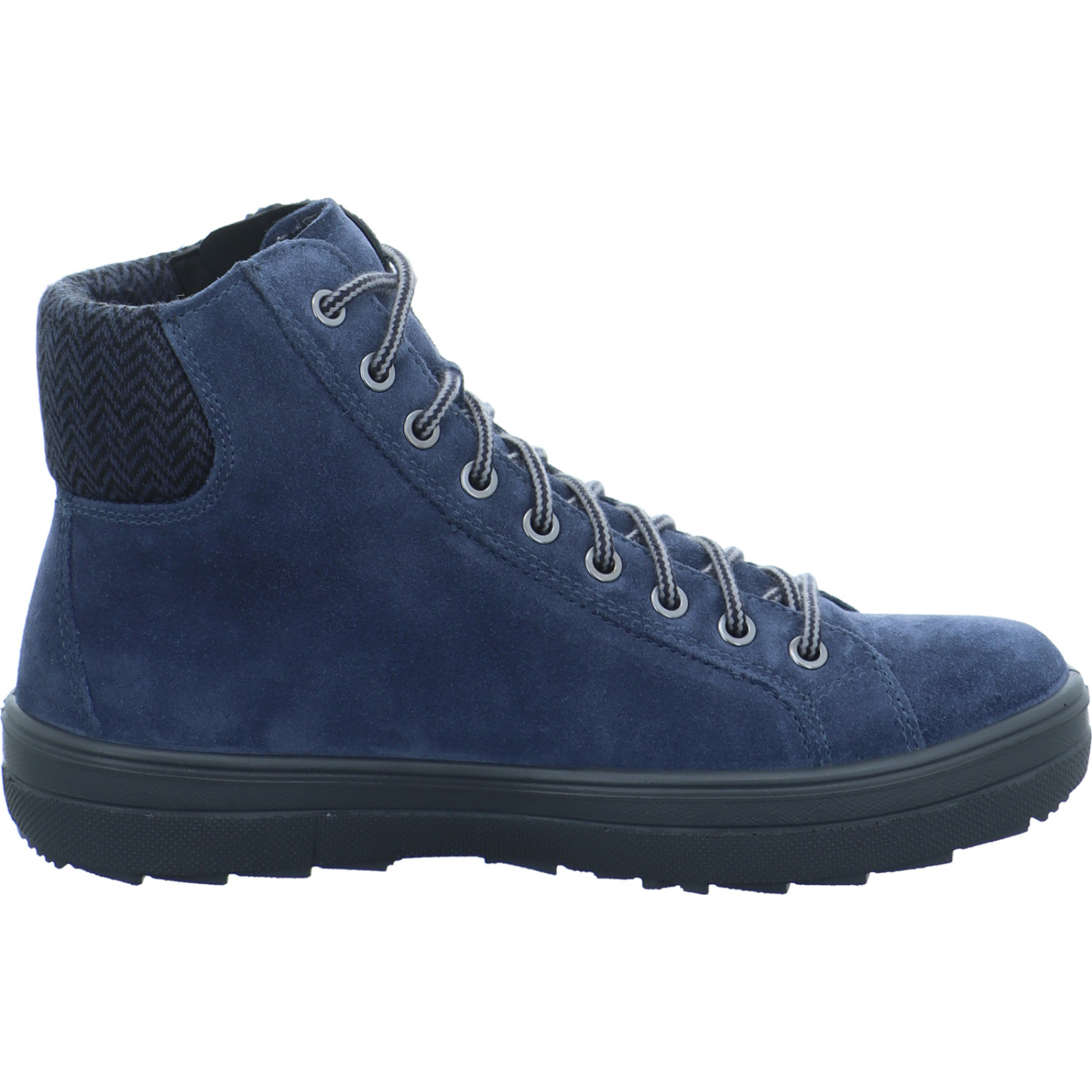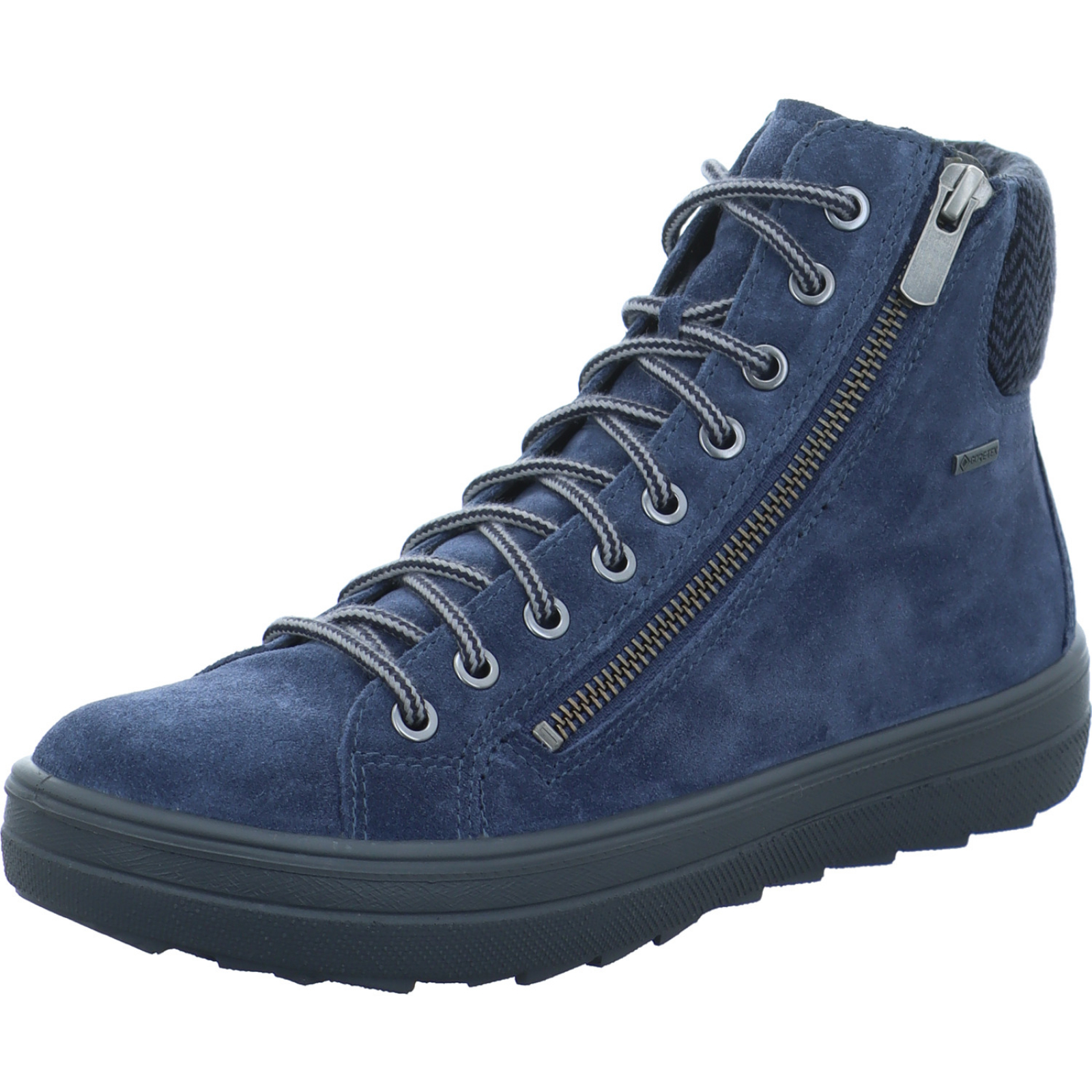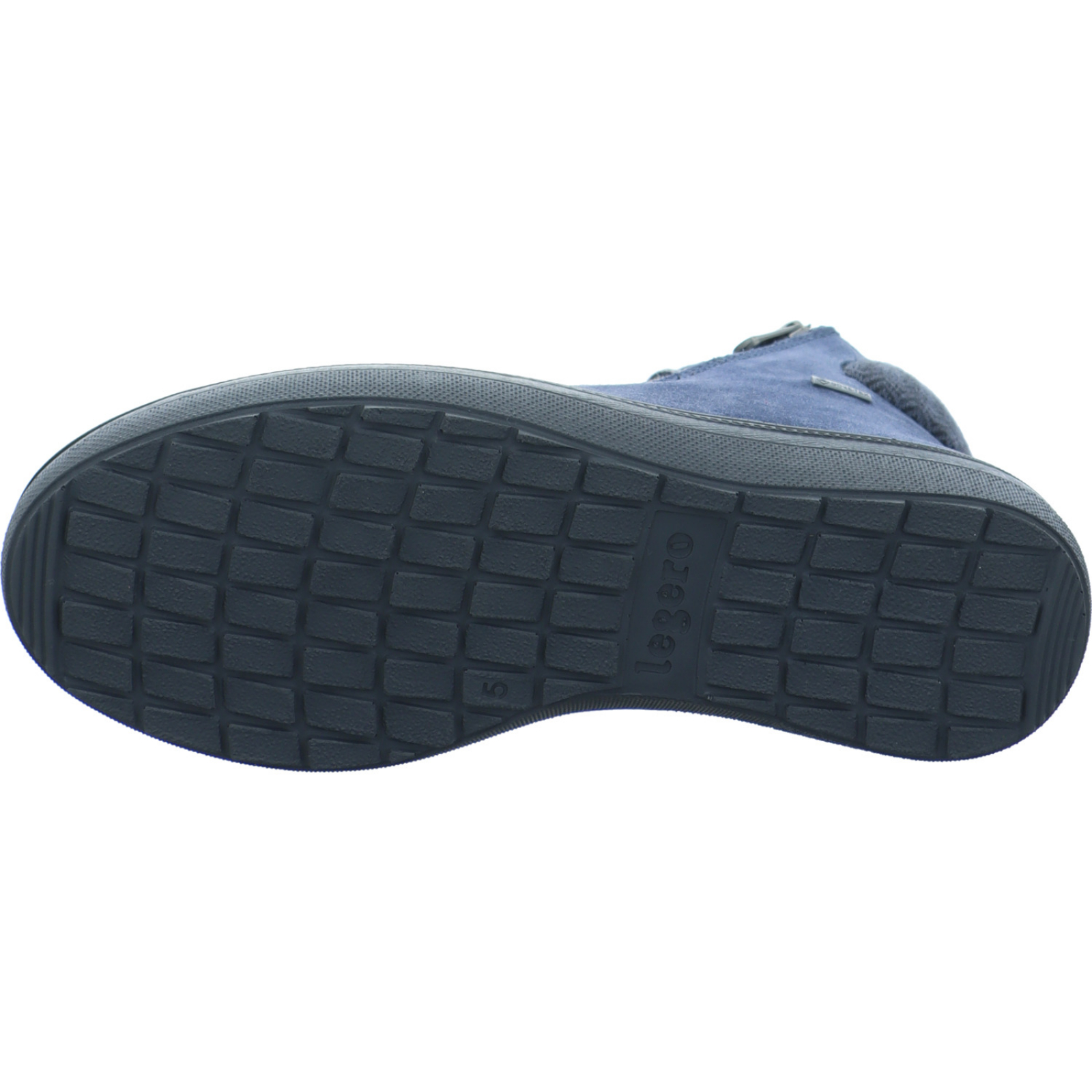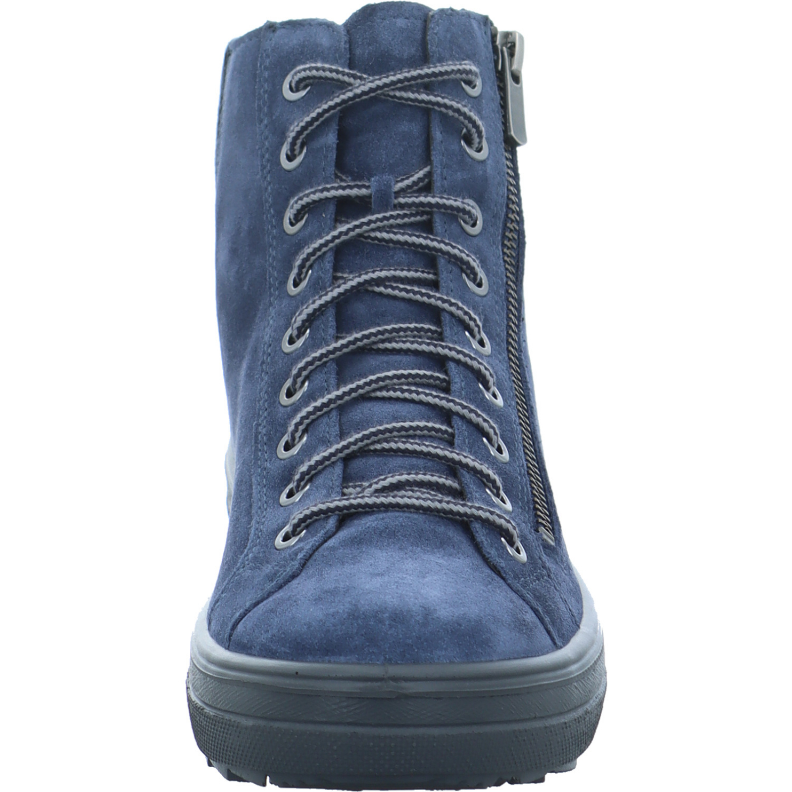 info@legero.com_____Der jeansblaue Damen-Schnürbootie 2-009635-8600 von Legero besteht aus Veloursleder und hat ein Wechselfußbett.