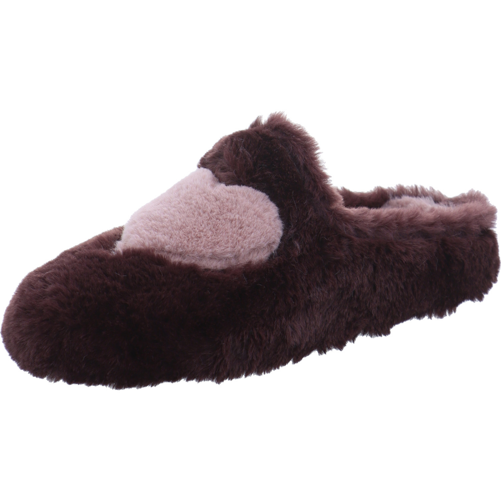 service@poelking-schuhe.de_____Der bordo-farbene Damen-Hausschuh 320220-41 von Manitu besteht aus Teddy und hat ein Wechselfußbett.