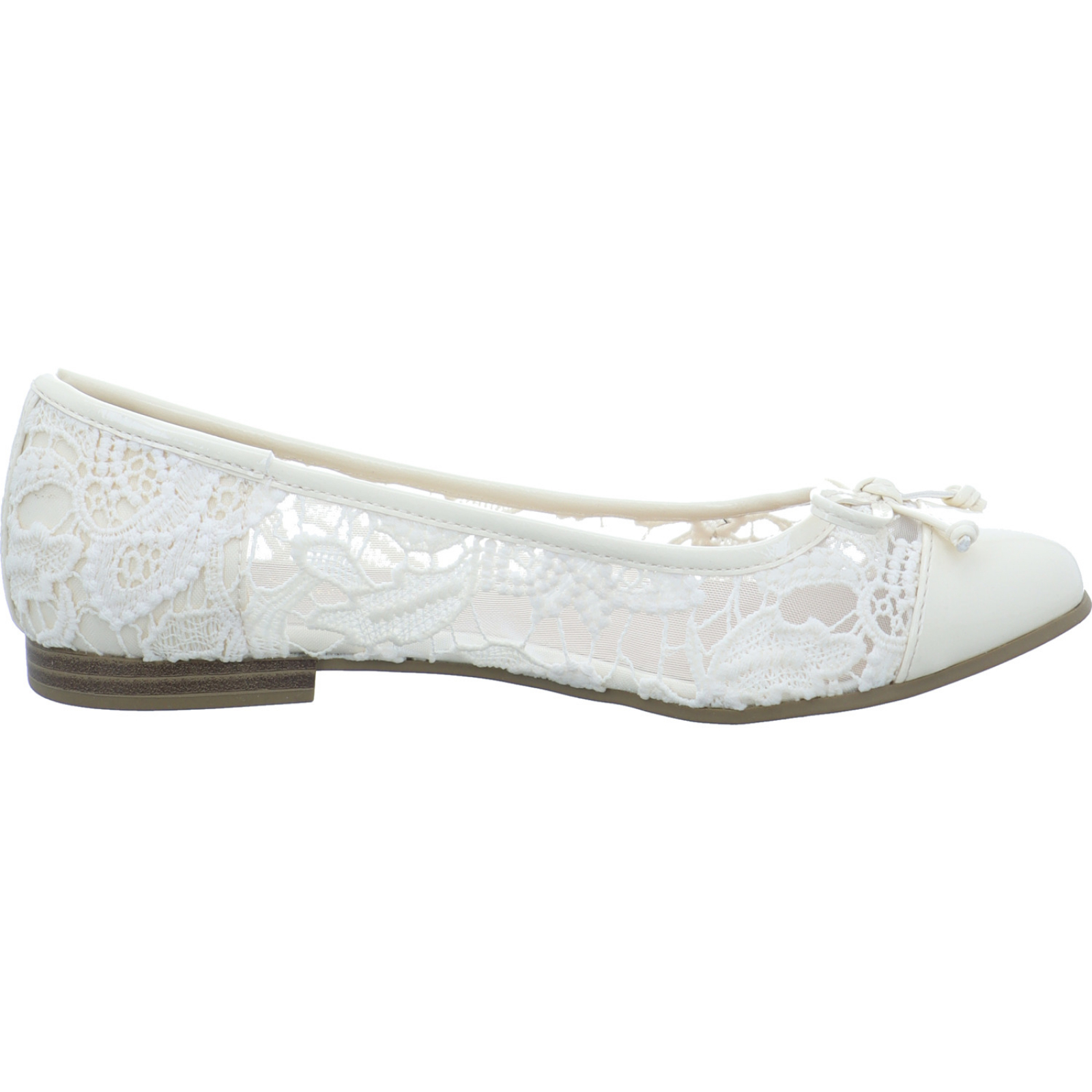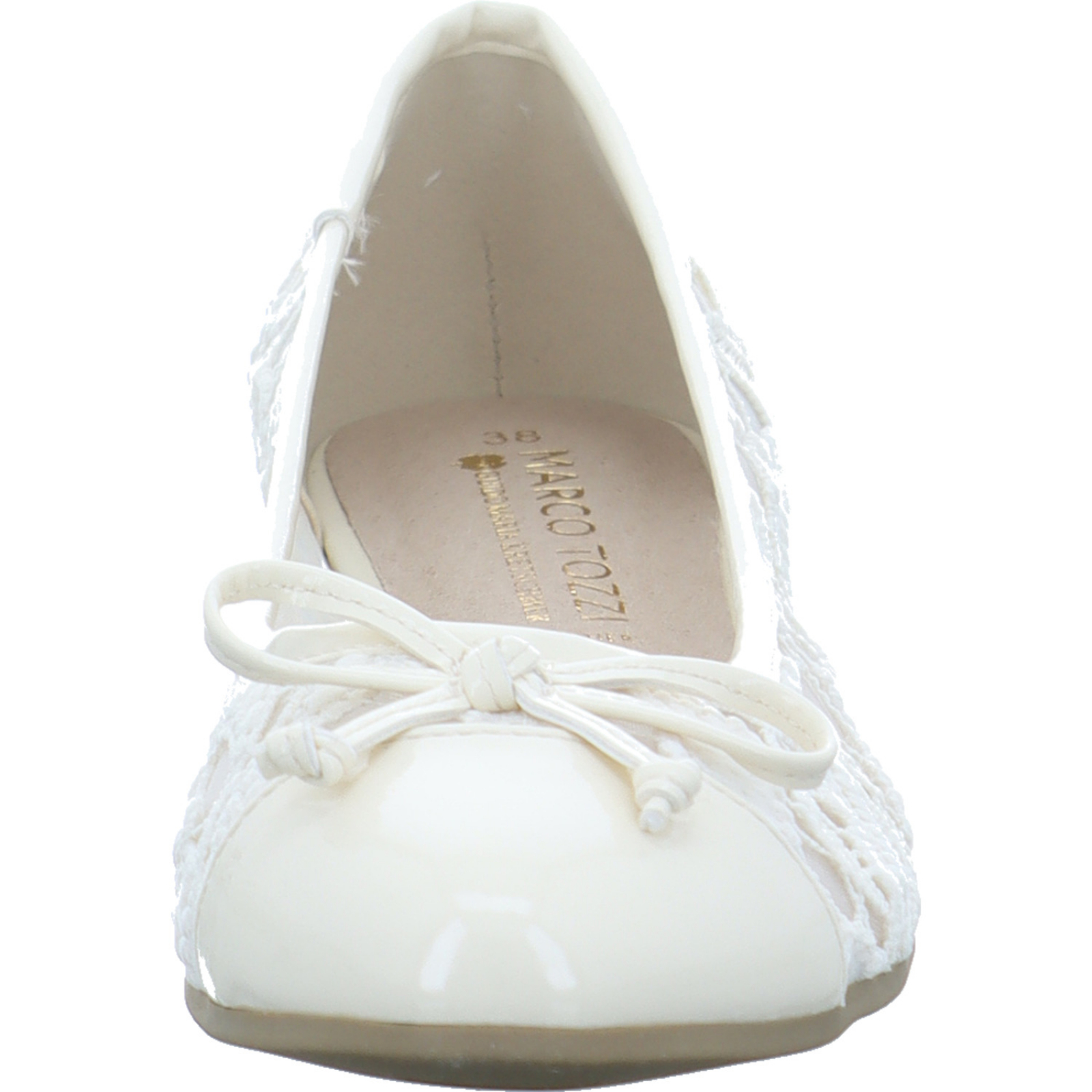 Herstellerinformation: MARCO TOZZI Shoes GmbH Co. KG Klingenbergstr. 1-3, 32758 Detmold, DE service@marcotozzi.com_____Der off-white Damen-Ballerina 2-82102-46-402 von Marco Tozzi aus der Guido Maria Kretschmer Kollektion besteht aus Textil, Lack und einem Netzeinsatz.