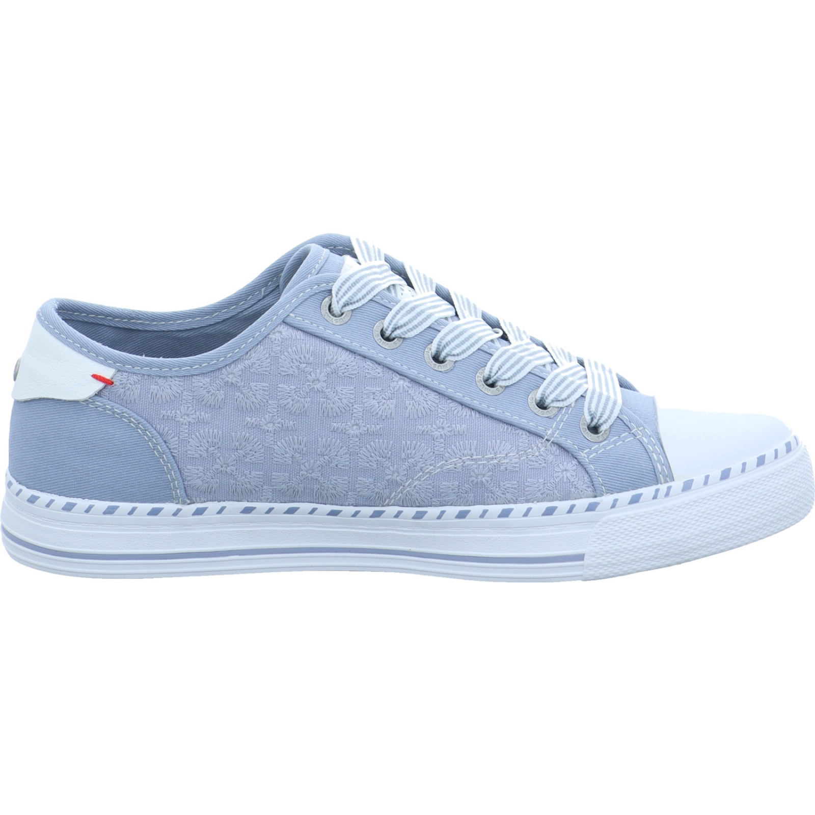Herstellerinformation: Mustang Shoes Supremo Shoes Boots GmbH Blocksbergstr. 174, 66955 Pirmasens, DE info@supremo-shoes.de_____Der jeansblaue Damen-Sneaker 26M0152003/00270 von Mustang besteht aus Canvas und hat eine Gummi-Vorderkappe.