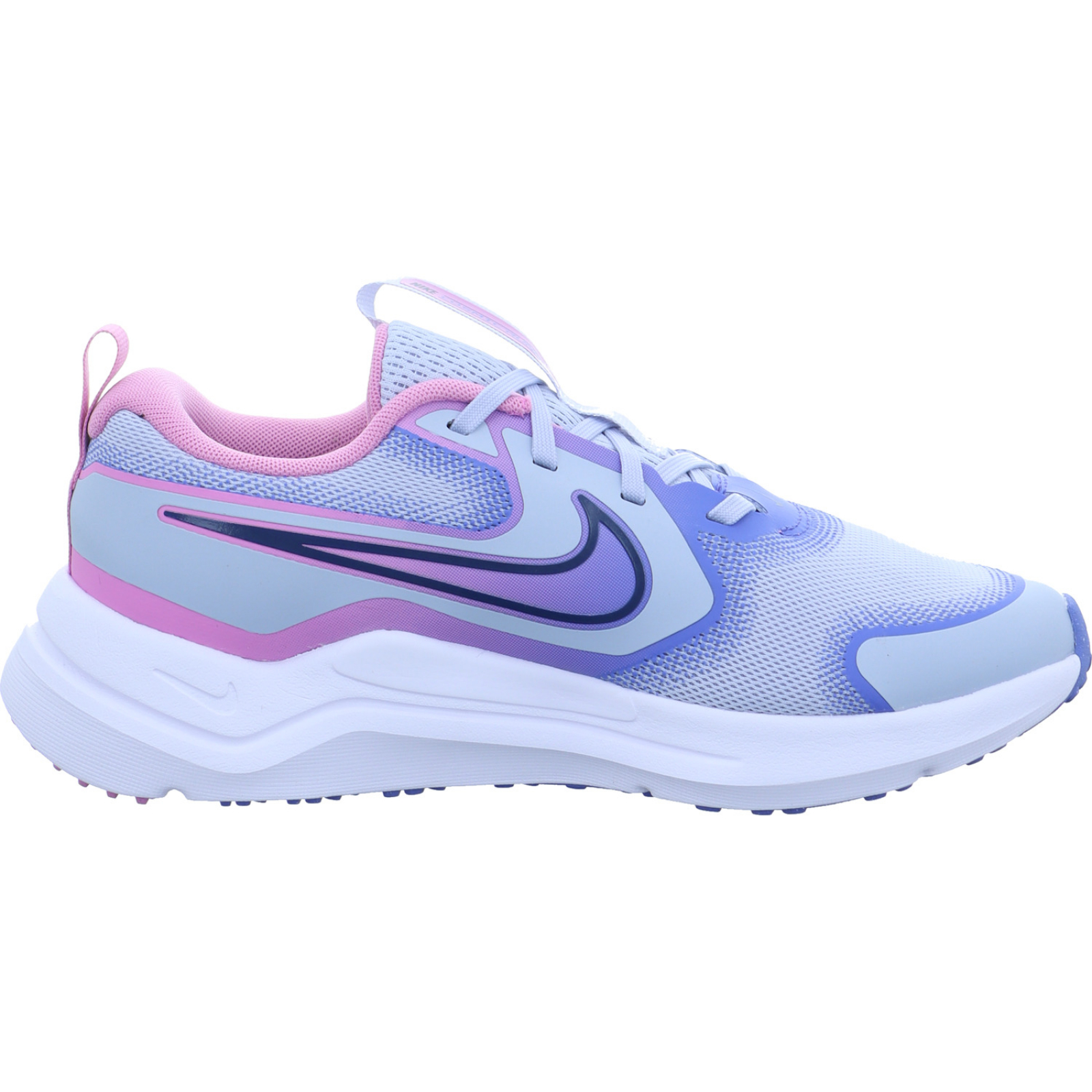 Herstellerinformation: Nike Retail BV Colosseum 1, 1213 NL Hilversum, NL serviceinfo.eu@nike.com_____Der grau-lila-farbene Mädchen-Sportschuh Cosmic Runner GS HM4402-011 von Nike besteht aus Textil, High-Tech und Mesh.