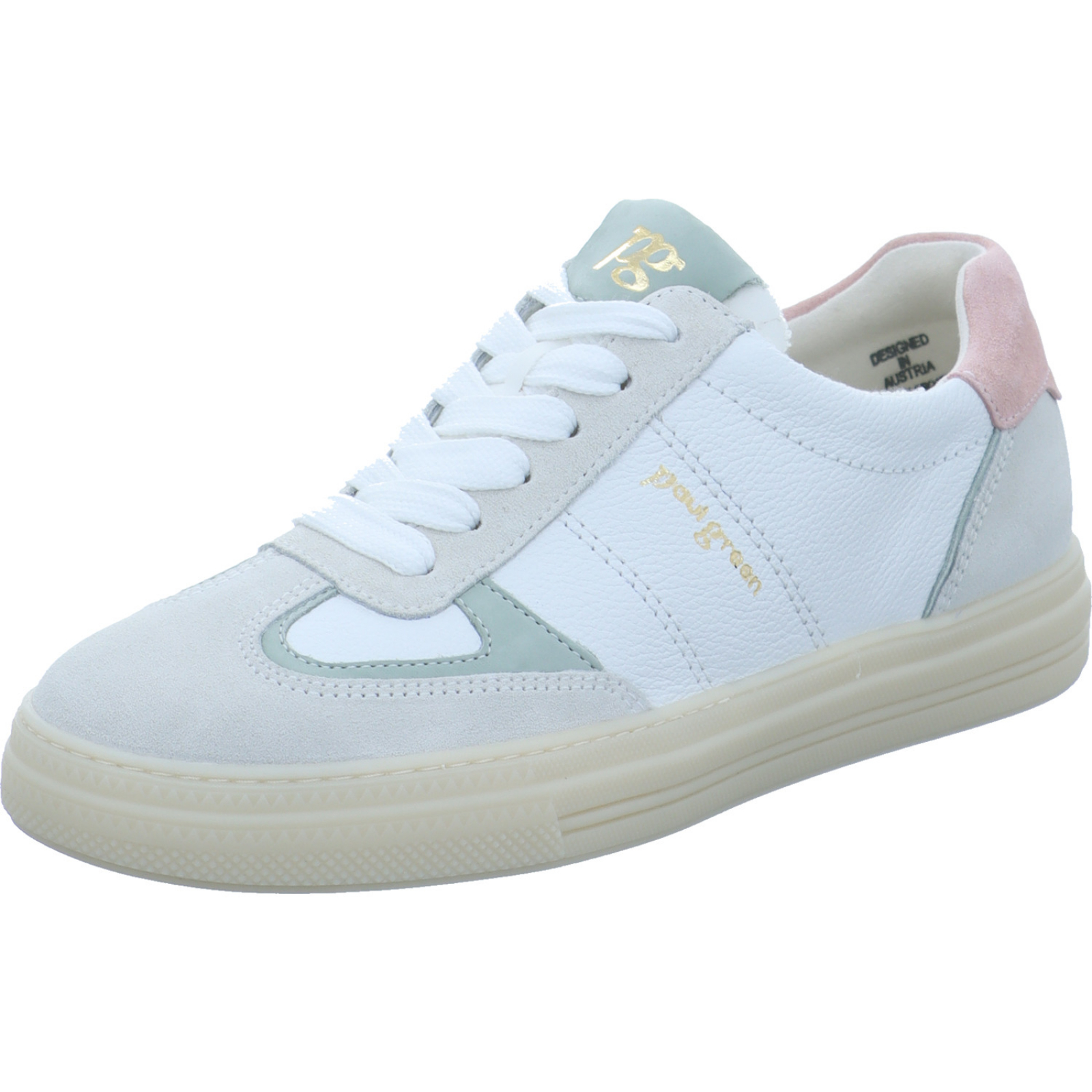 Herstellerinformation: Paul Green GmbH Haag 10, 5163 Mattsee Salzburg, AT info@paul-green.com _____Der weiß-rosa-grün-graue Damen-Schnürhalbschuh 5466-049 von Paul Green besteht aus Glatt- und Veloursleder.