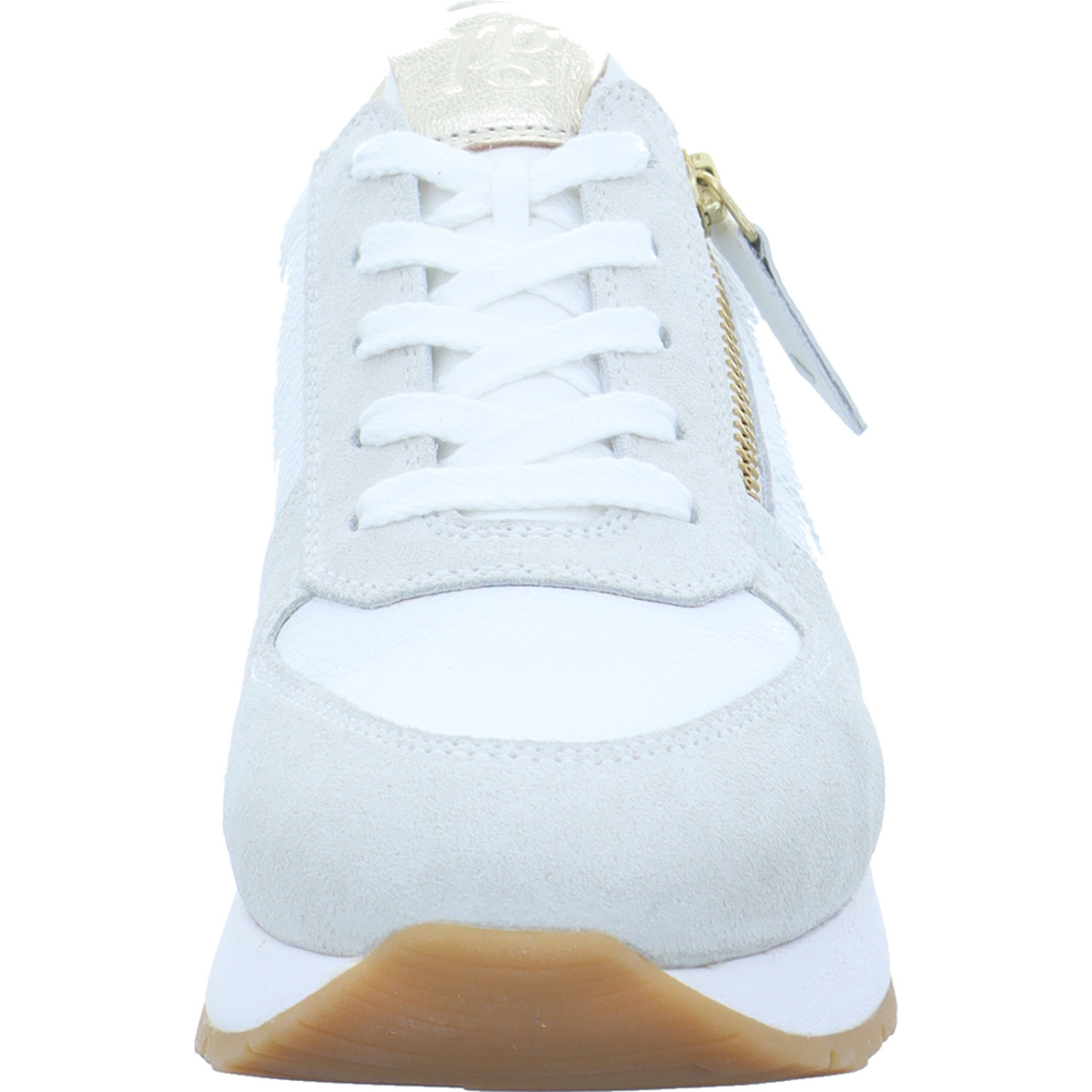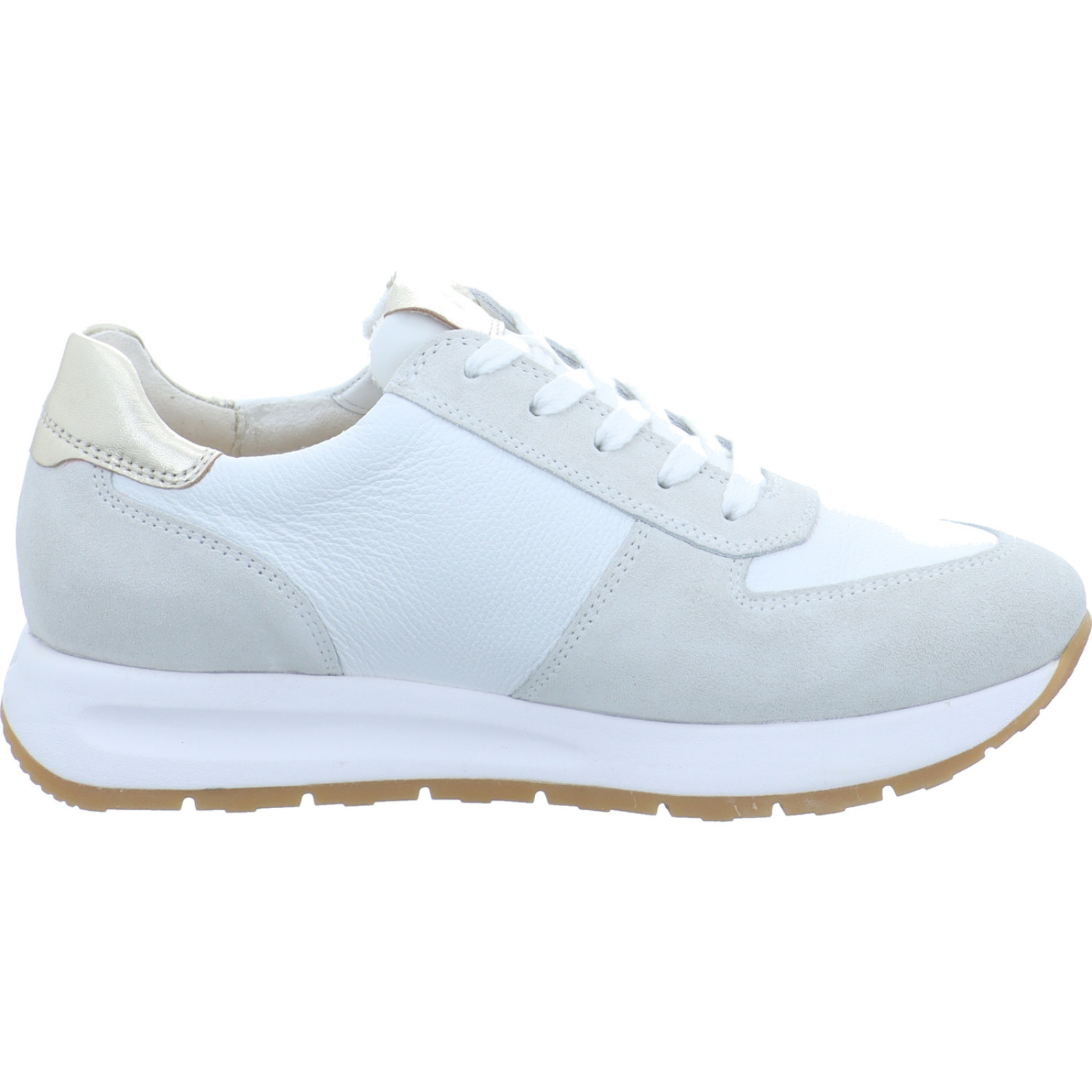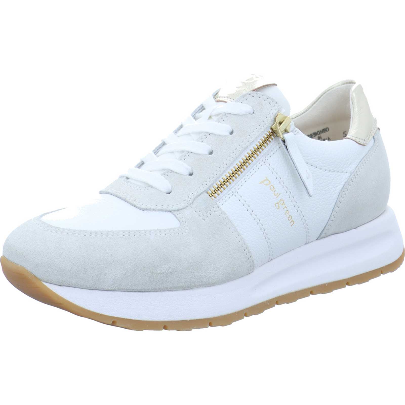 info@paul-green.com _____Der weiß-graue Damen-Schnürhalbschuh 5444-069 von Paul Green besteht aus Glatt- und Veloursleder.