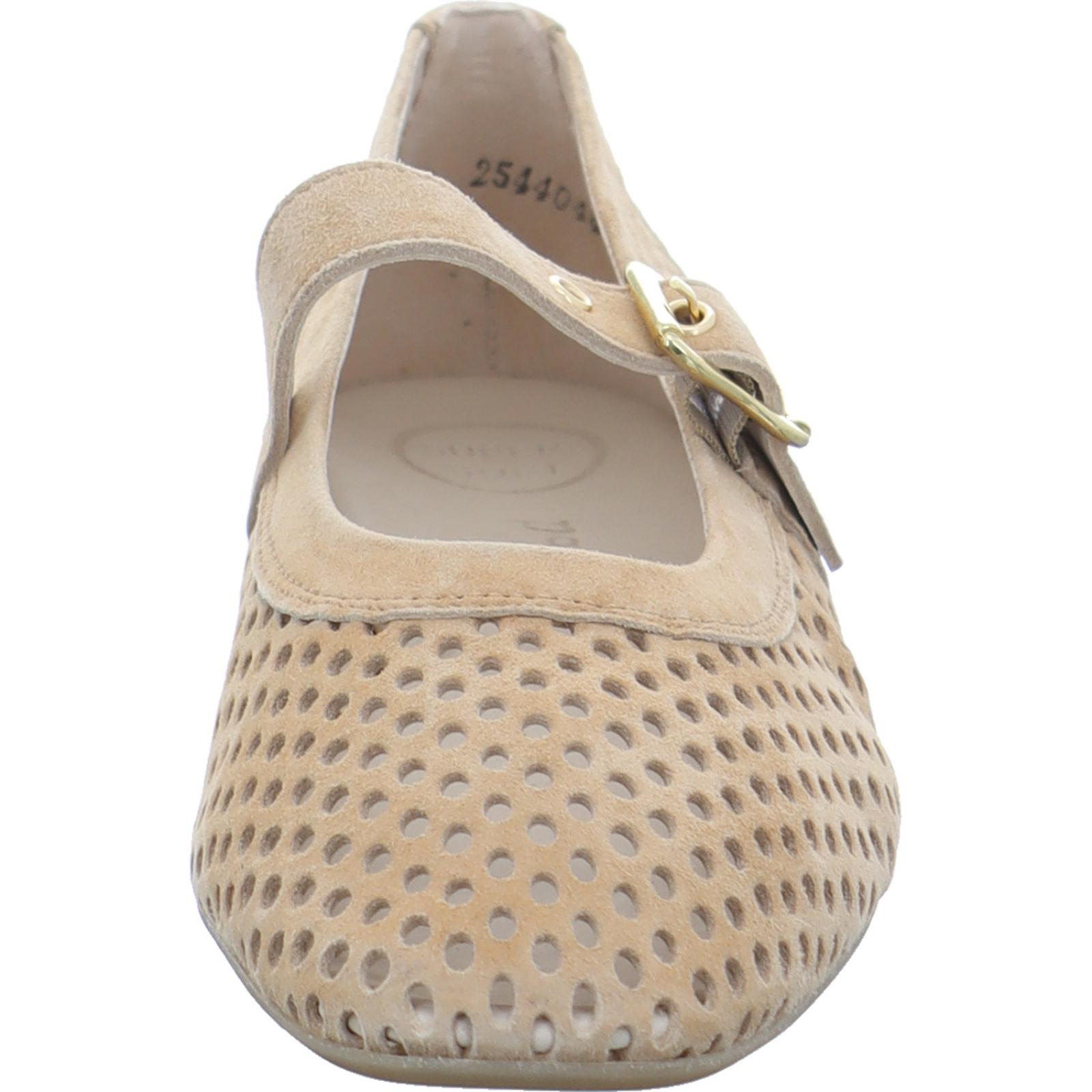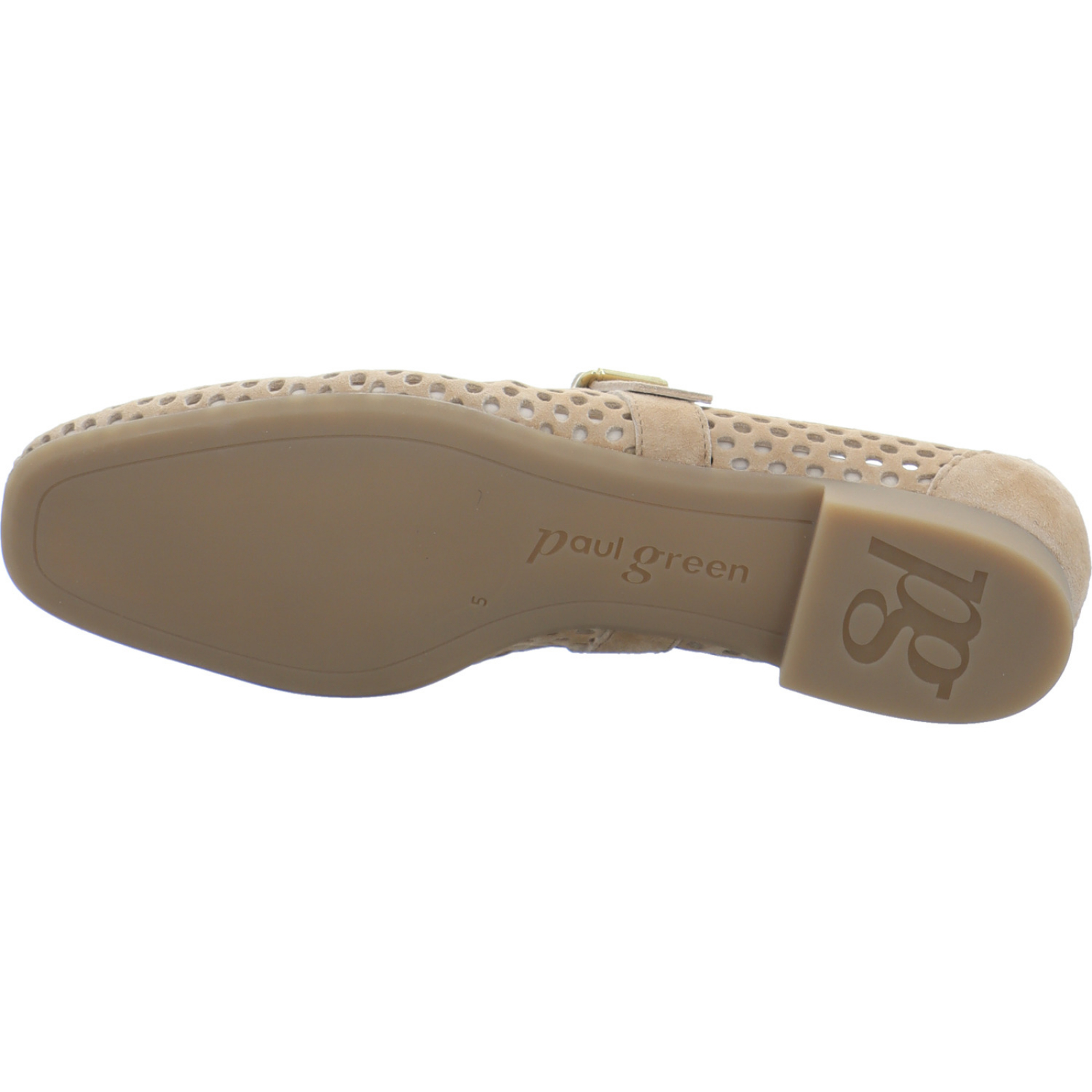 info@paul-green.com_____Der dunkelbeige Damen-Spangenschuh 1213-009 von Paul Green besteht aus gelochten Veloursleder. Optimalen Komfort bietet das weiche Leder Fußbett.