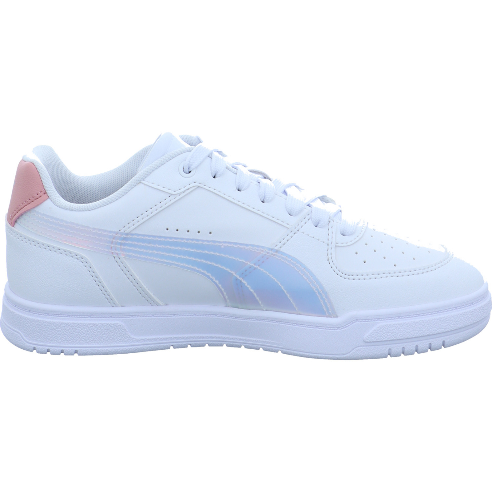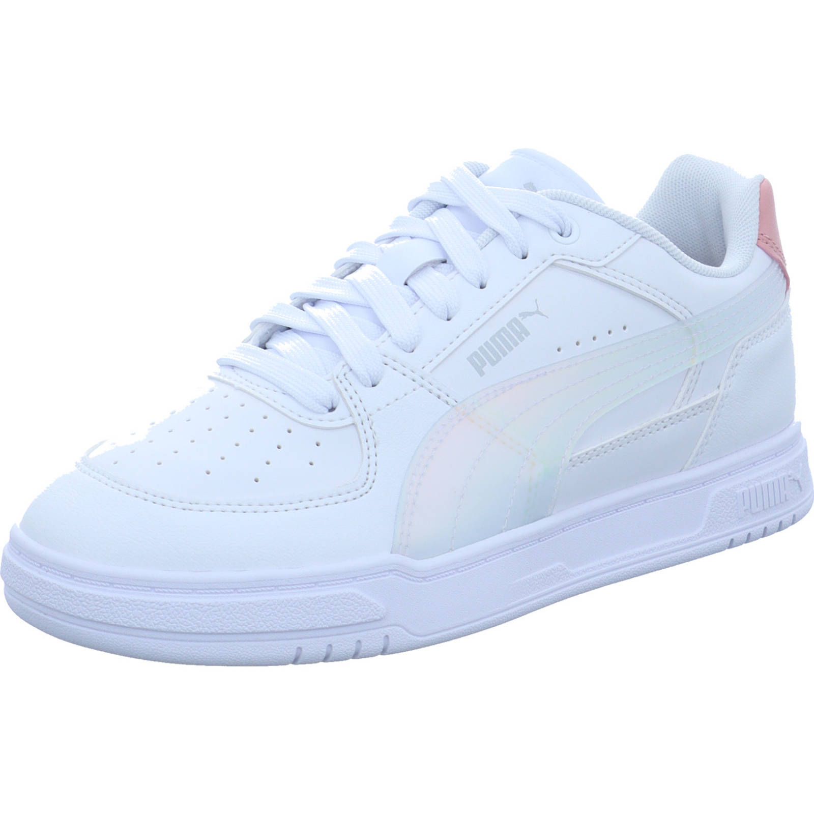 Herstellerinformation: PUMA Europe GmbH Puma Way 1 91074 Herzogenaurach, DE service@puma.com_____Der weiß-holo-farbene Mädchen-Sneaker Caven III Holo 2.0 JR 406893-001 von Puma besteht aus High-Tech.