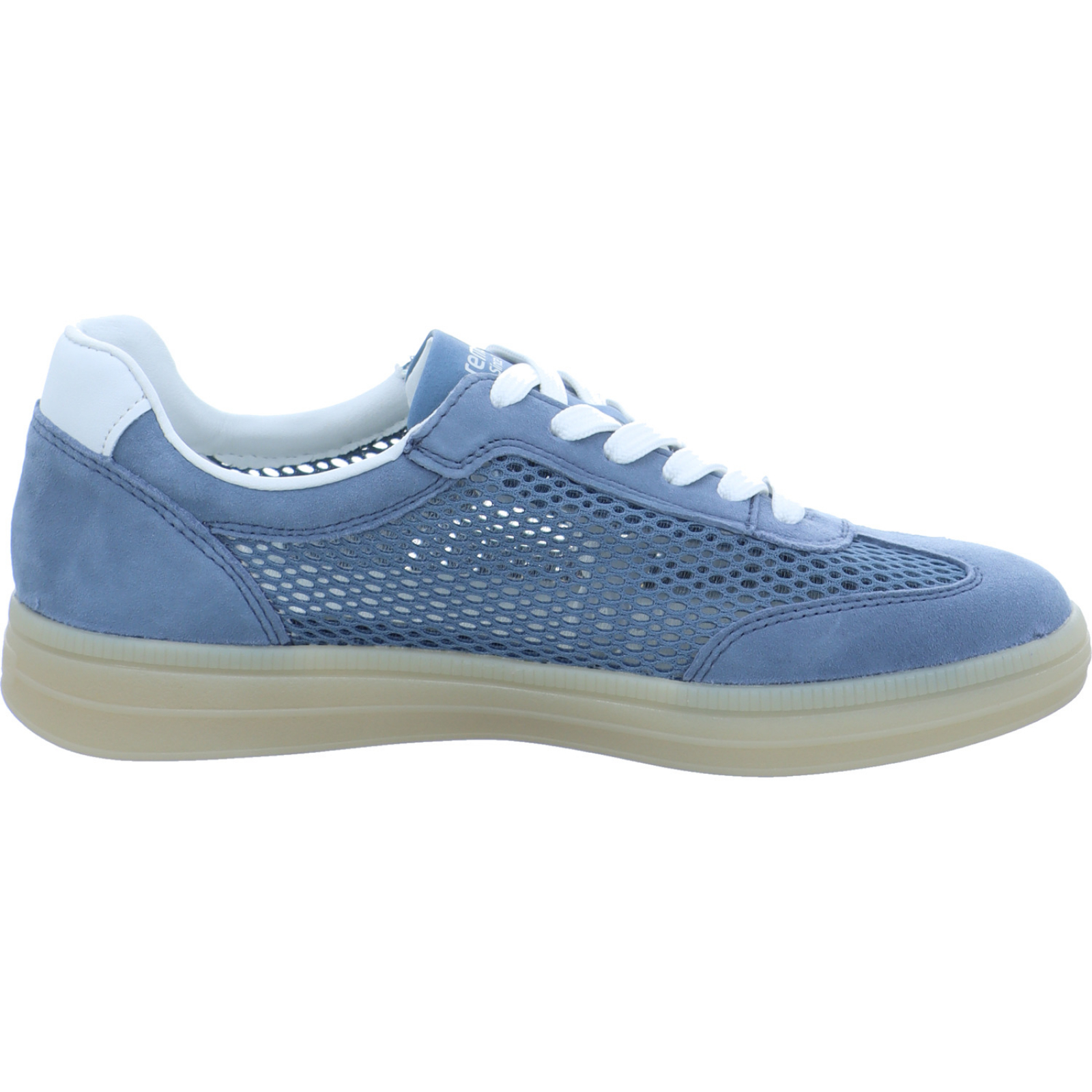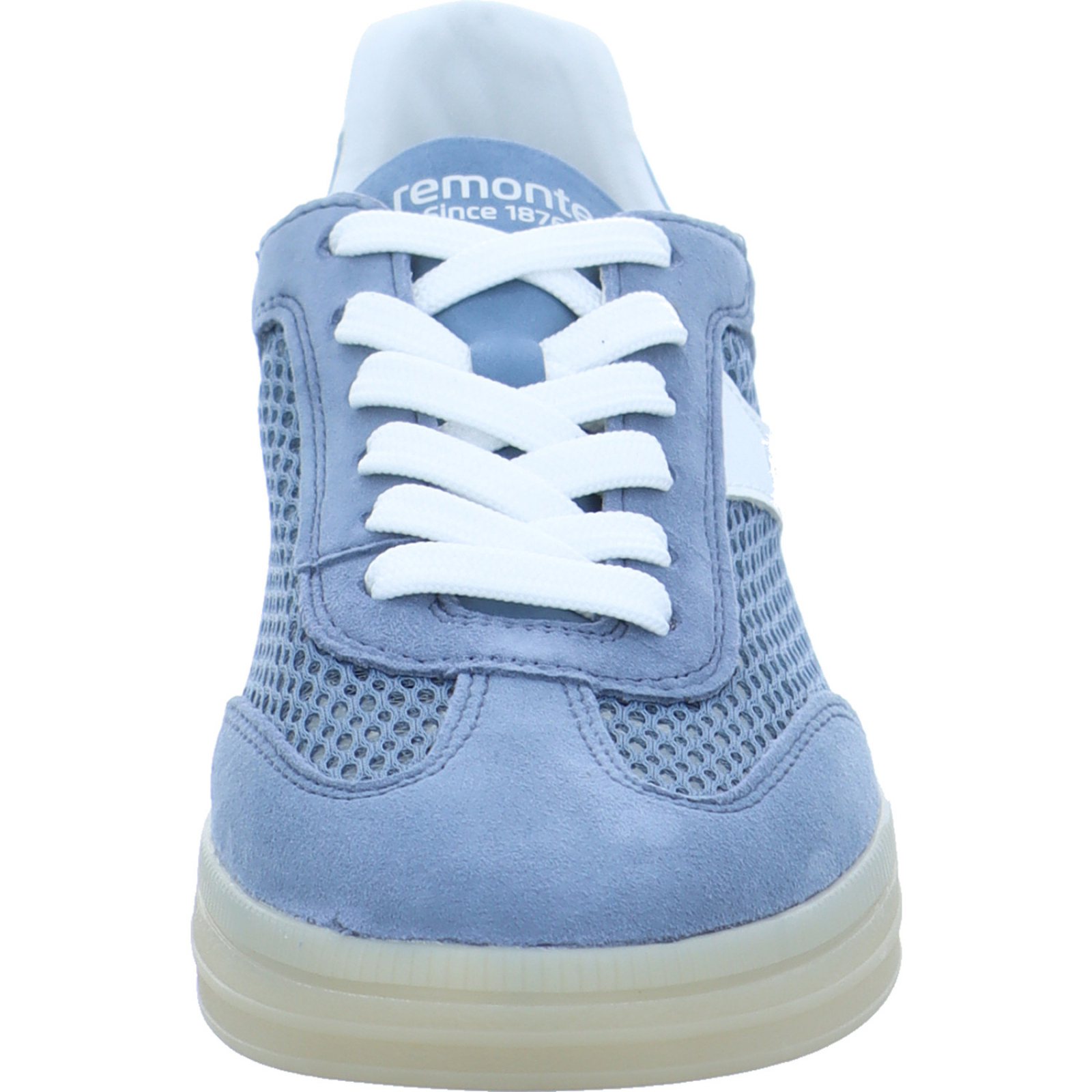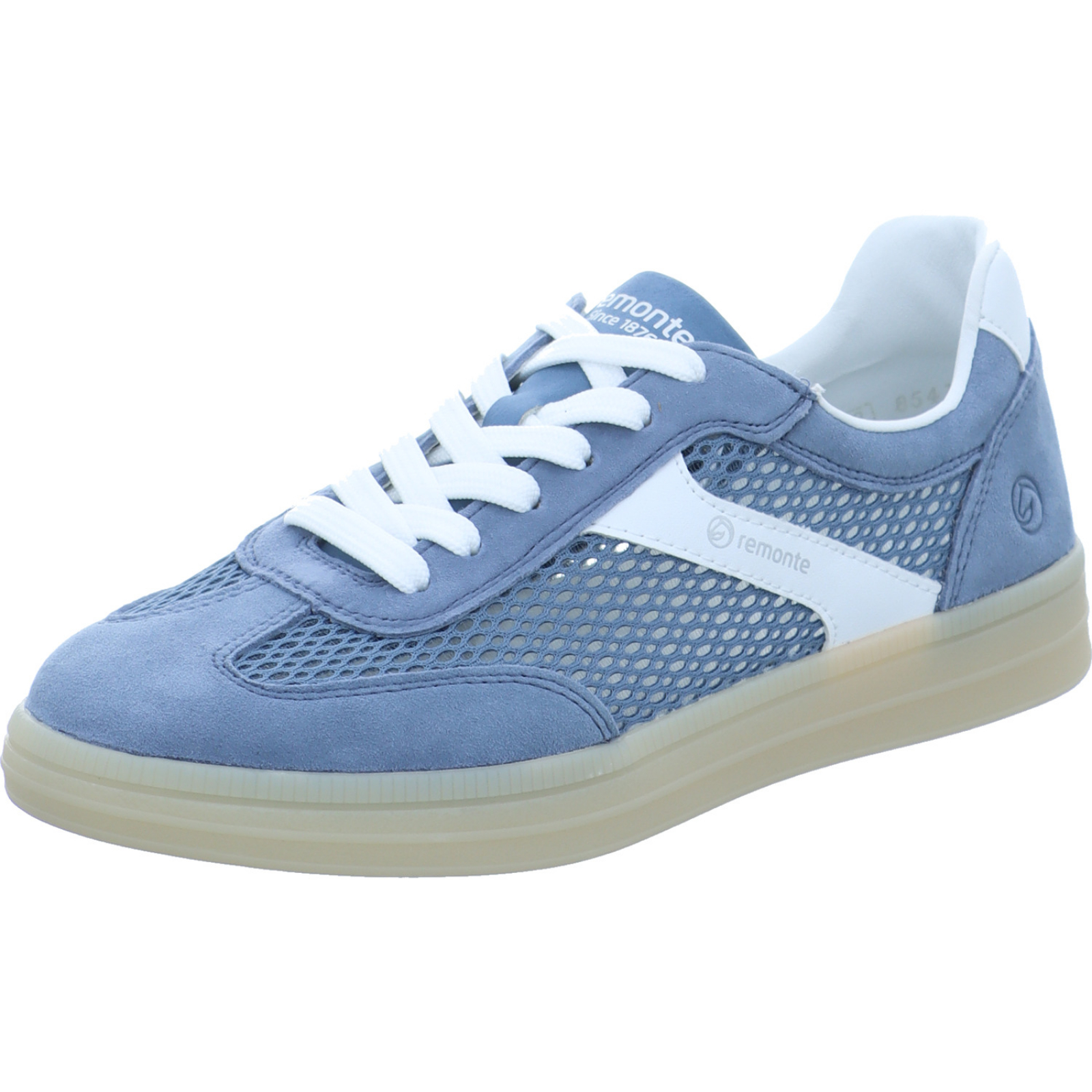 service@remonte.de_____Der jeansblau-weiße Damen-Schnürhalbschuh D2C08-14 von Remonte besteht aus Veloursleder und hat einen Netzeinsatz. Die