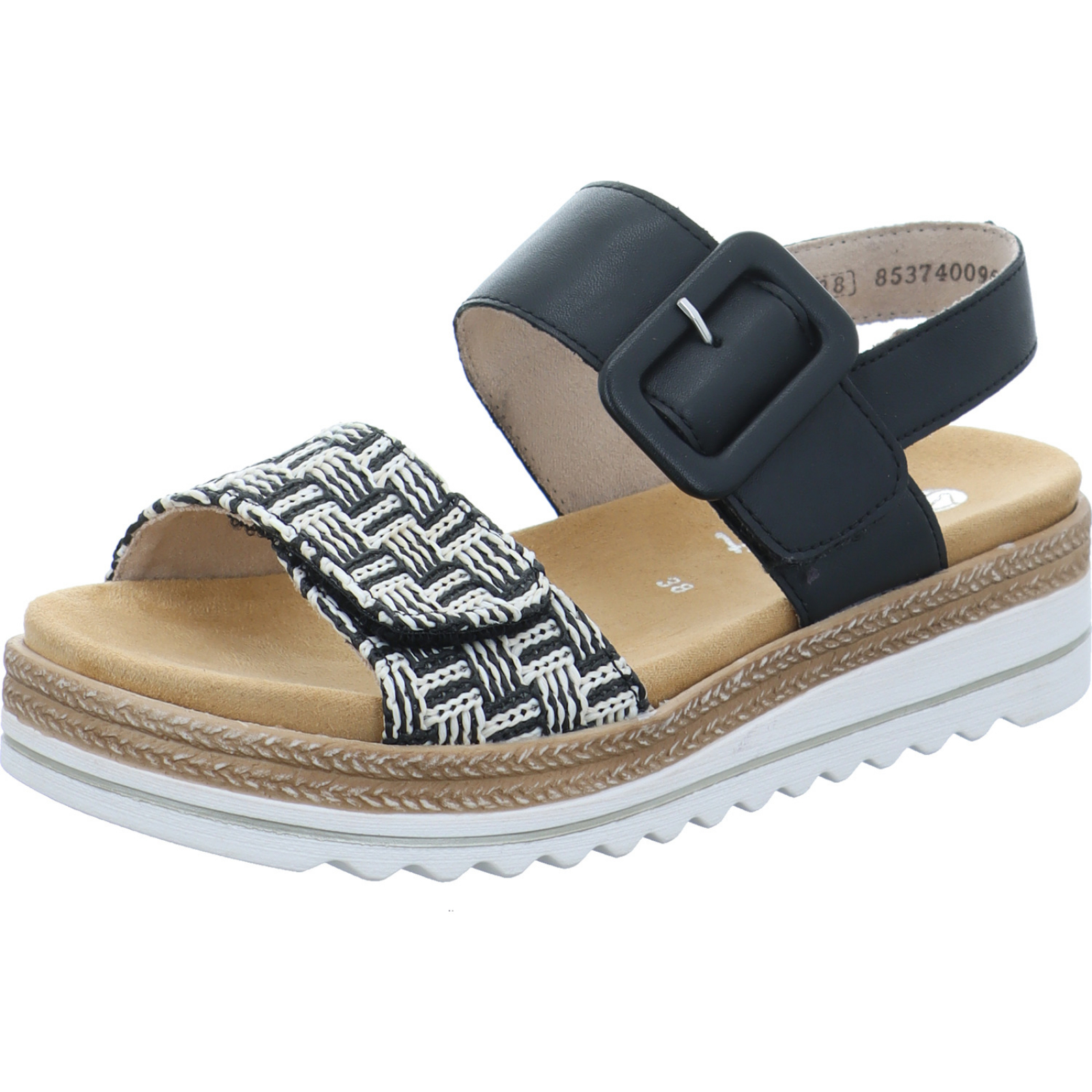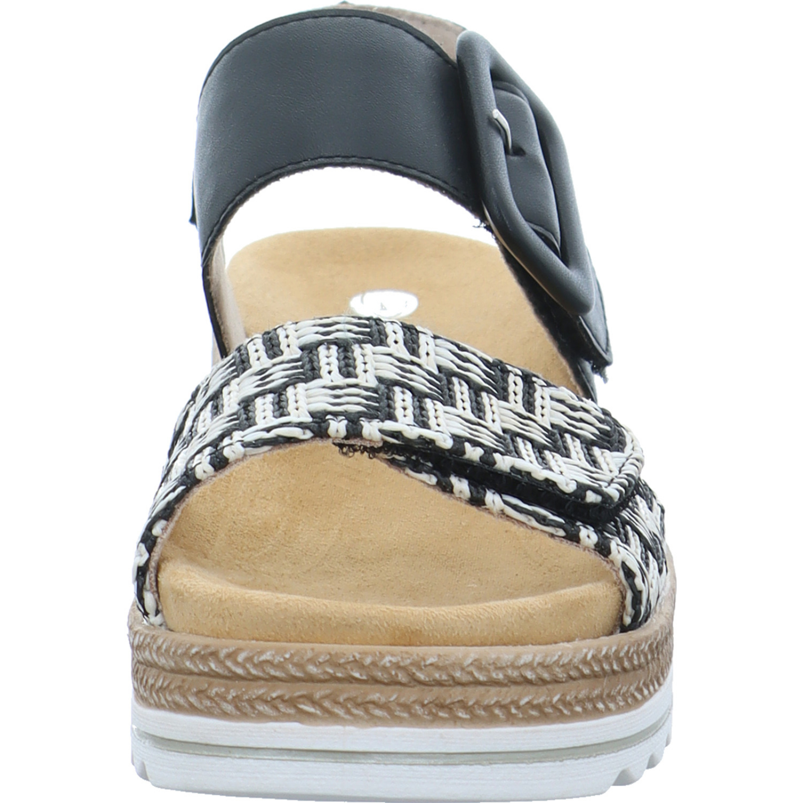Herstellerinformation: Remonte Schuh Union GmbH Gänsäcker 31, 78532 Tuttlingen, DE service@remonte.de_____Die schwarz-beige Damen-Sandalette D0Q62-03 von Remonte besteht aus Glattleder und Textil.