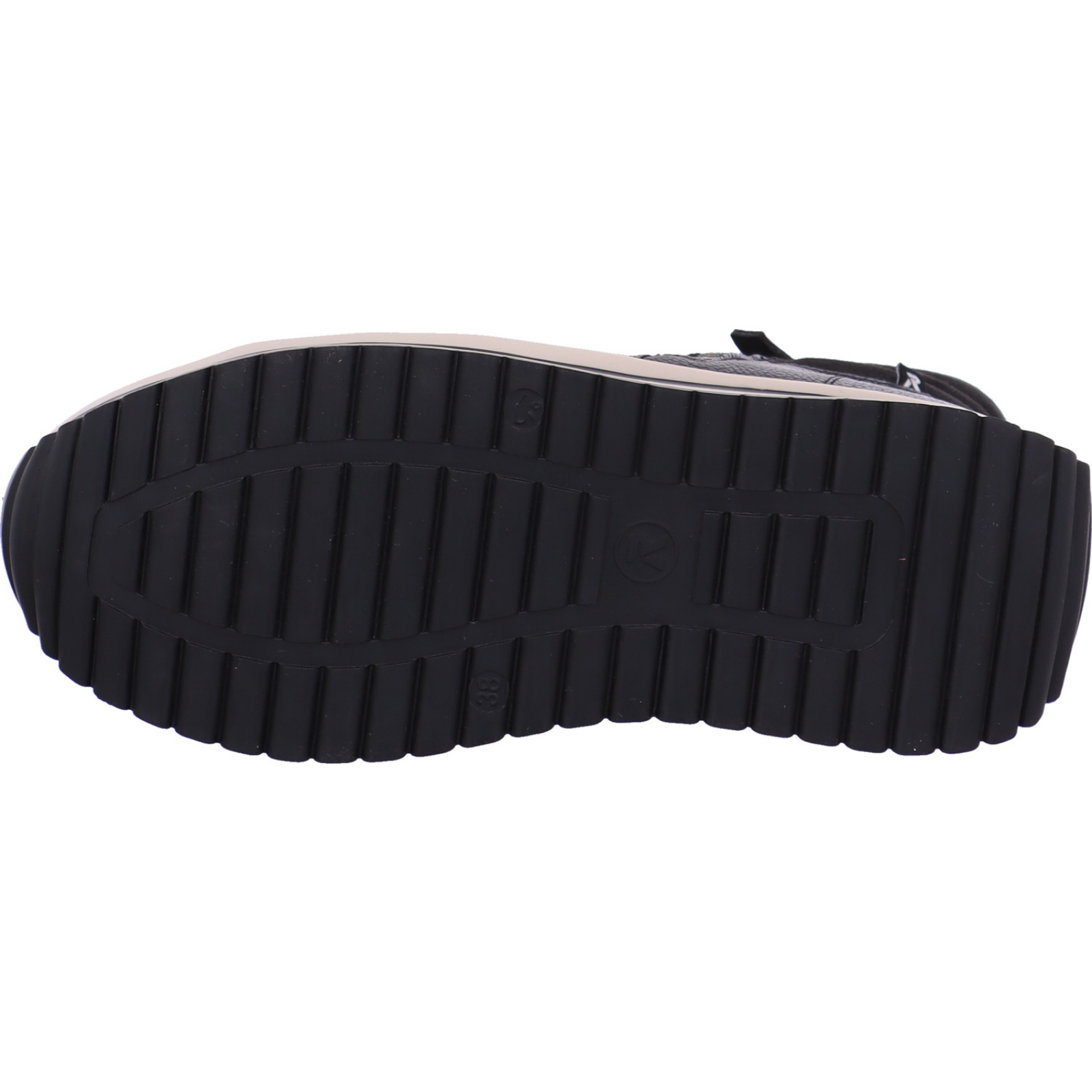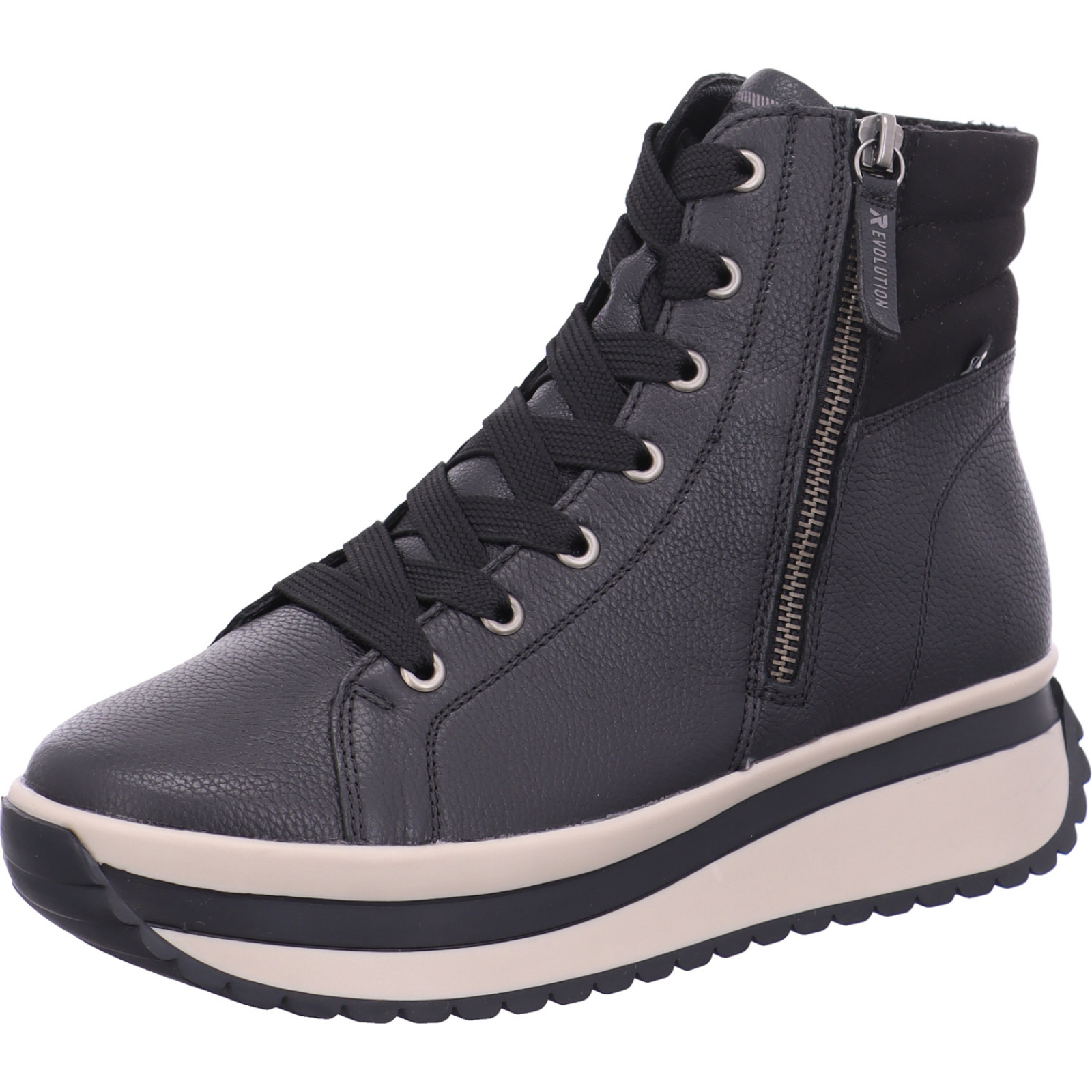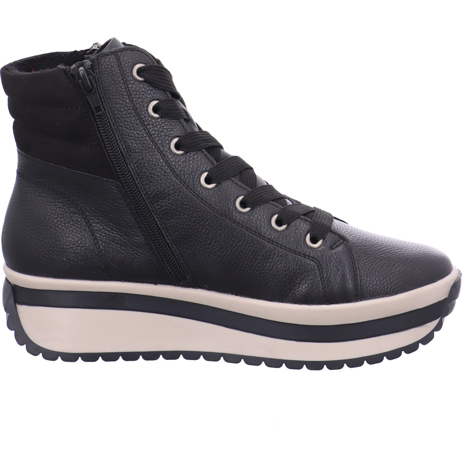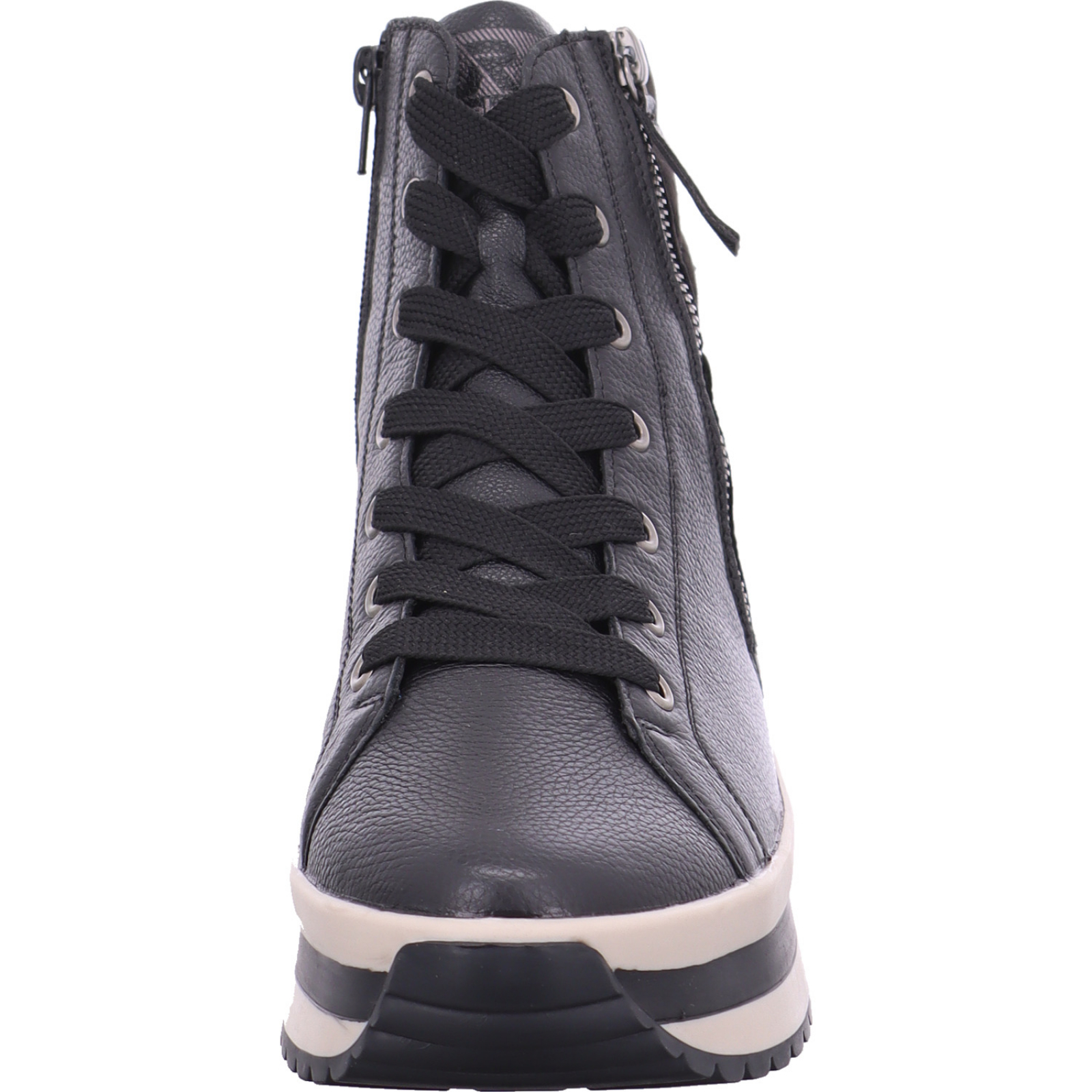 Der schwarze Damen-Schnürbootie W0962-00 von Rieker besteht aus Glattleder.