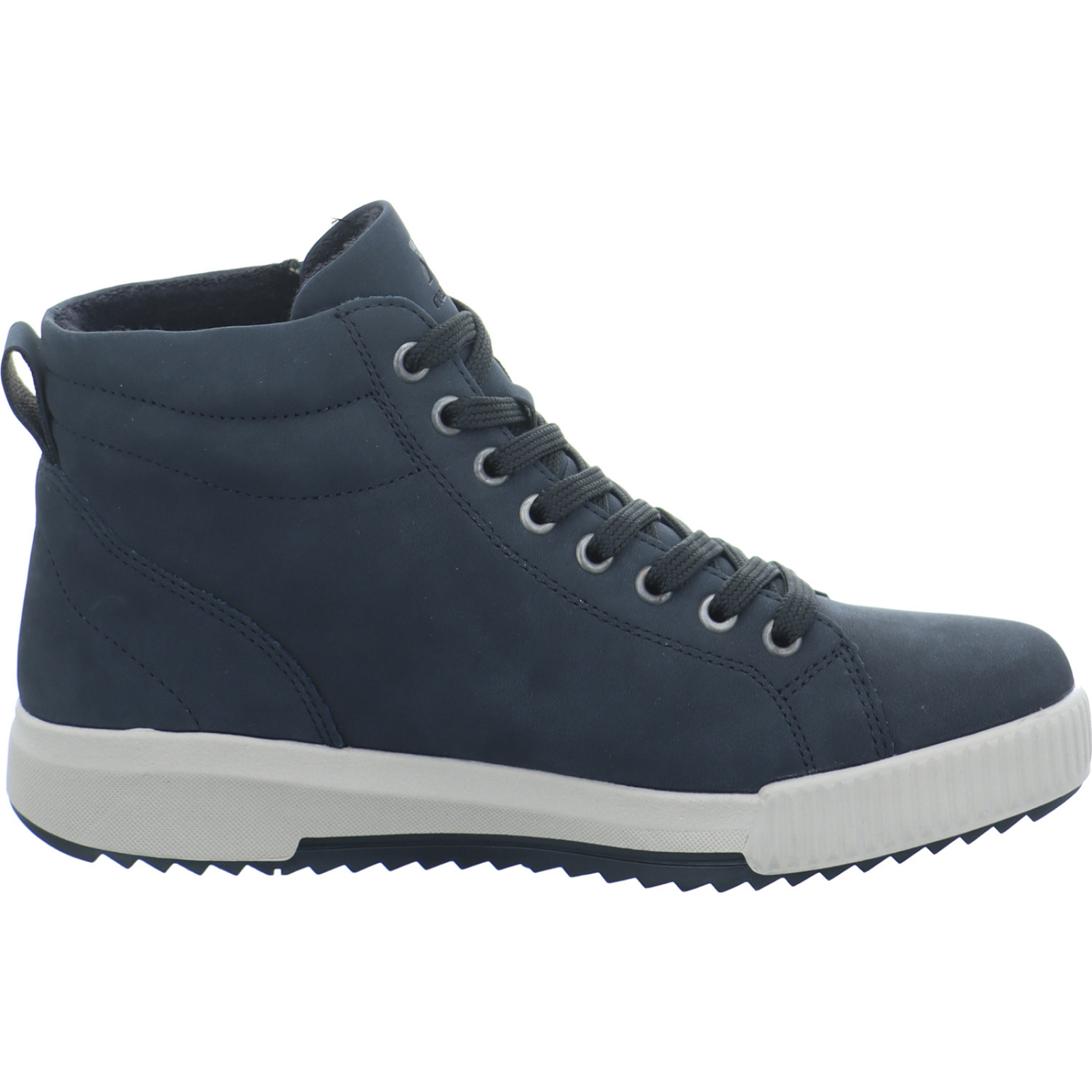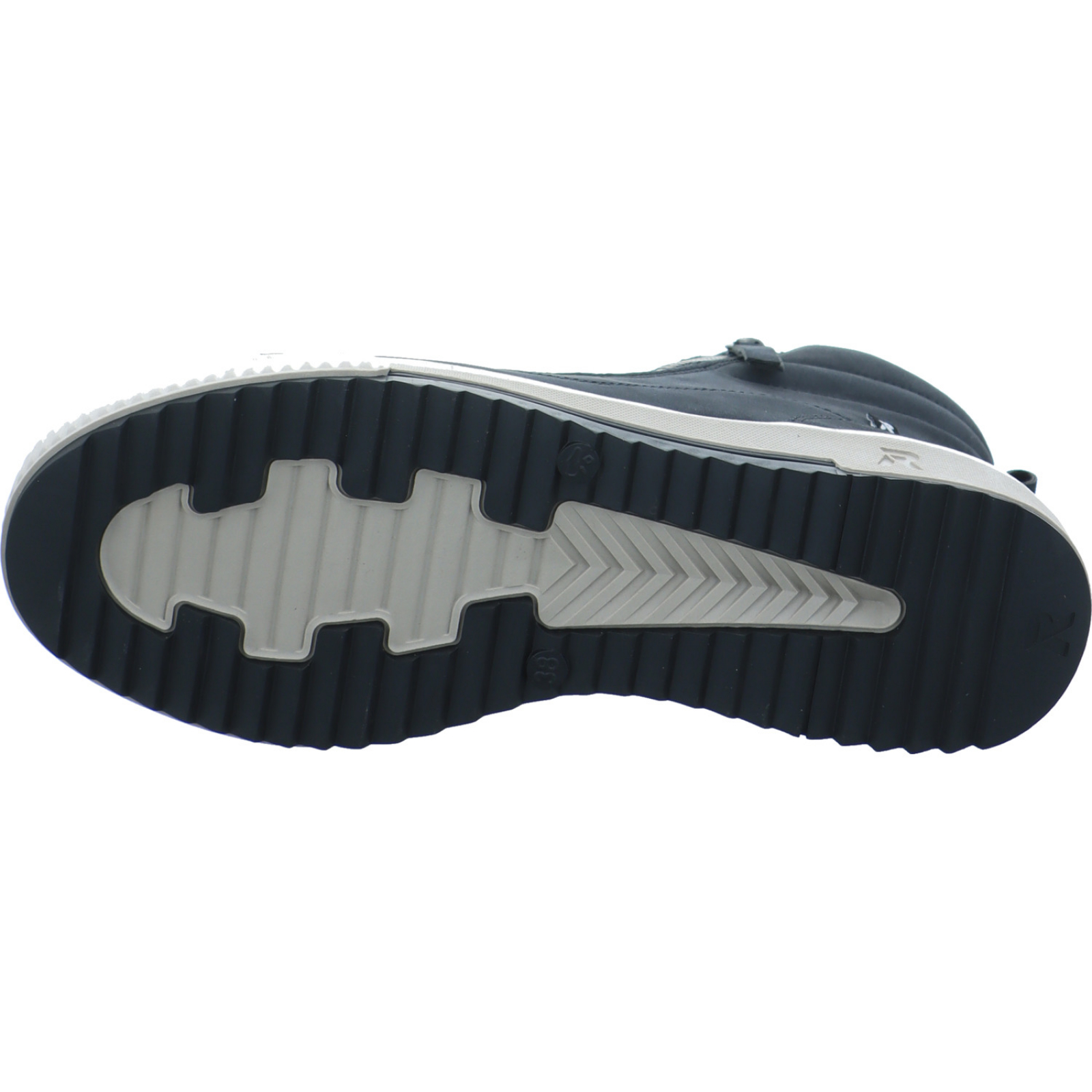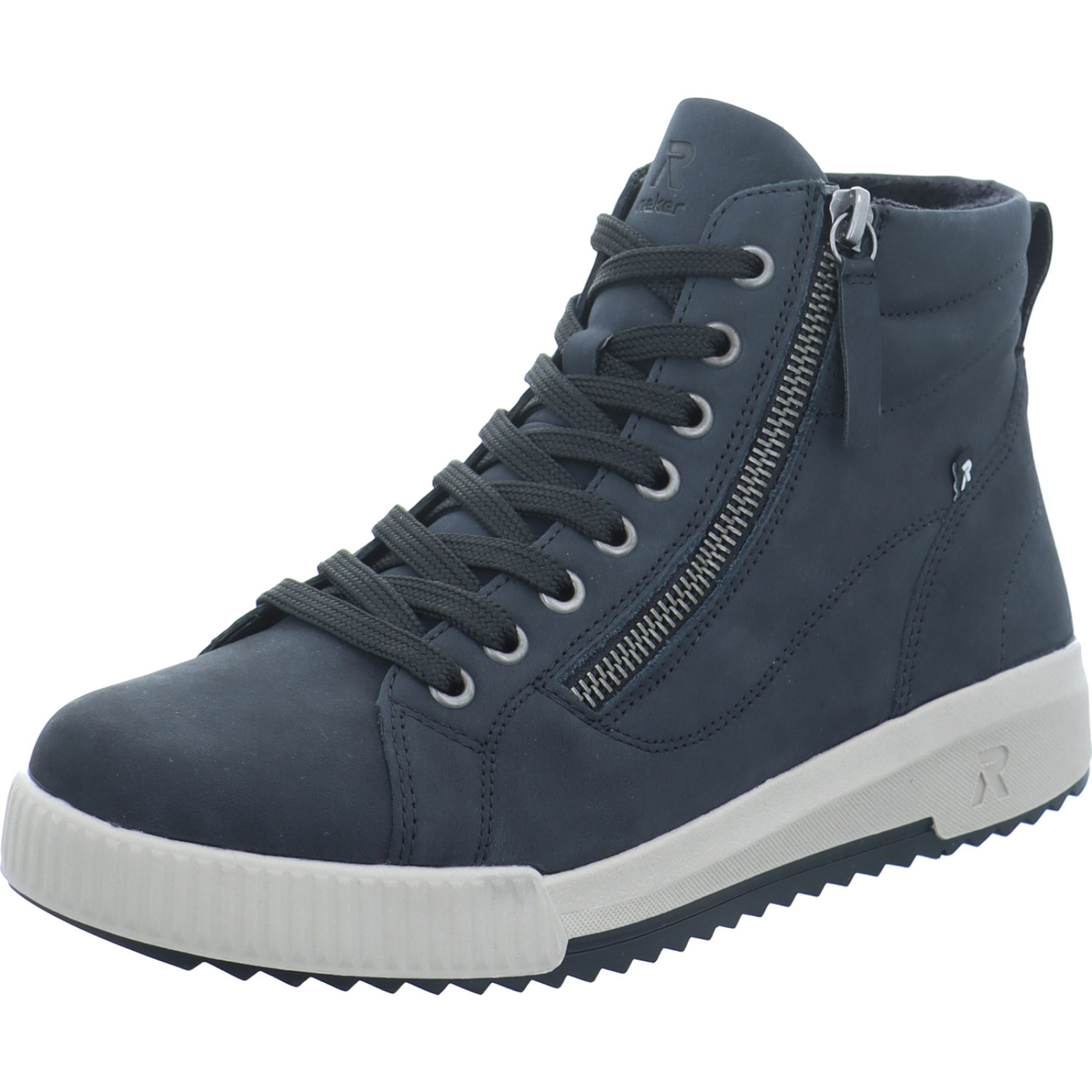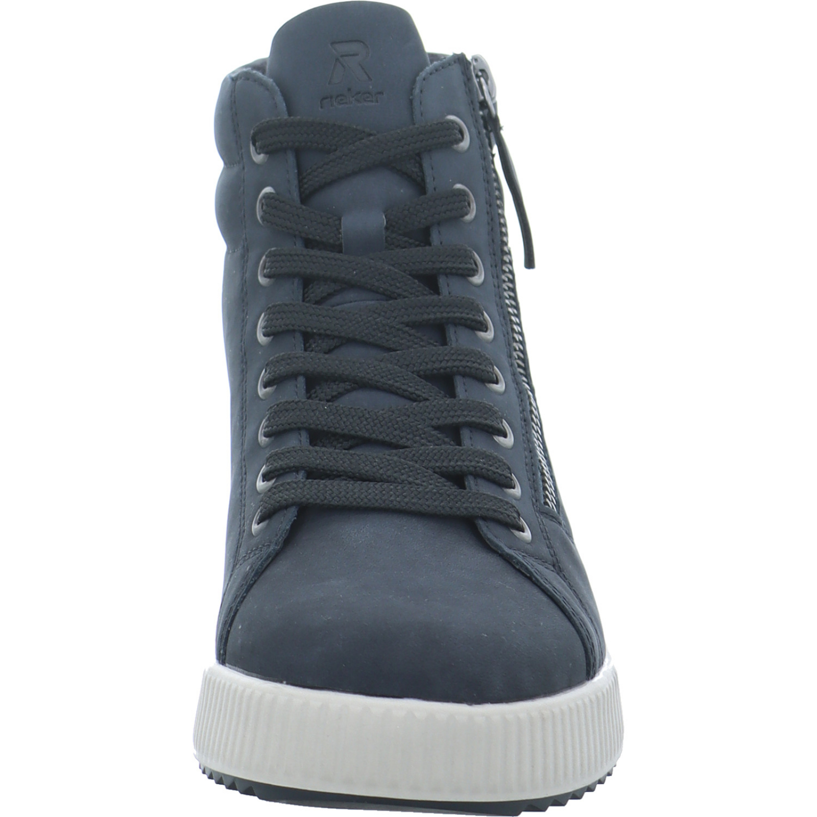 service@rieker.com_____Der dunkelblaue Damen-Schnürbootie W0164-14 von Rieker besteht aus Nubukleder und hat ein komfortables Wechselfußbett.
