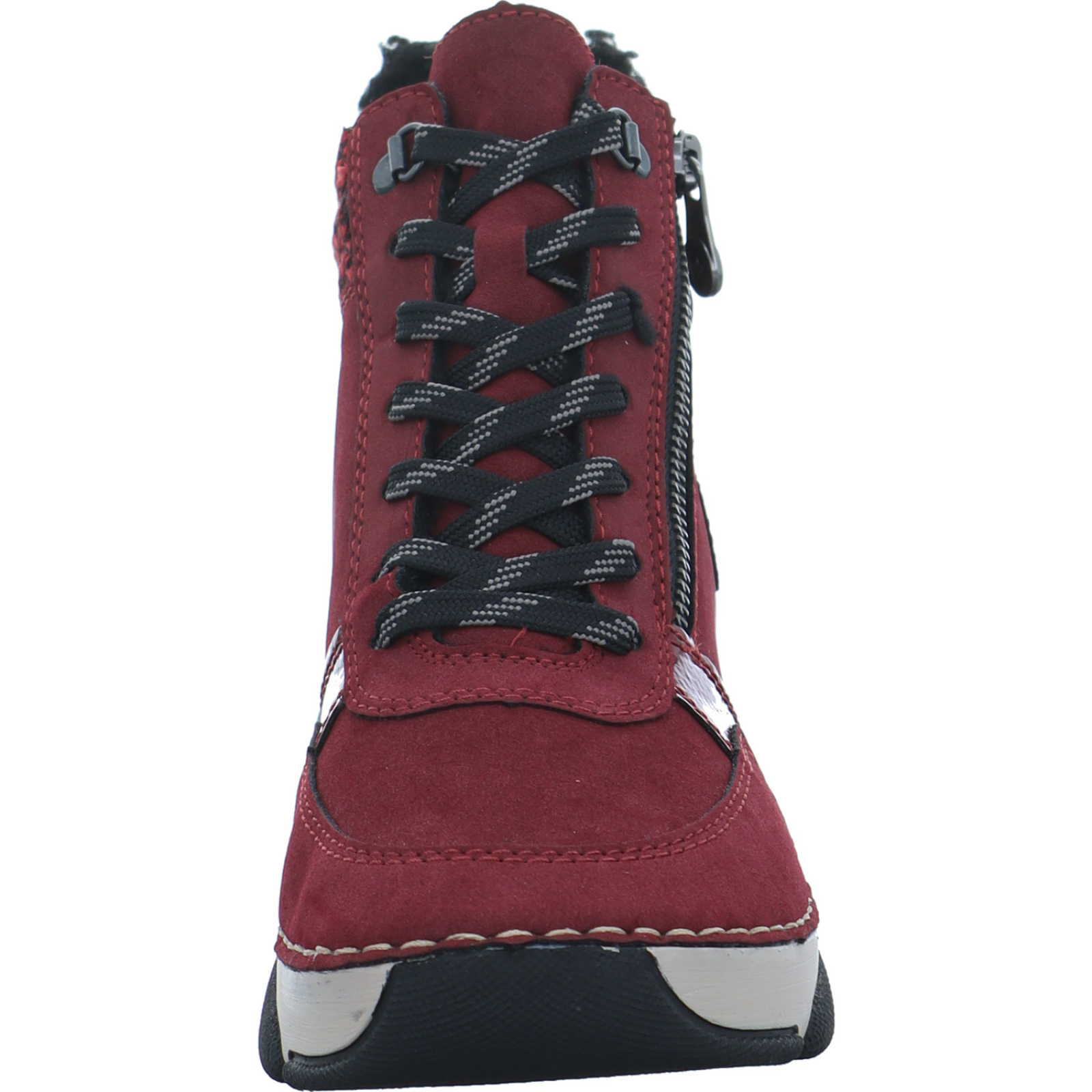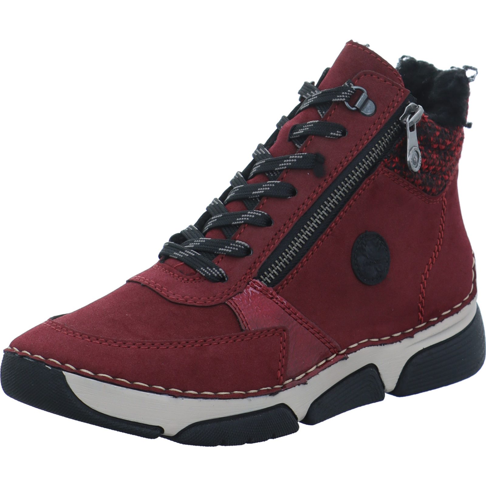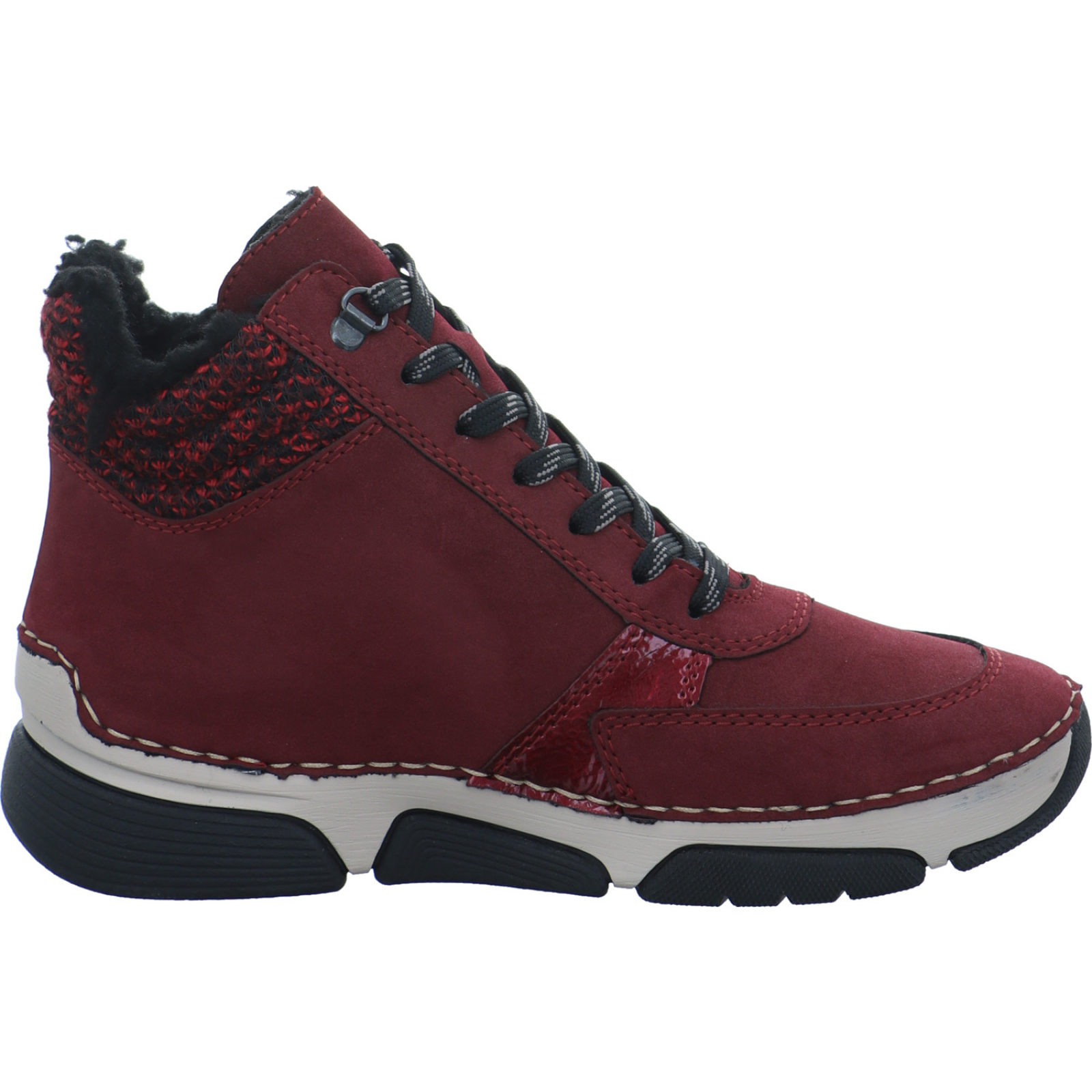 Herstellerinformation: Rieker Schuh GmbH Gänsäcker 31, 78532 Tuttlingen, DE service@rieker.com_____Der bodo-farbene Damen-Schnürbootie 45960-35 von Rieker besteht aus High-Tech, Lack und Textil.