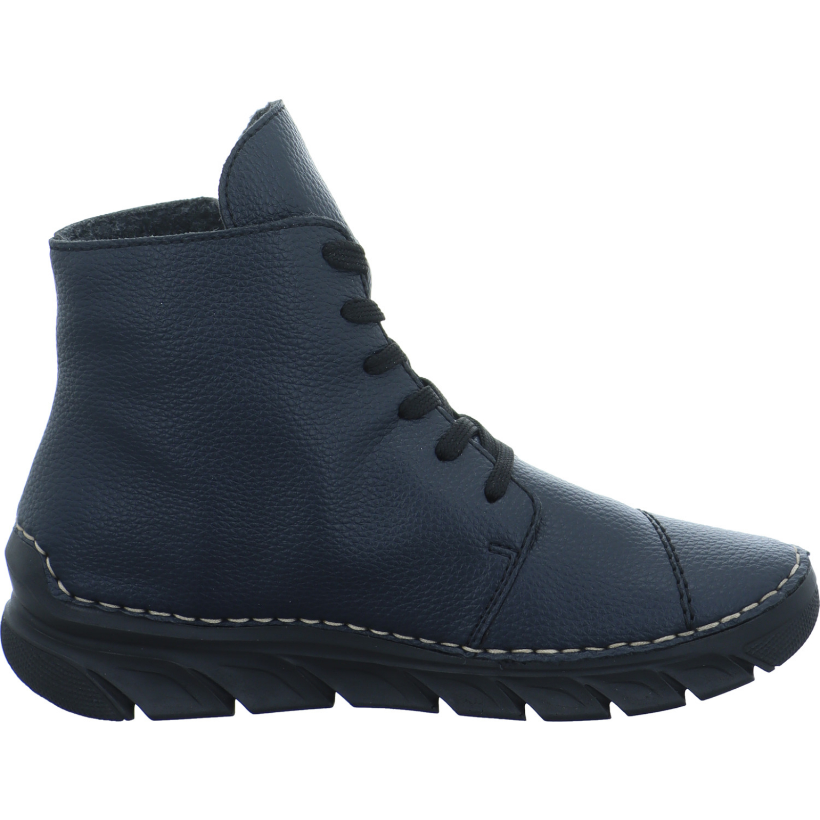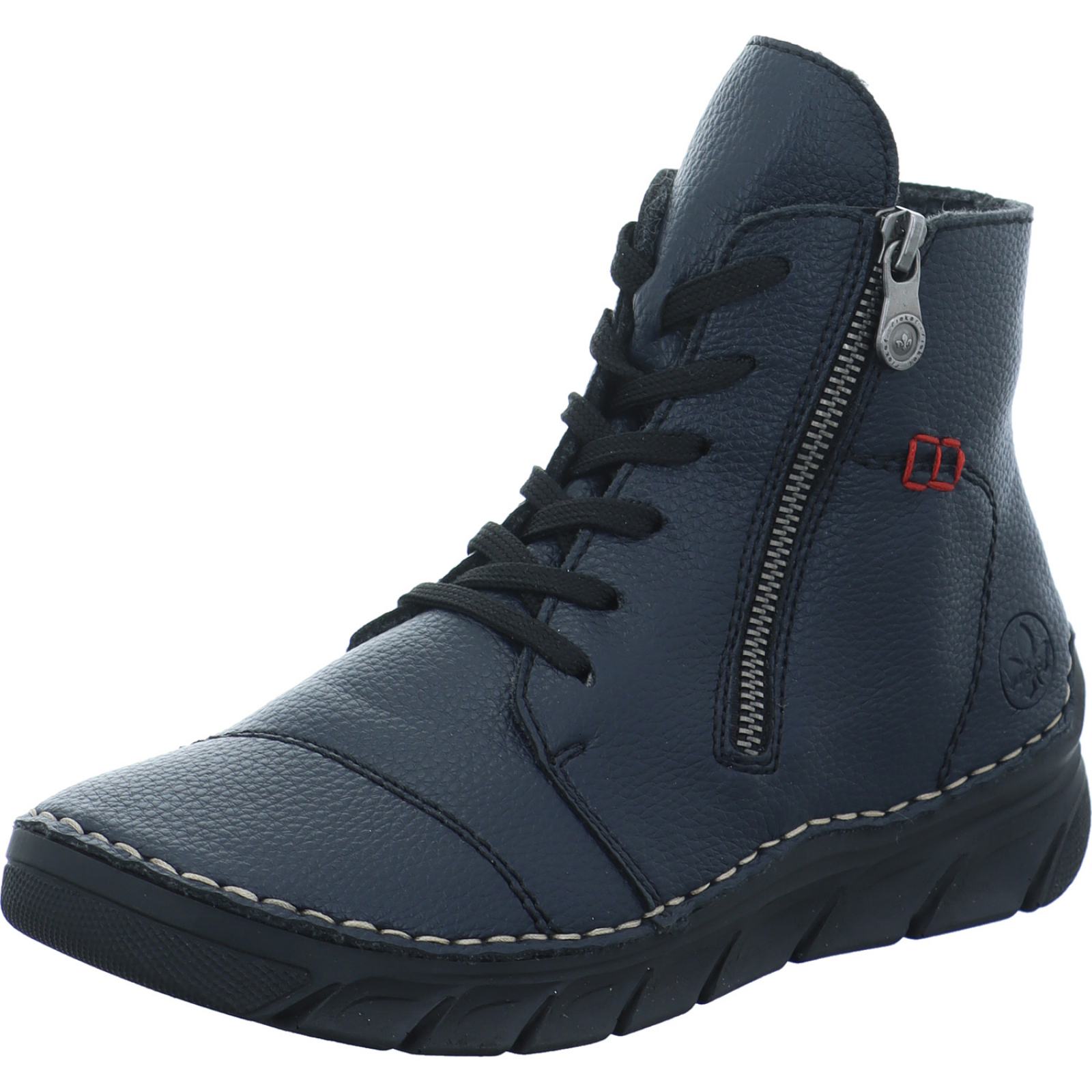 service@rieker.com_____Der dunkelblaue Damen-Schnürbootie 55034-14 von Rieker besteht aus High-Tech und hat eine weich gepolsterte Innensohle.