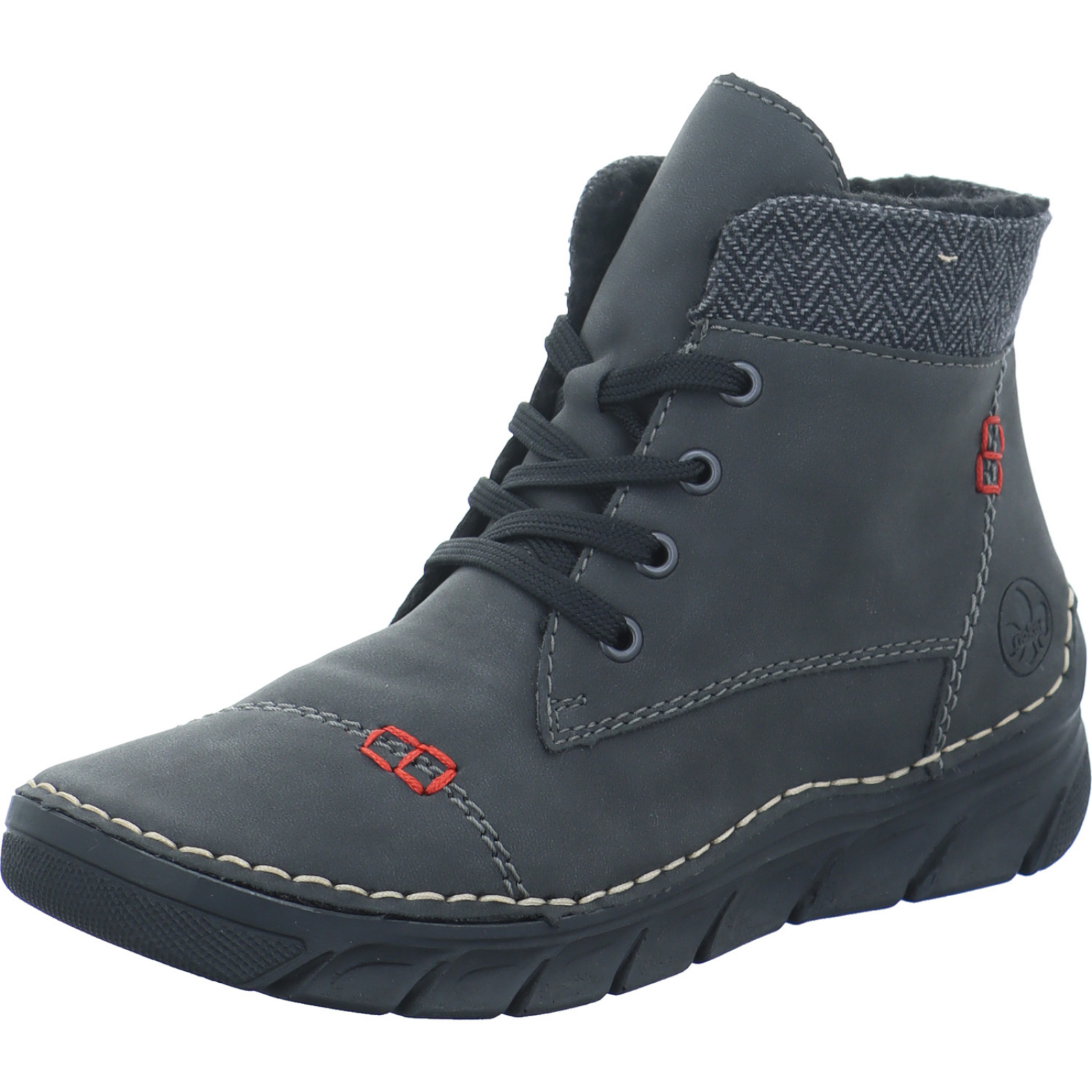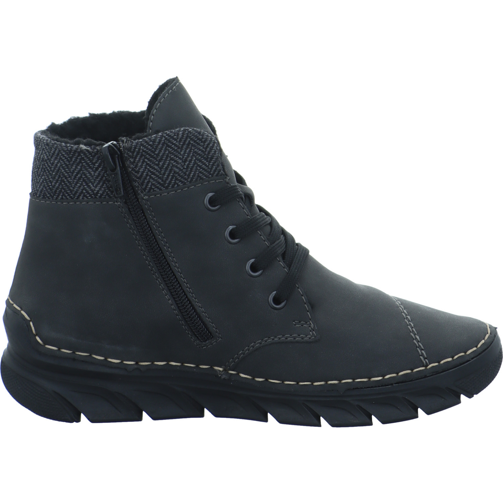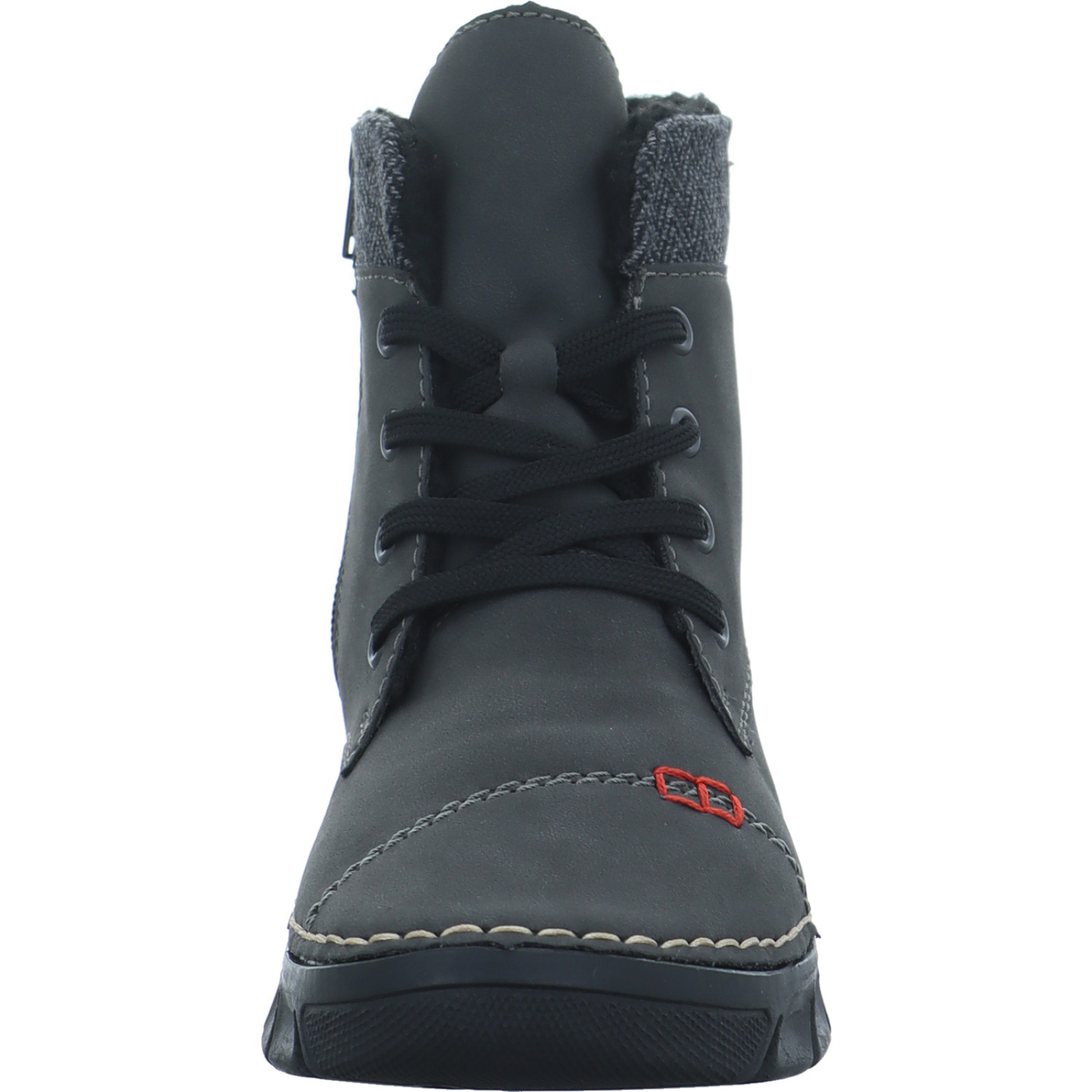 service@rieker.com_____Der anthrazit-farbene Damen-Schnürbootie 55031-45 von Rieker besteht aus High-Tech und Textil.