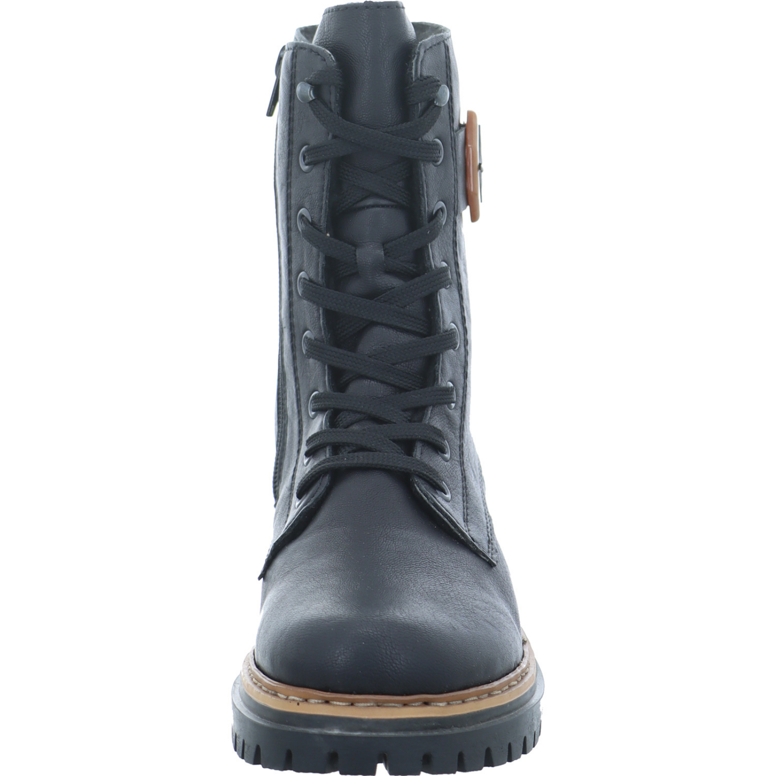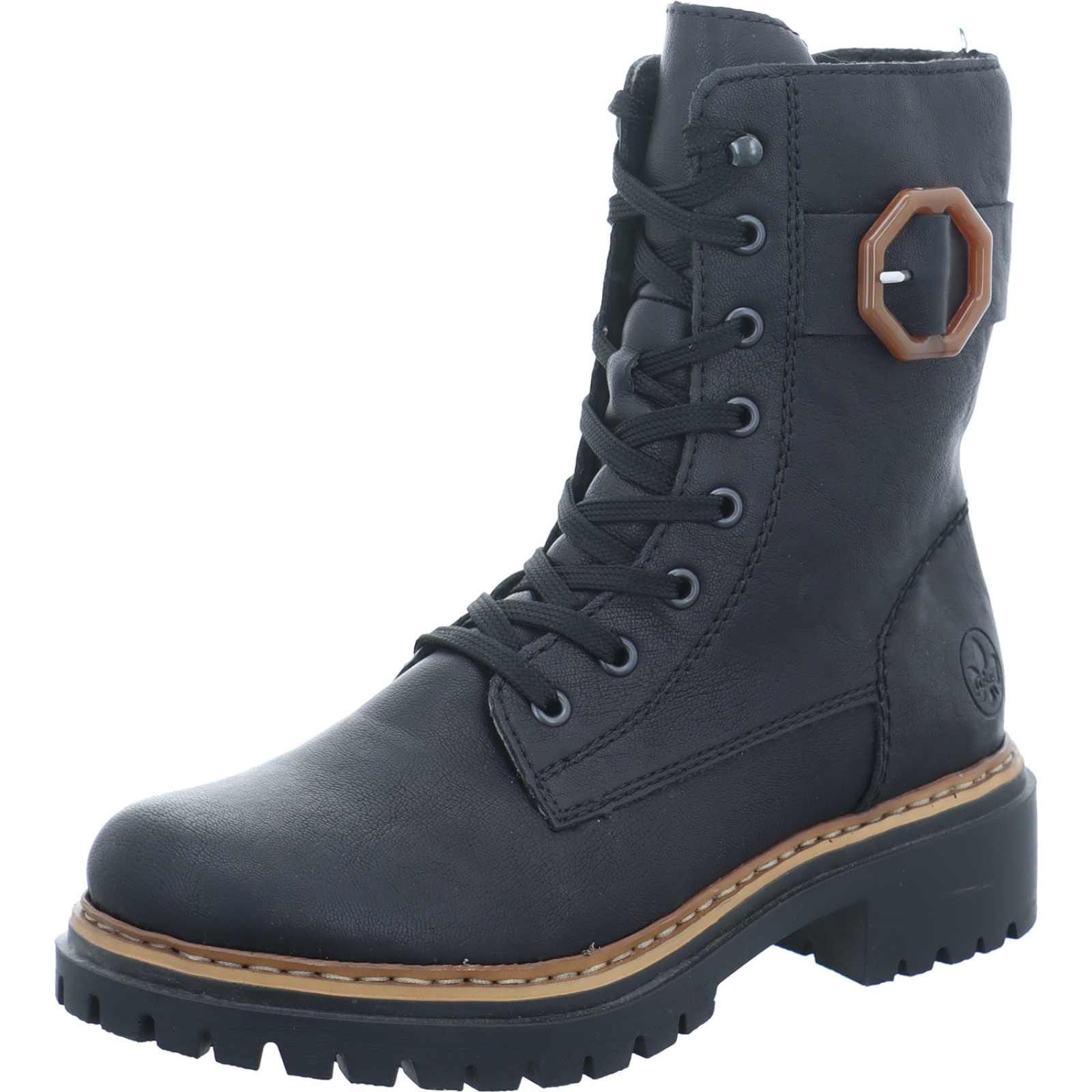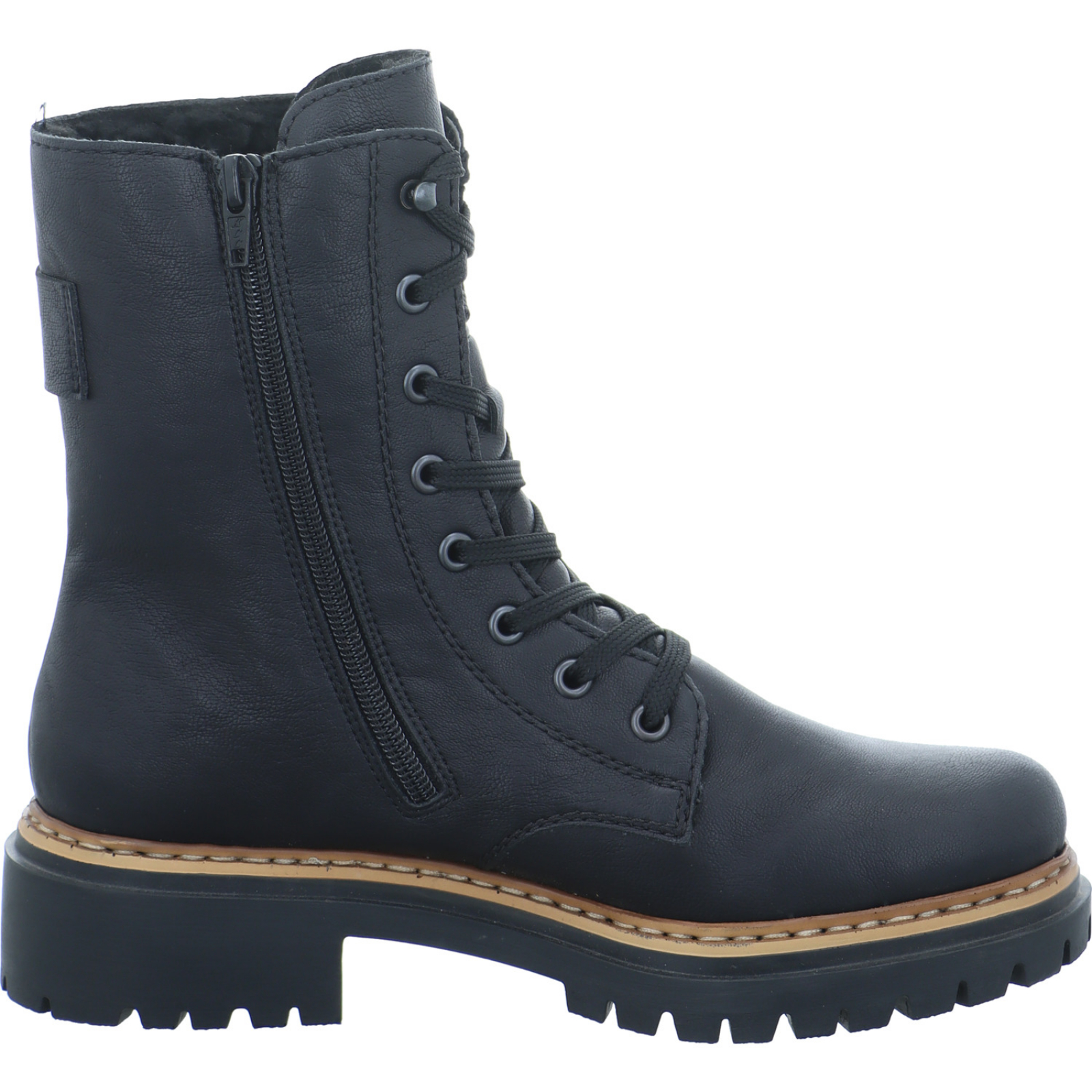 Herstellerinformation: Rieker Schuh GmbH Gänsäcker 31, 78532 Tuttlingen, DE service@rieker.com_____Der schwarze Damen-Schnürbootie 72613-00 von Rieker besteht aus High-Tech und hat eine weich gepolsterte Filz-Innensohle.