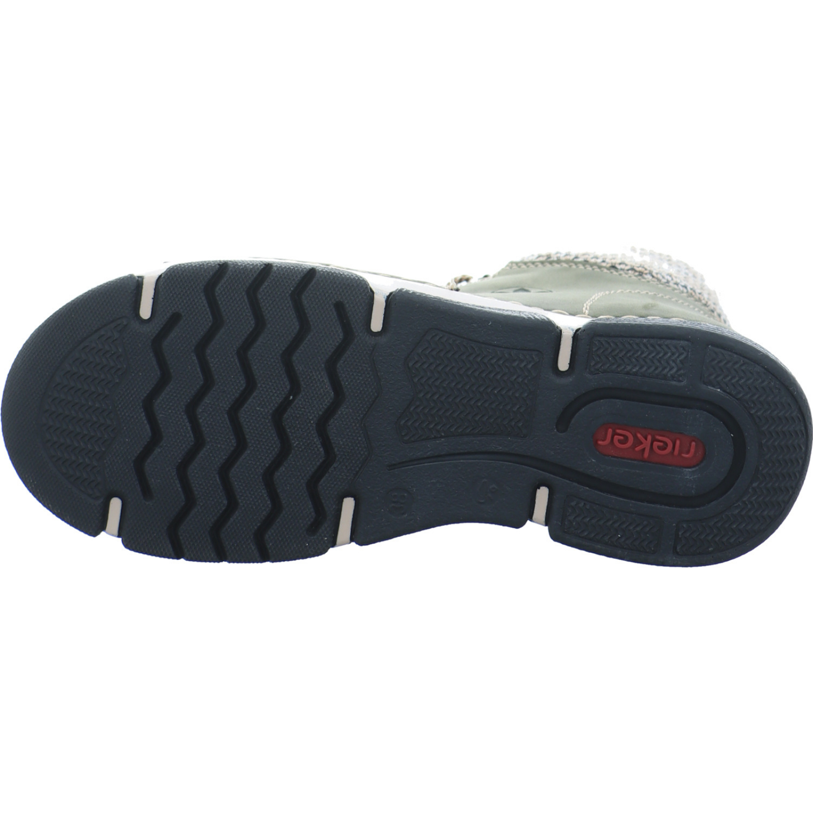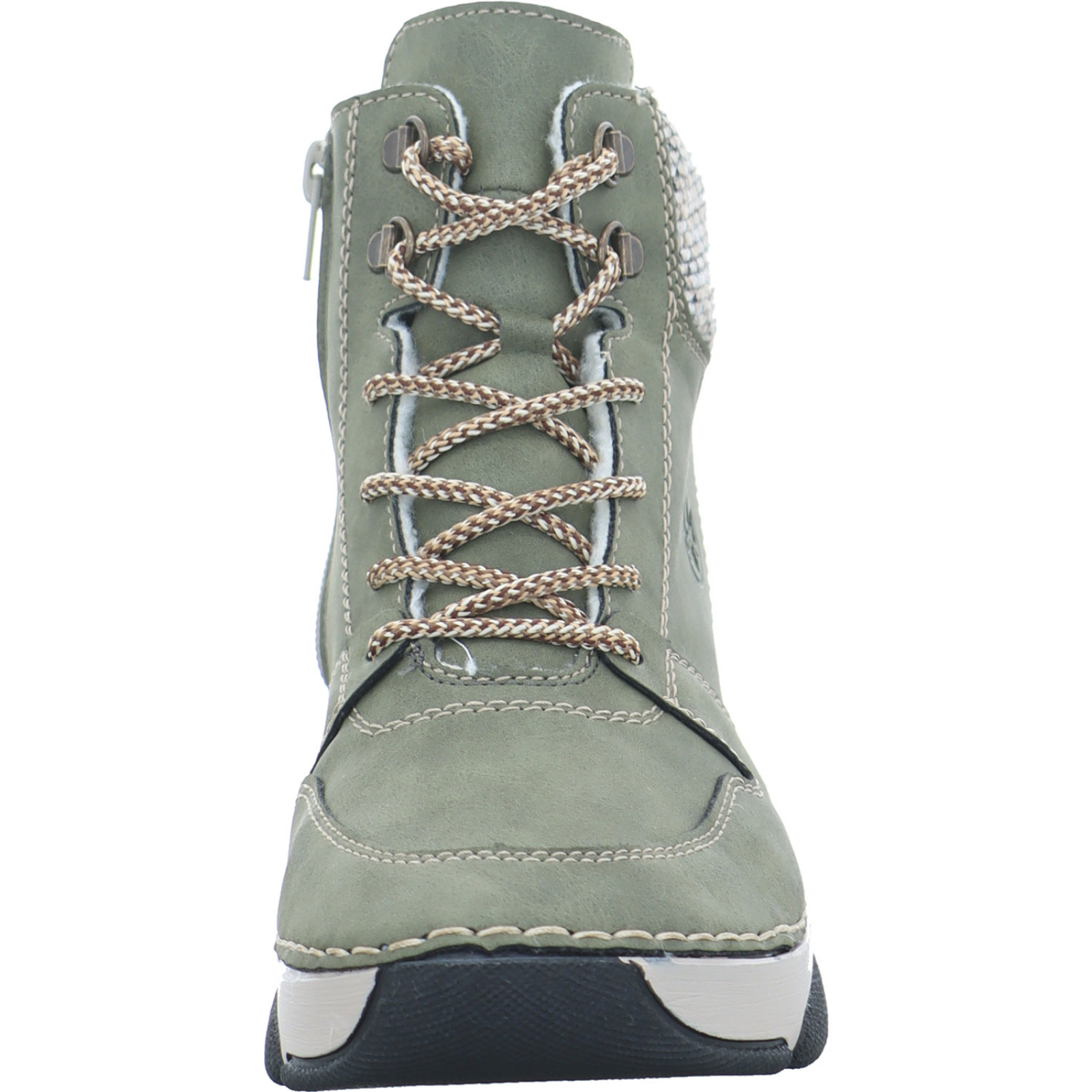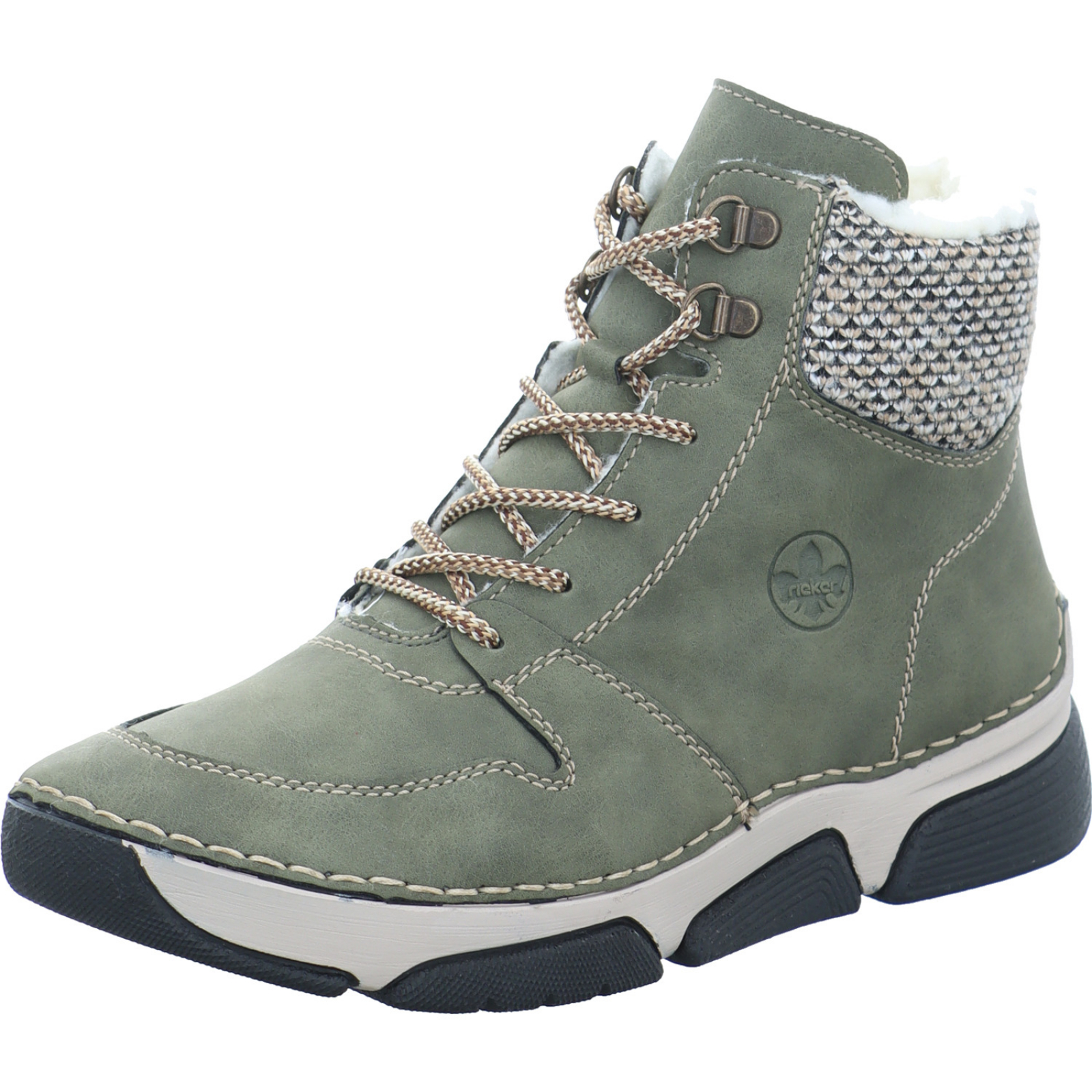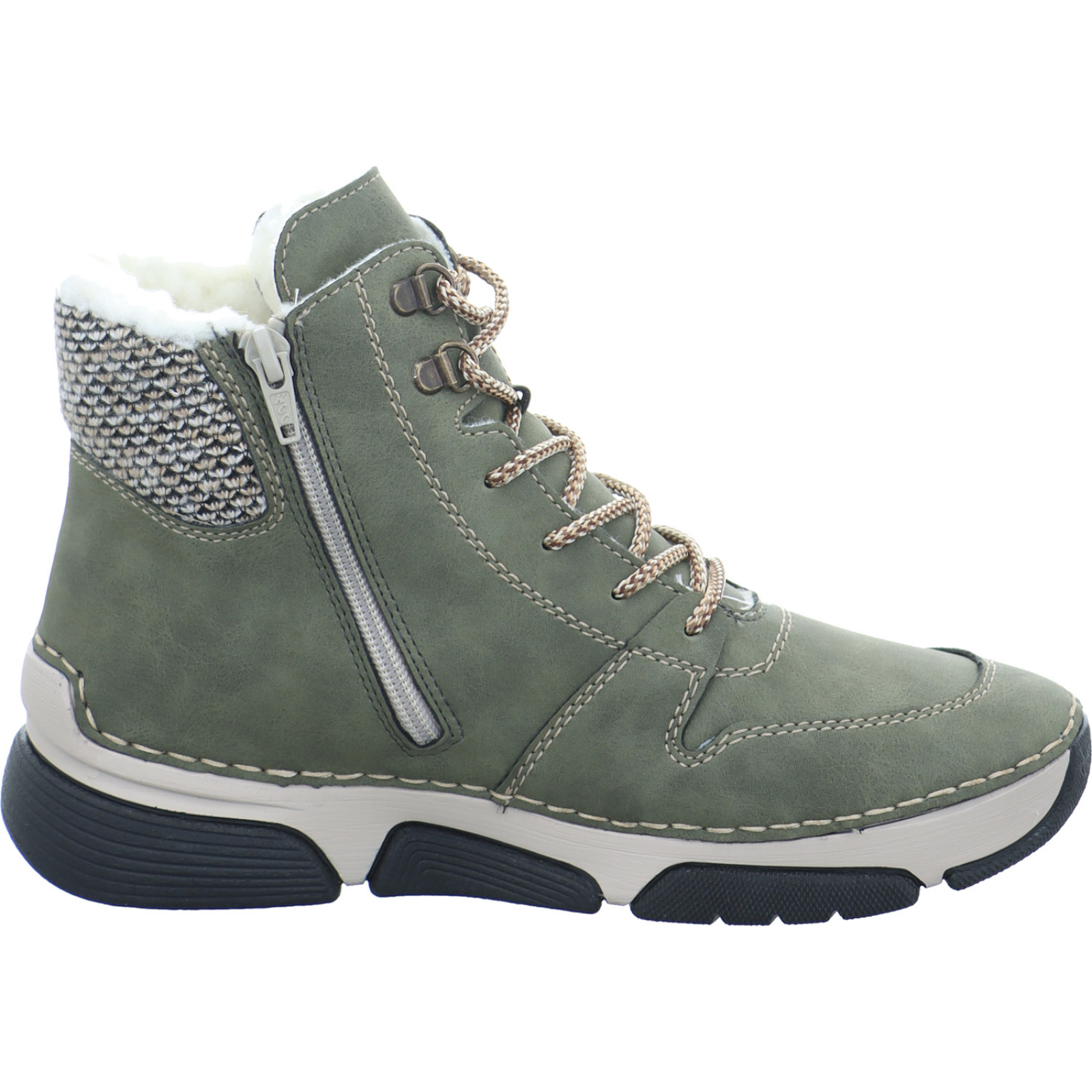 service@rieker.com_____Der mittelgrün-kombinierte Damen-Schnürbootie 45955-54 von Rieker besteht aus High-Tech und Textil.