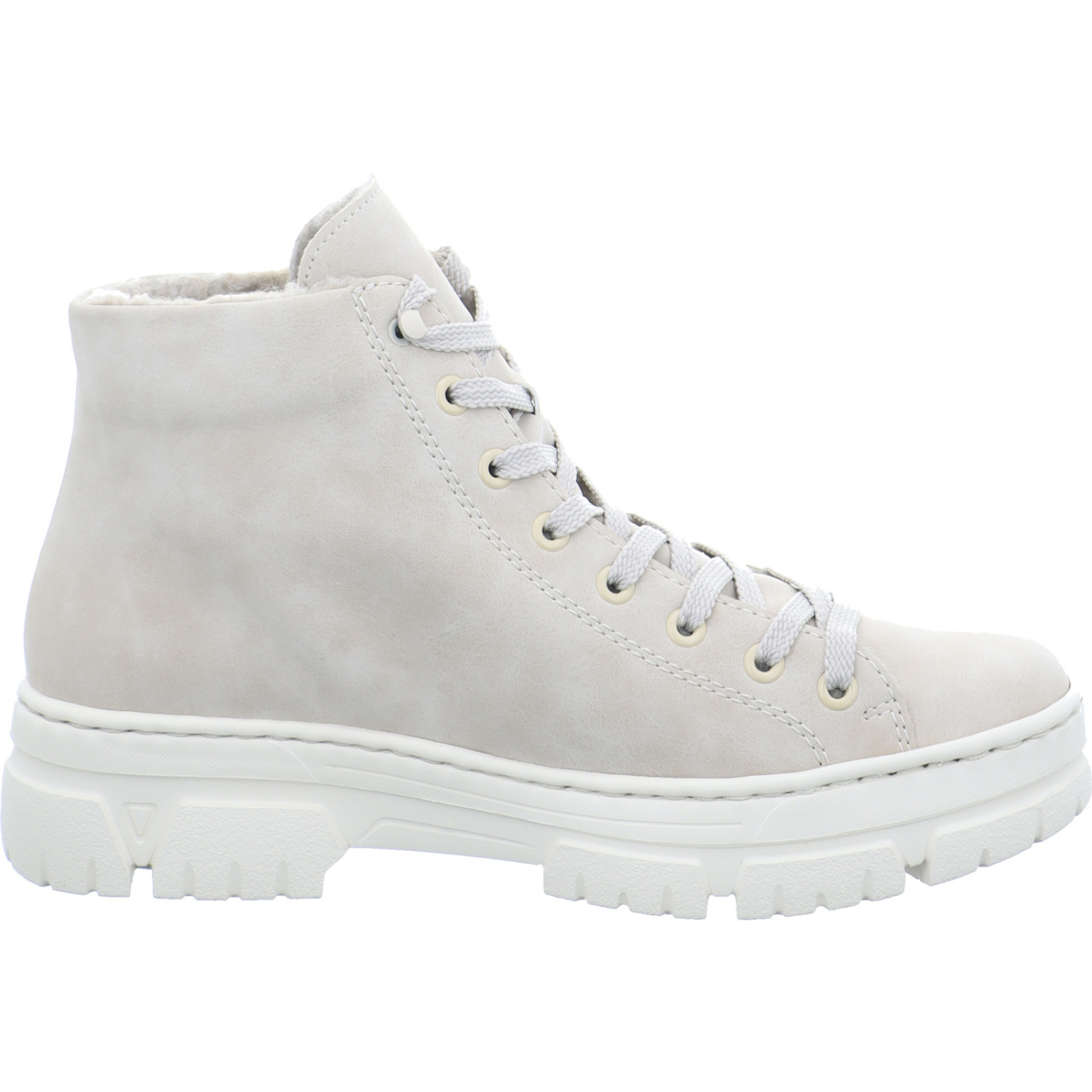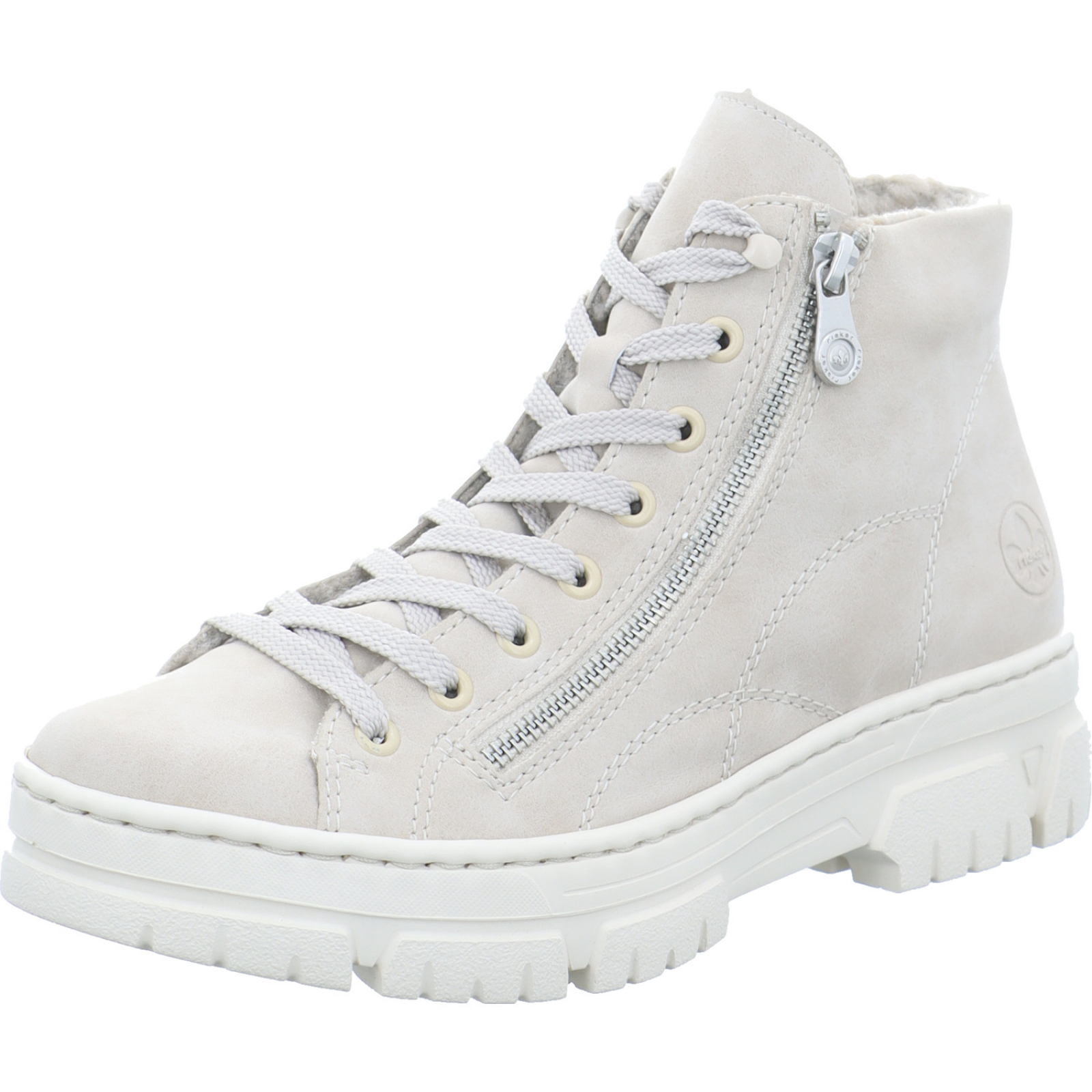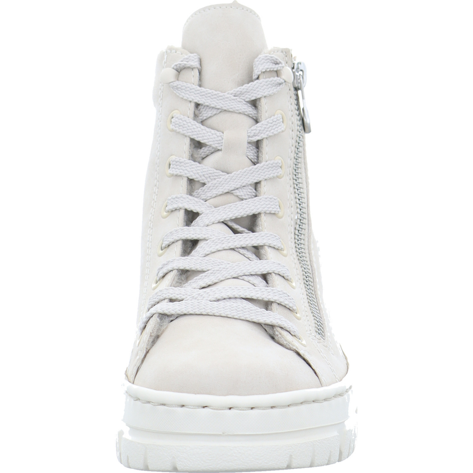 Herstellerinformation: Rieker Schuh GmbH Gänsäcker 31, 78532 Tuttlingen, DE service@rieker.com_____Der hellbeige Damen-Schnürbootie Z7410-62 von Rieker besteht aus High-Tech und hat ein komfortables Wechselfußbet.