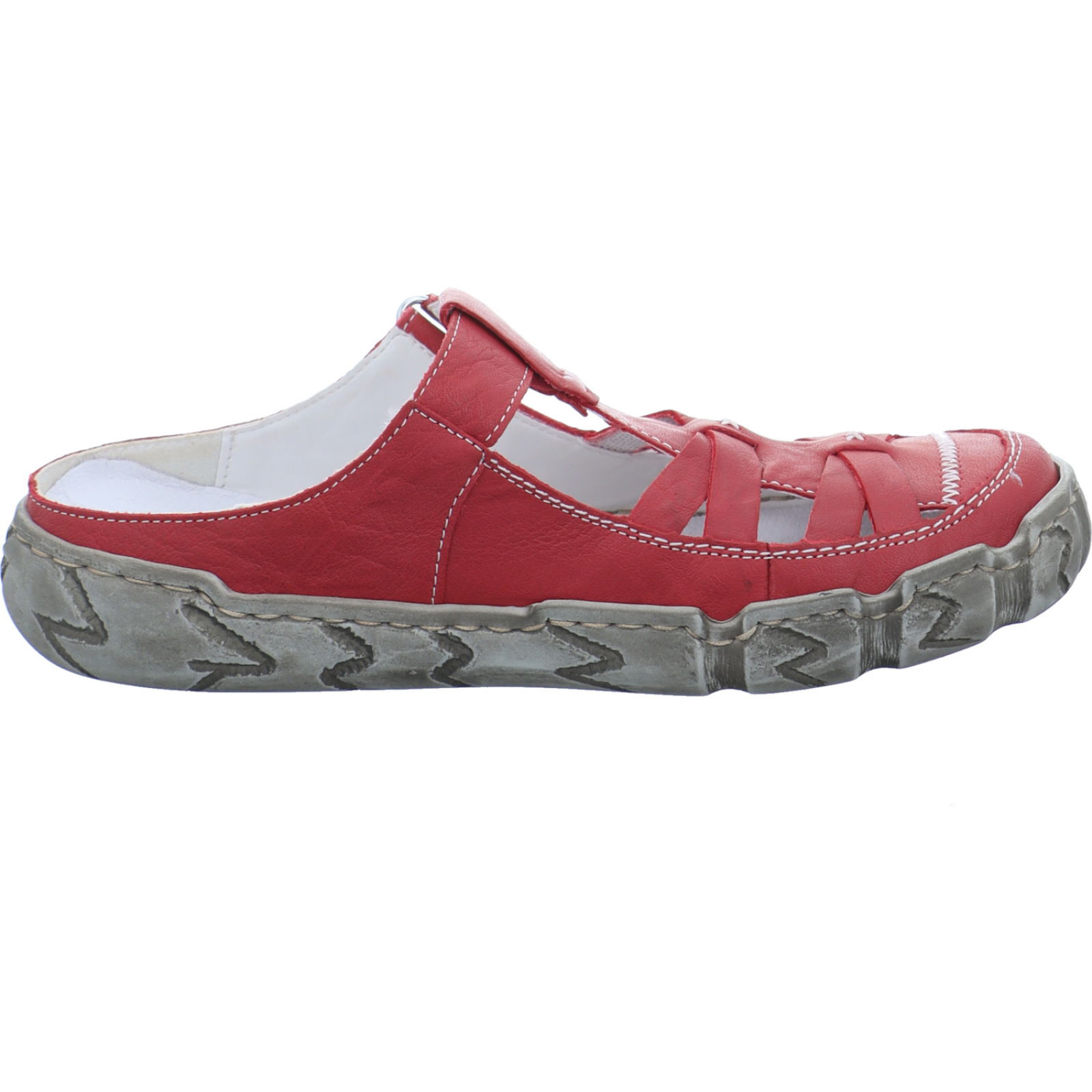 Herstellerinformation: Rieker Schuh GmbH Gänsäcker 31, 78532 Tuttlingen, DE service@rieker.com_____Die mittelrote Damen-Pantolette L0396-33 von Rieker besteht aus Glattleder und hat eine weich gepolsterte Innensohle.