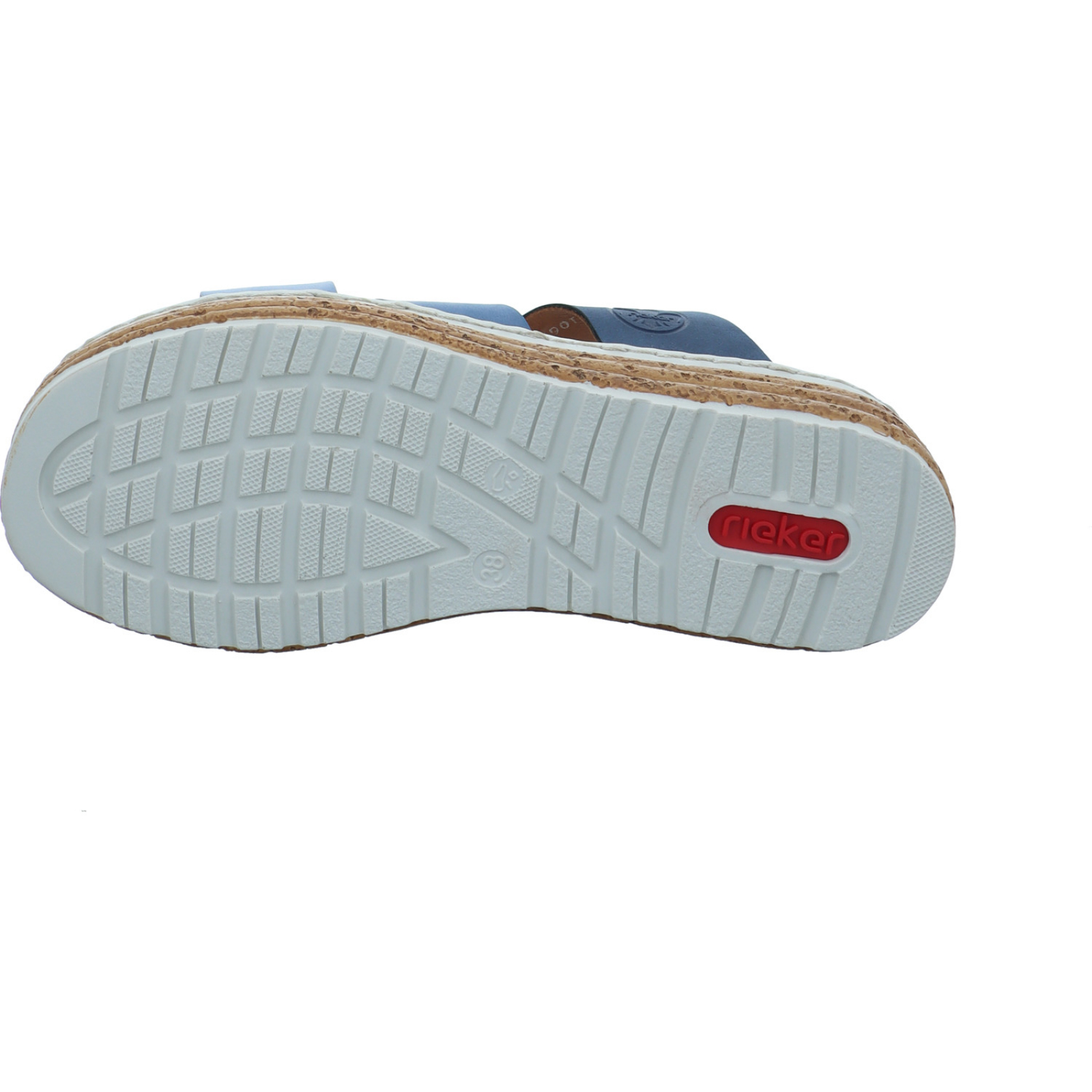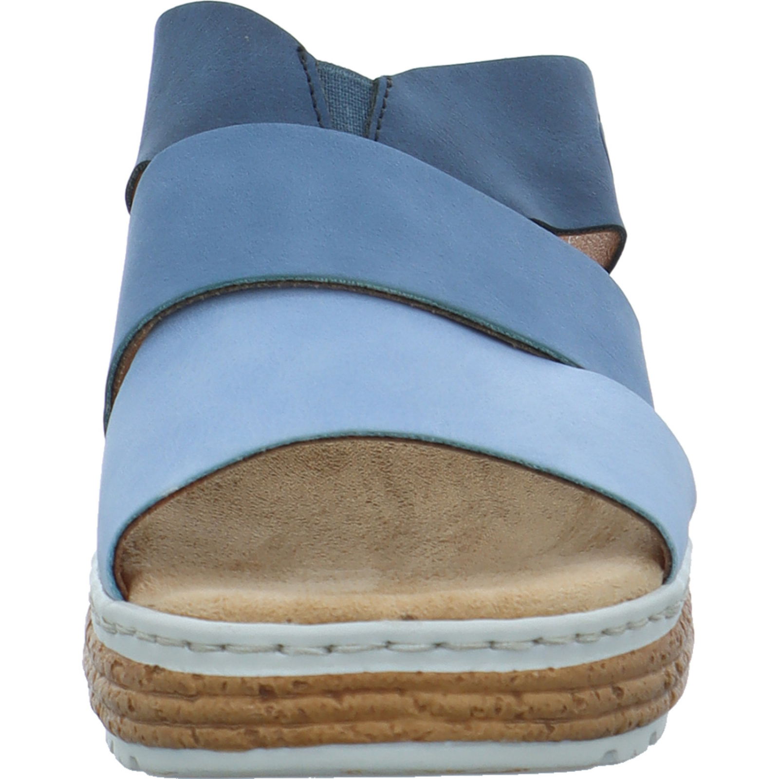 Herstellerinformation: Rieker Schuh GmbH Gänsäcker 31, 78532 Tuttlingen, DE service@rieker.com_____Die blau-kombinierte Damen-Pantolette 62780-12 von Rieker besteht aus High-Tech. Die weich gepolsterte Innensohle sorgt für einen angenehmen Komfort.