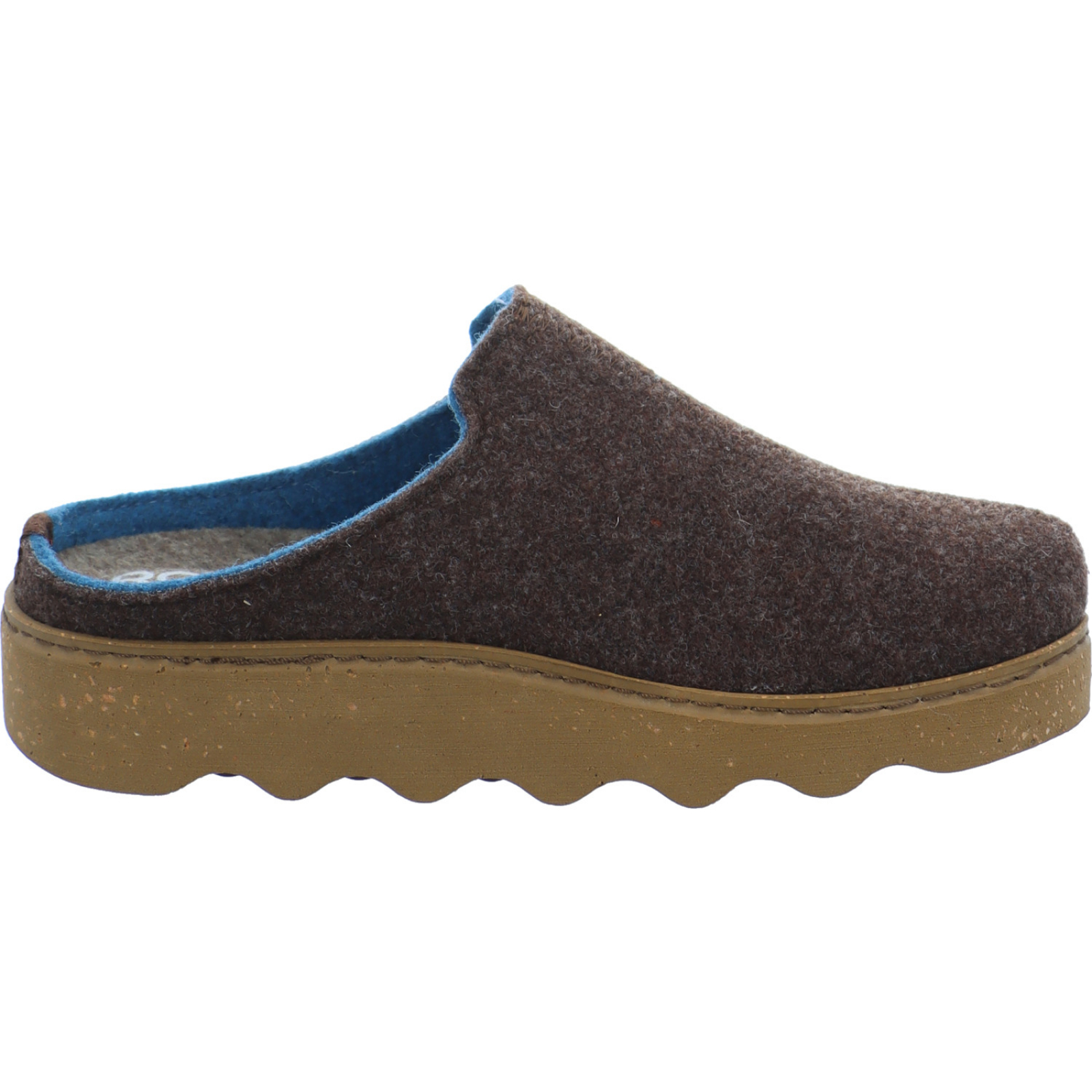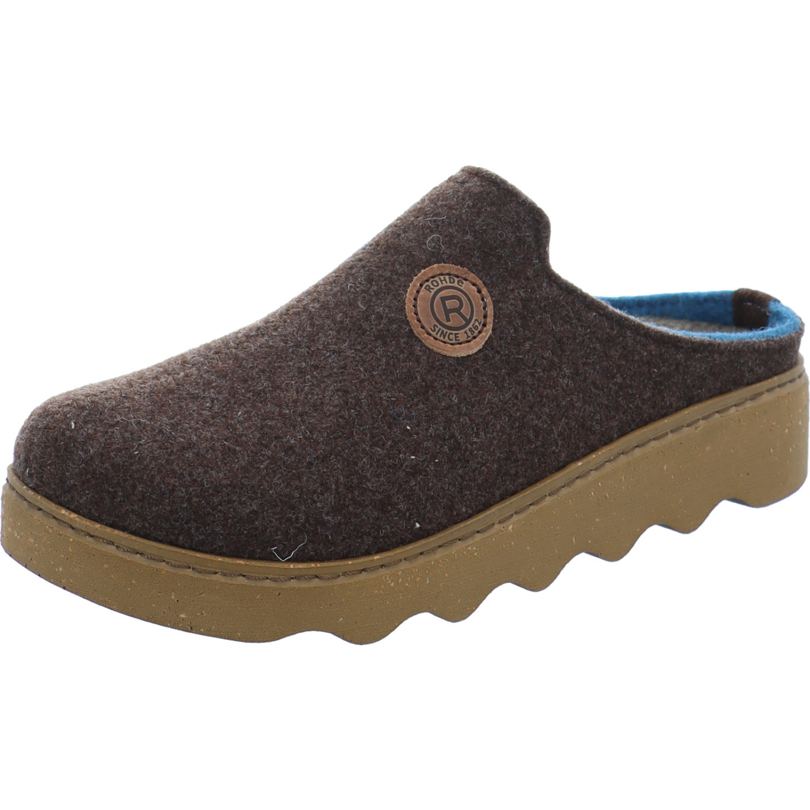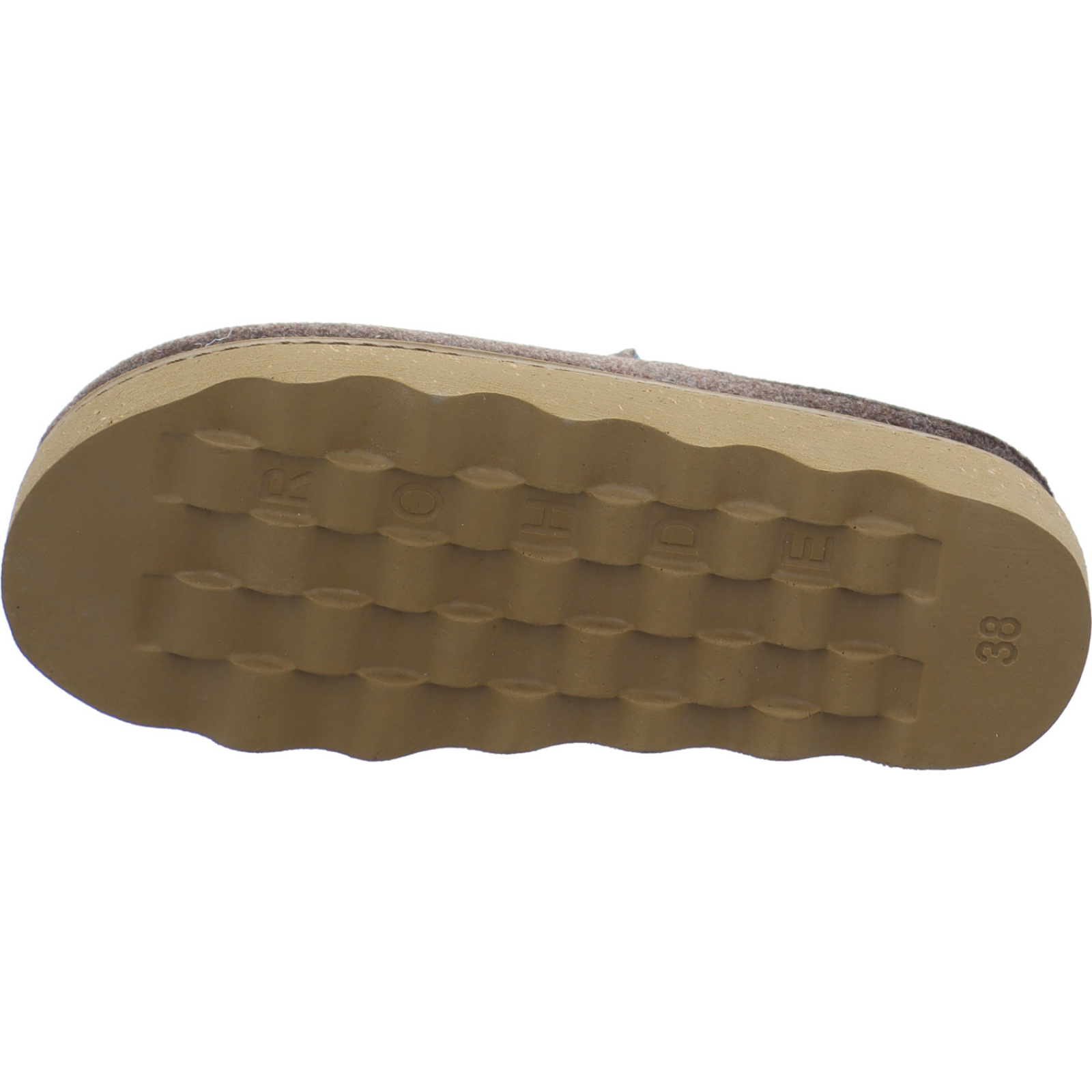 service@rohde-shoes.com_____Der braun-blaue Damen-Hausschuh 6122-72 von Rohde besteht aus Filz und hat ein komfortables Wechselfußbett.