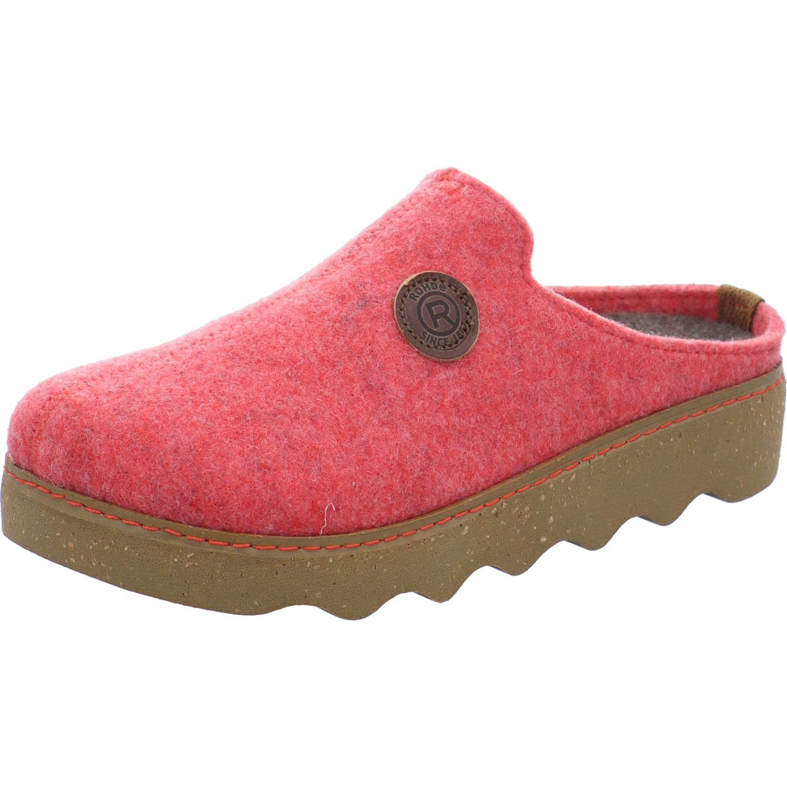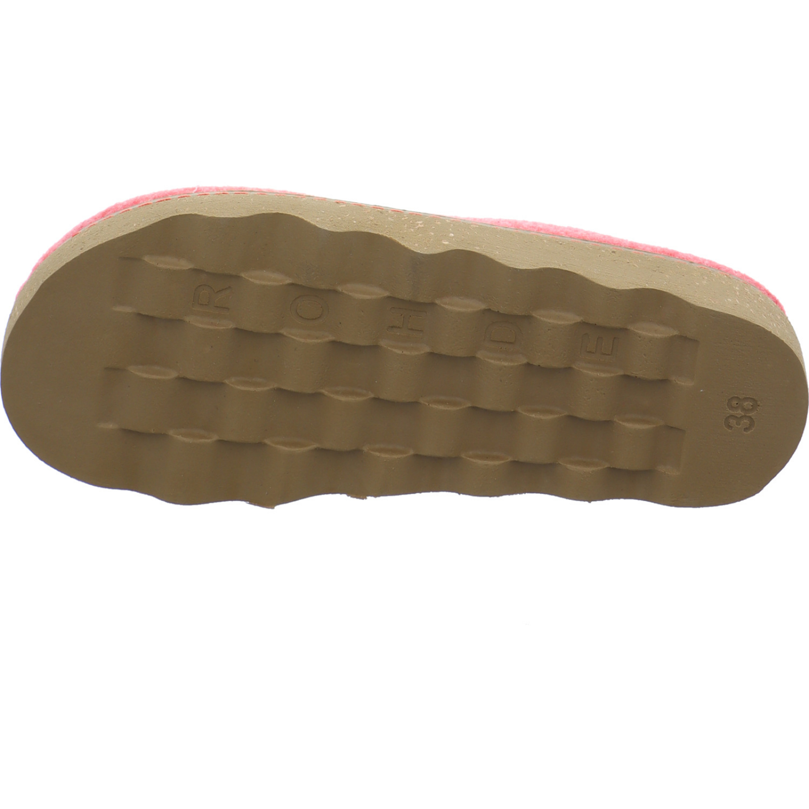 service@rohde-shoes.com_____Dieser komfortable Damen-Hausschuh 6120-40 von der Firma Rohde besteht aus hellroten Filz und hat ein Wechselfußbett.