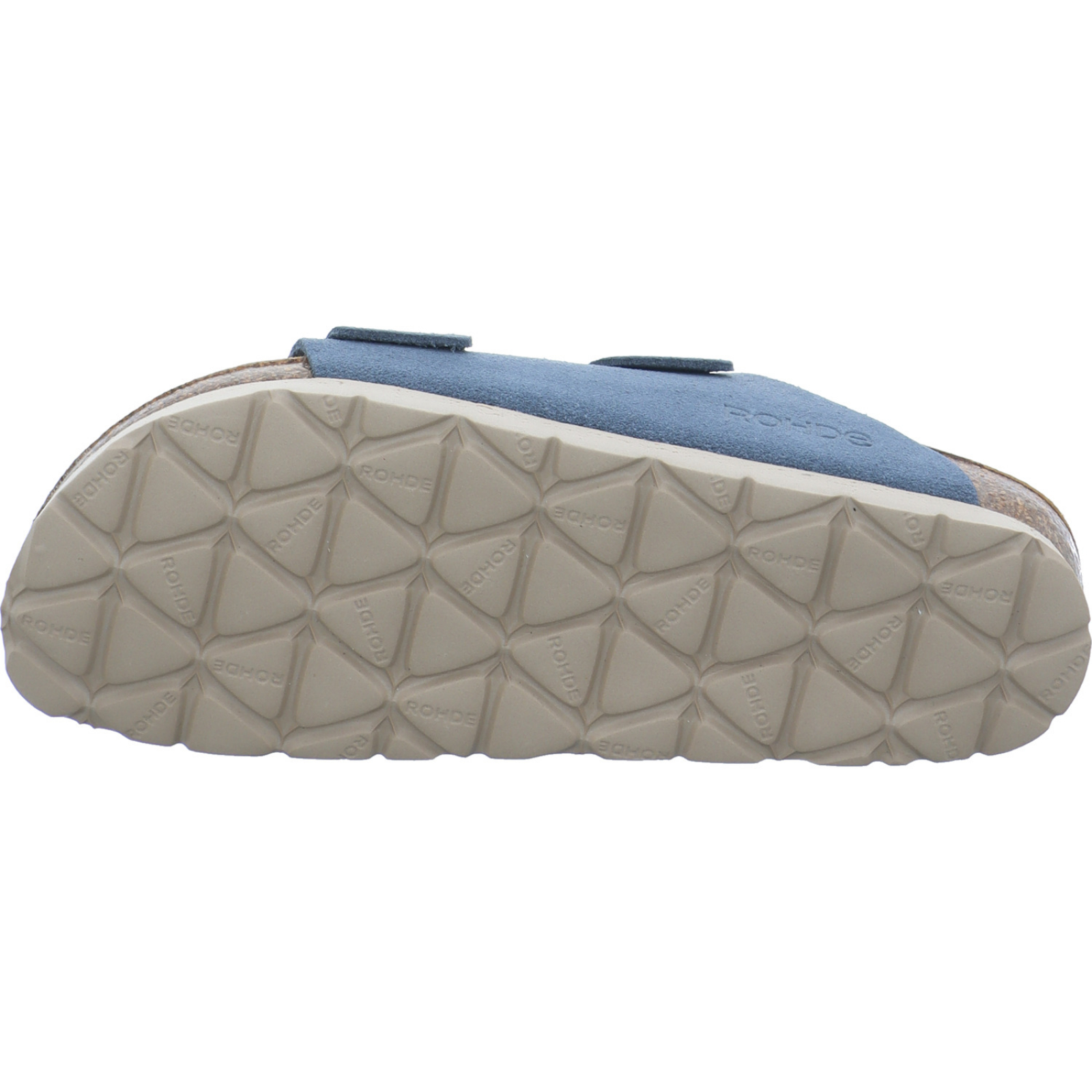 Herstellerinformation: Rohde Shoes GmbH Erich-Rohde-Straße 22, 34613 Schwalmstadt, DE service@rohde-shoes.com_____Die jeansblaue Damen-Pantolette 5590-55 von Rohde besteht aus Veloursleder und hat ein komfortables Kork-Fußbett.