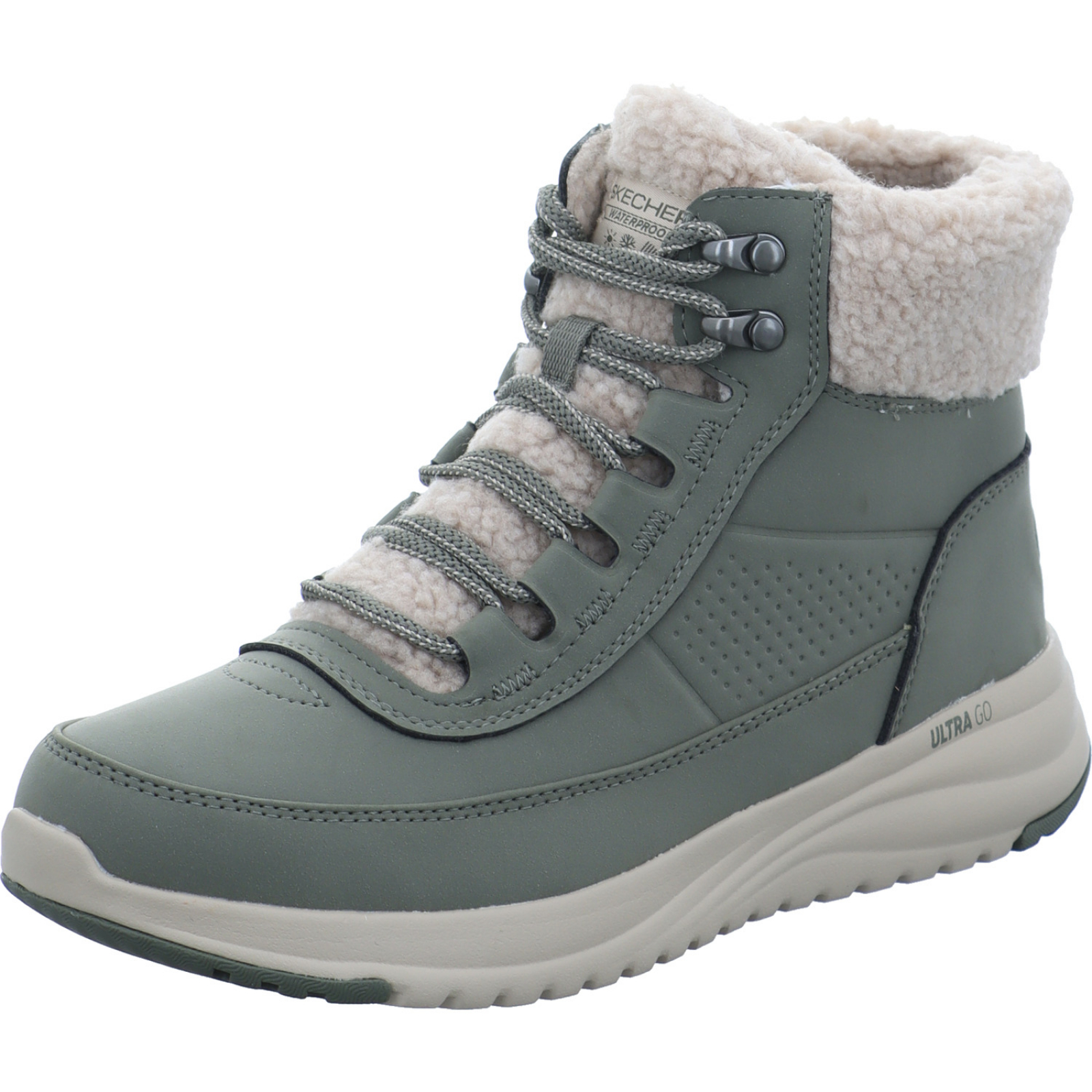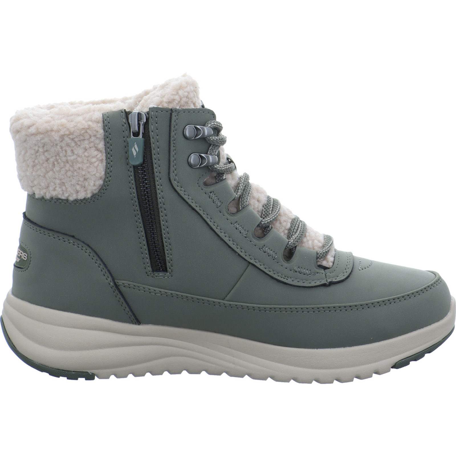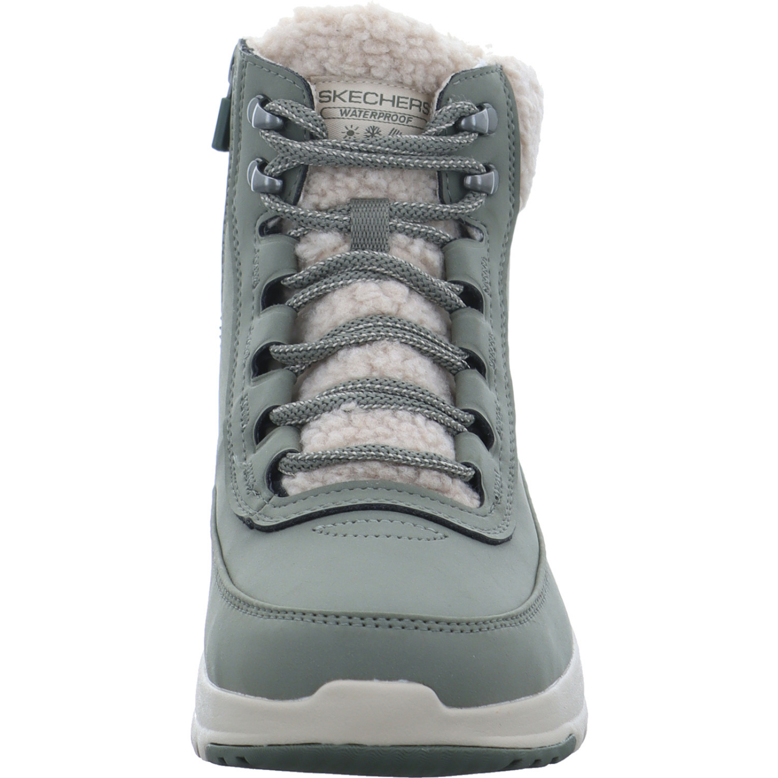 kundenservice@eu.skechers.com_____Der oliv-beige Damen-Schnürbootie On-The-Go Stellar-Alpine Adventure von Skechers besteht aus High-Tech und Teddy.
