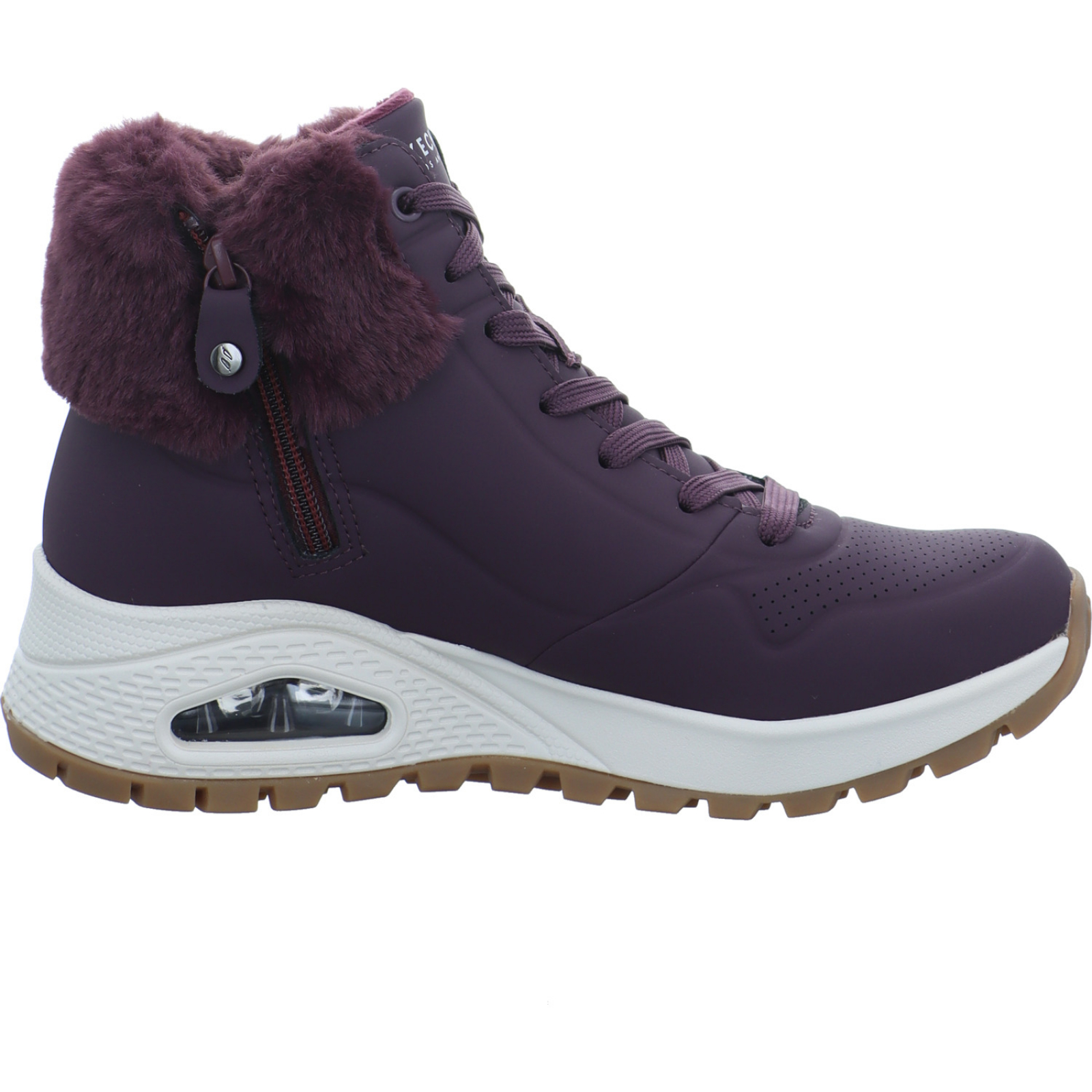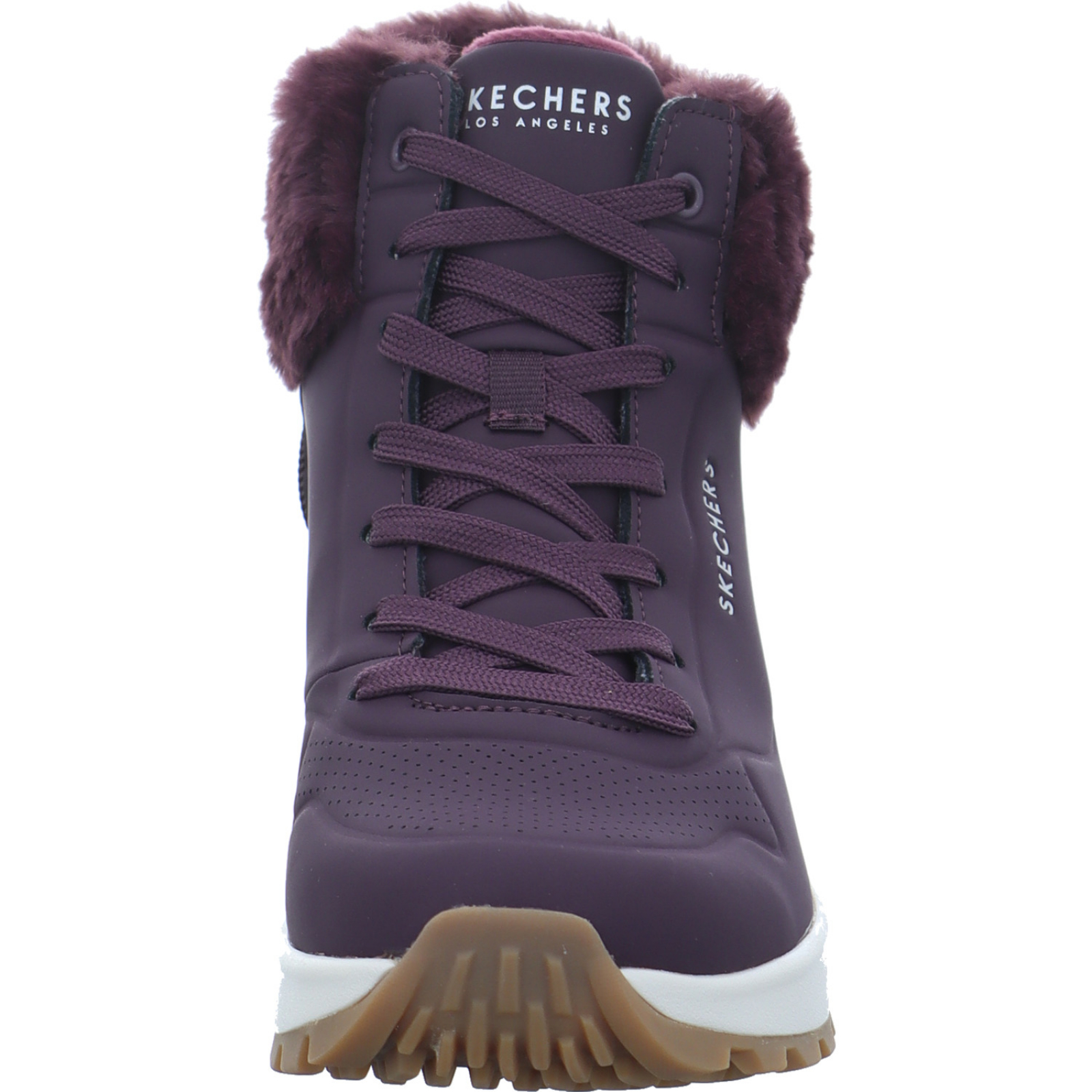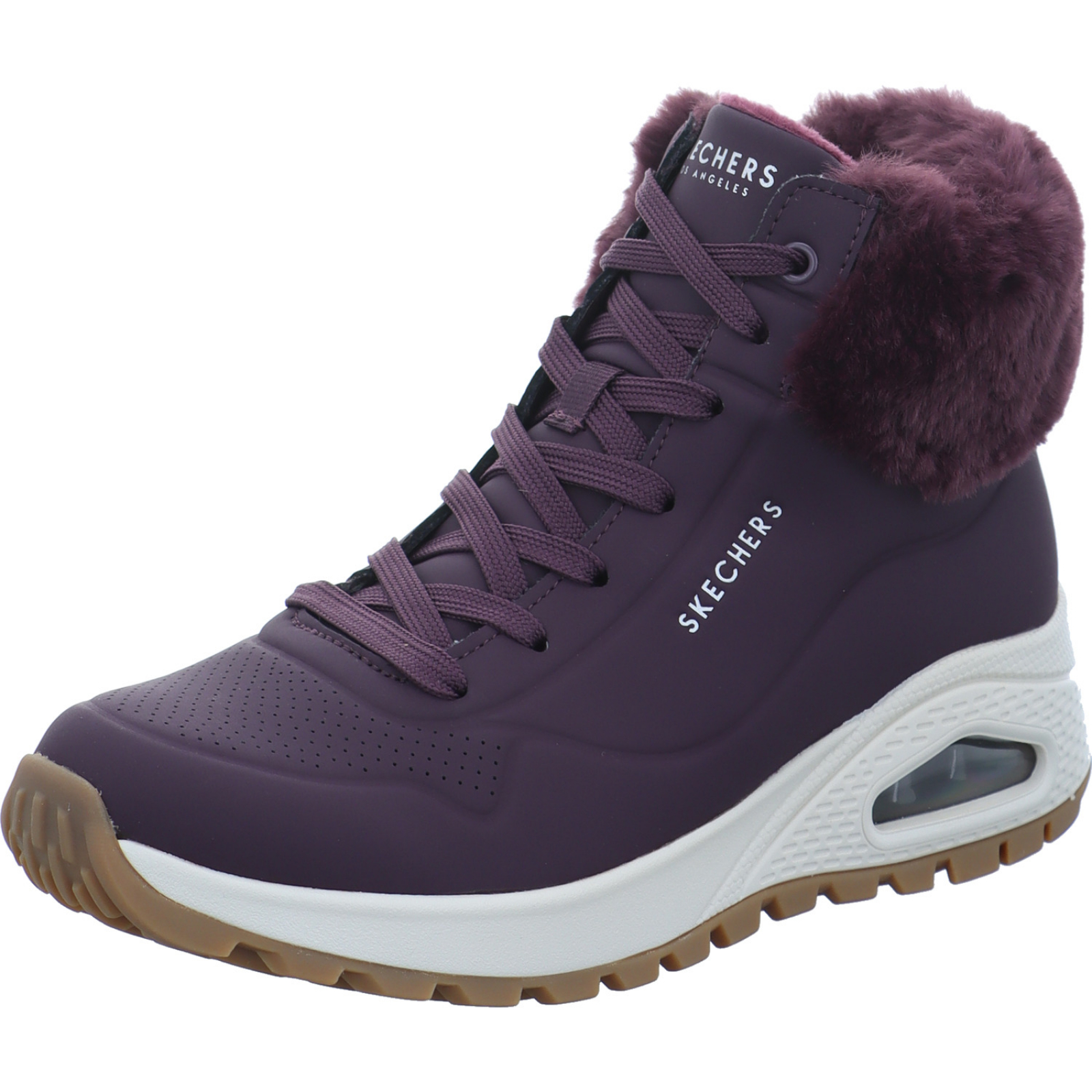 kundenservice@eu.skechers.com_____Der bordo-dunkellila-farbene Damen-Schnürbootie Uno Rugged-Fall Air 167274 WINE von Skechers besteht aus High-Tech und Teddy.
