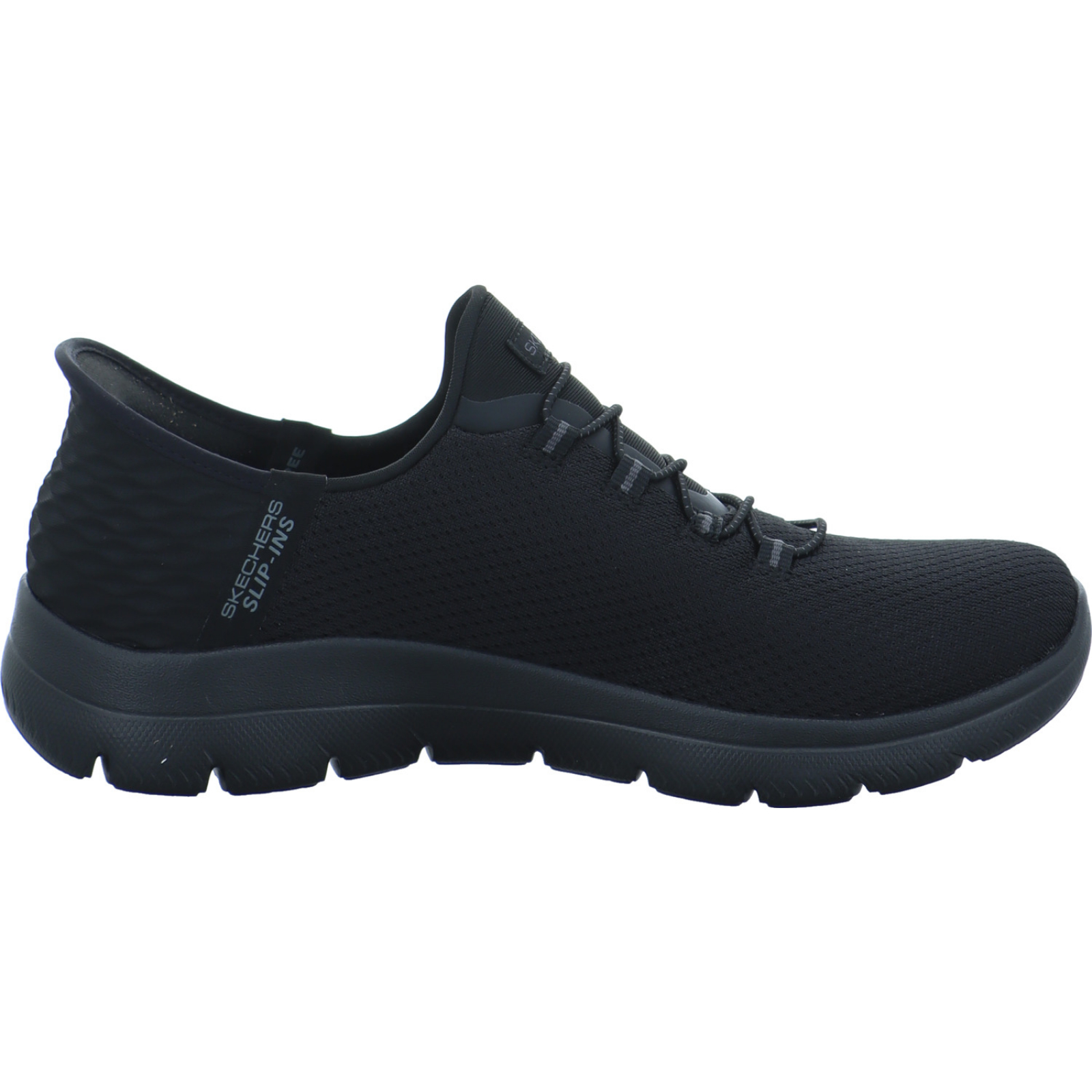 _____ Der schwarze Damen-Sportschuh Summits-Diamont Dream 150123 BBK von Skechers besteht aus Mesh, High-Tech und Textil. Die praktische Slip-ins Funktion ermöglicht ein einfaches, freihändiges Hineinschlüpfen.