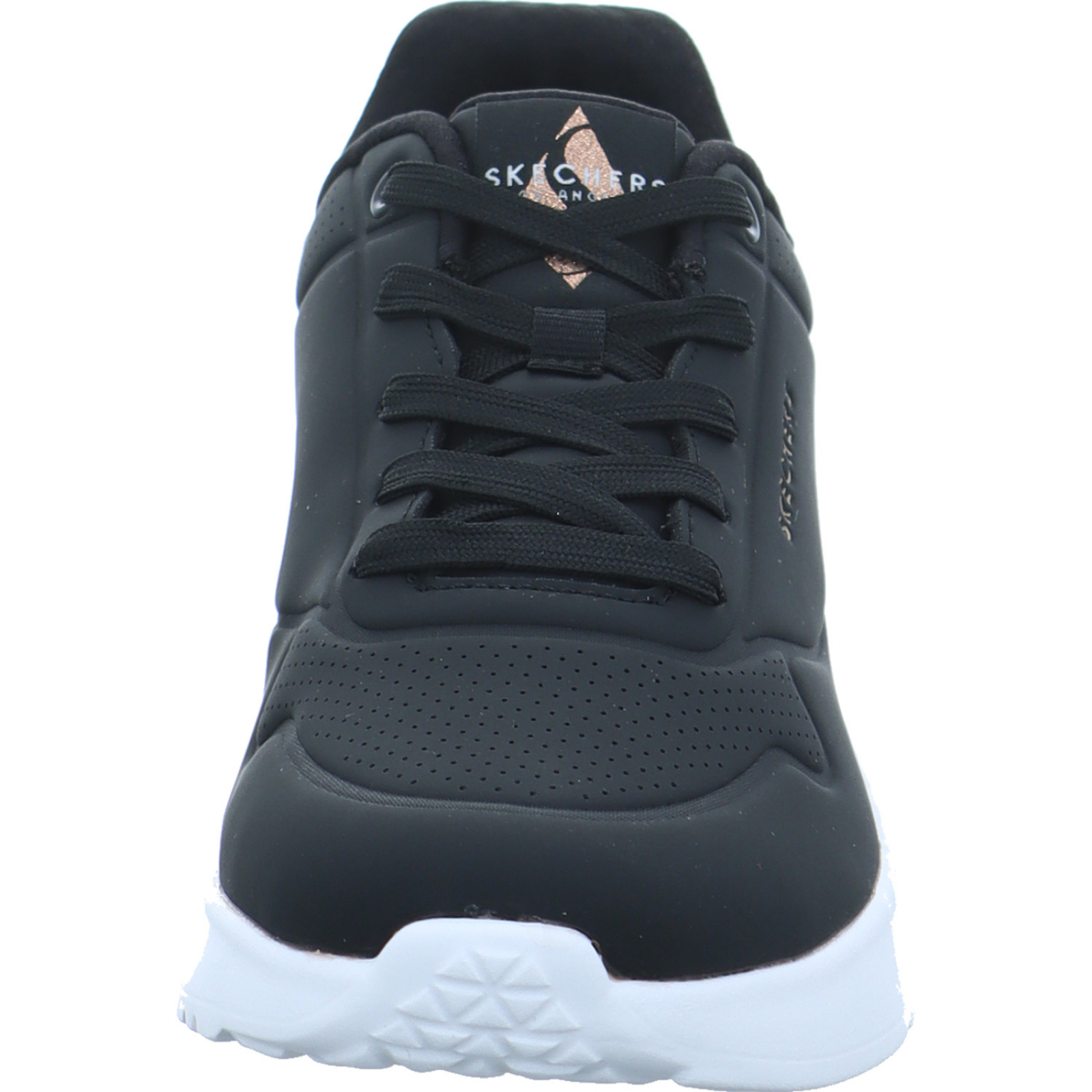 kundenservice@eu.skechers.com_____Der schwarz-bronze-farbene Damen-Sneaker Uno Lite-Shimmer Along von Skechers besteht aus High-Tech und hat eine komfortable Memory Foam Innensohle.