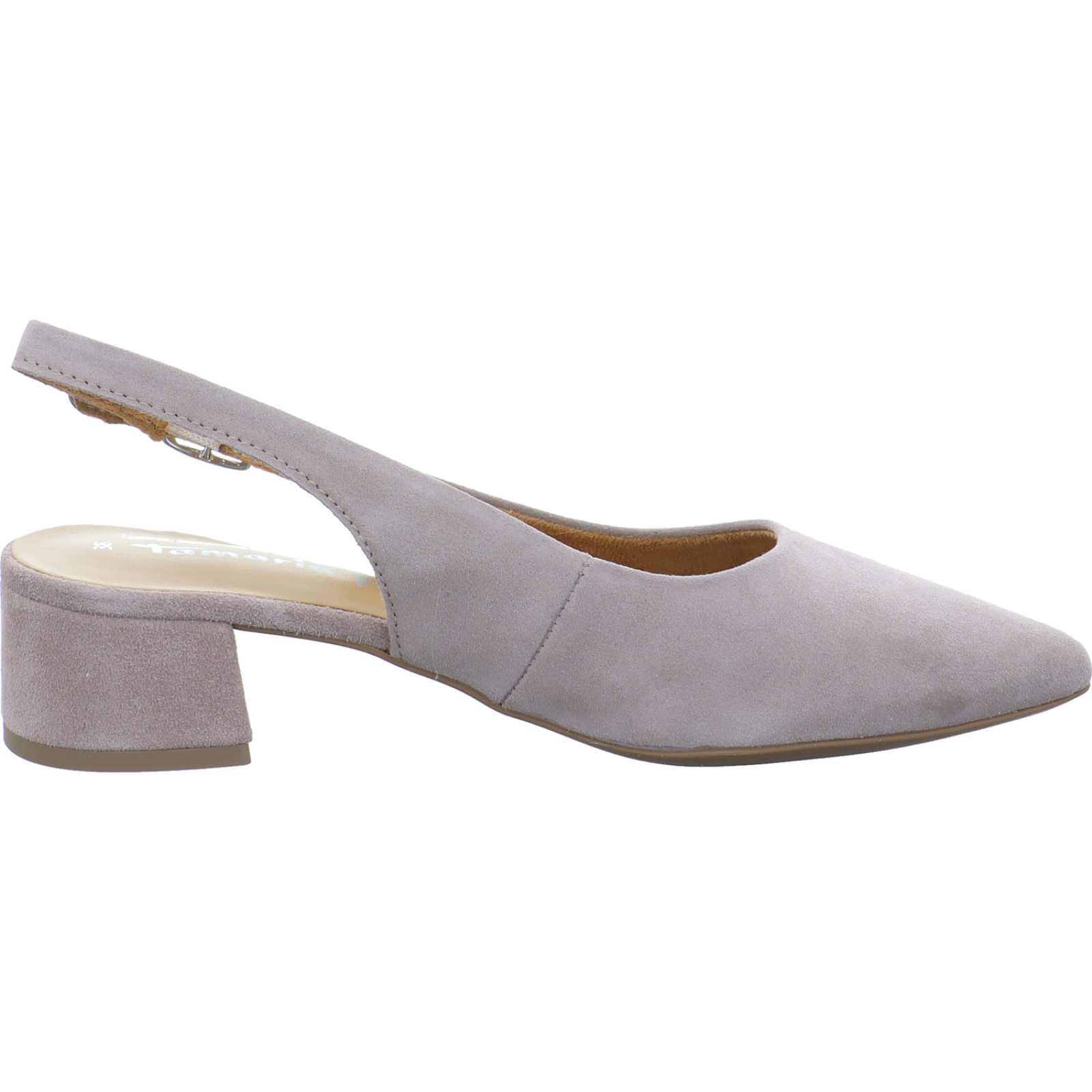 service.de@tamaris.com_____Der mittelbeige Damen-Sling 1-29500-42-341 von Tamaris besteht aus Veloursleder. Das weiche Fußbett mit Touch it Technologie bietet einen optimalen Tragekomfort.