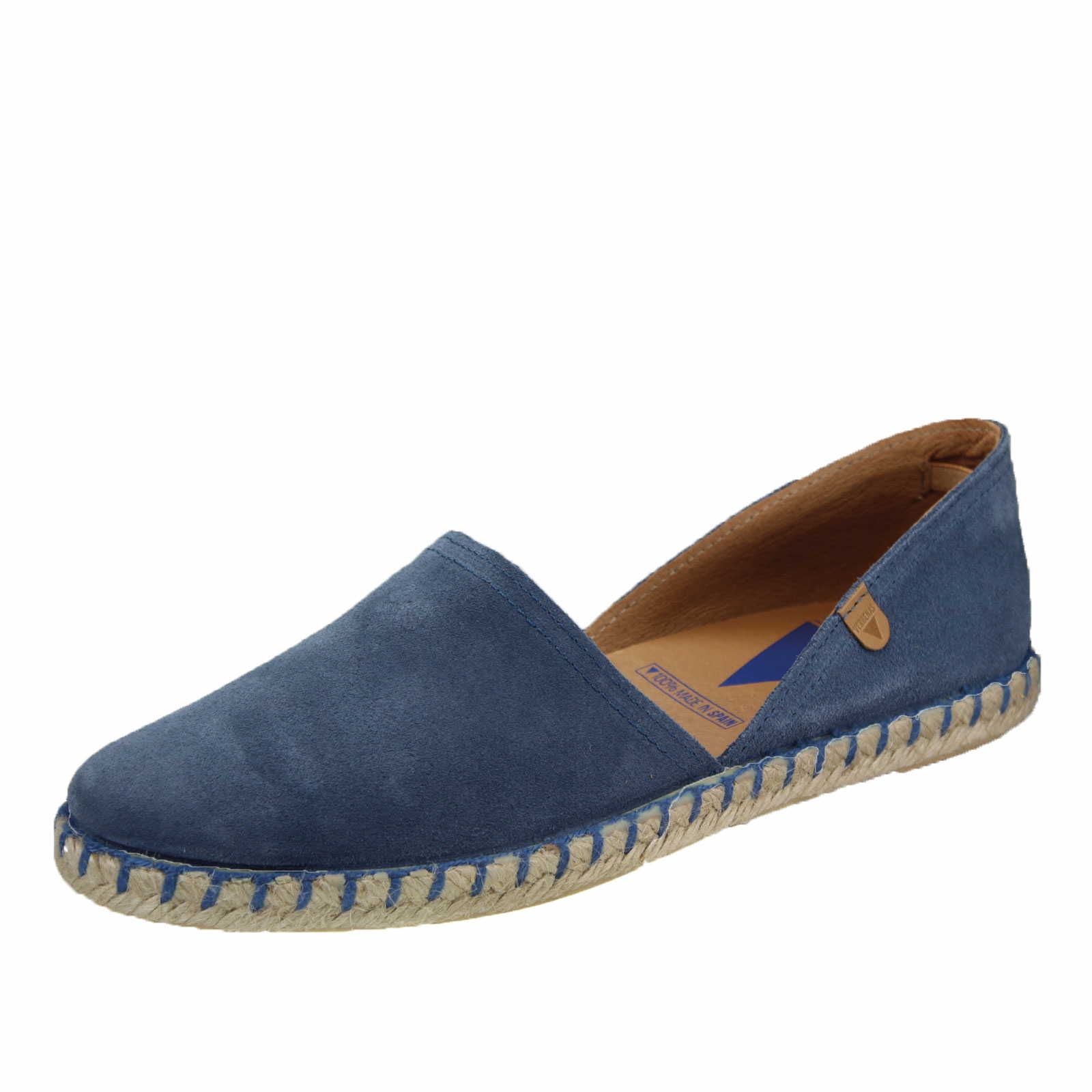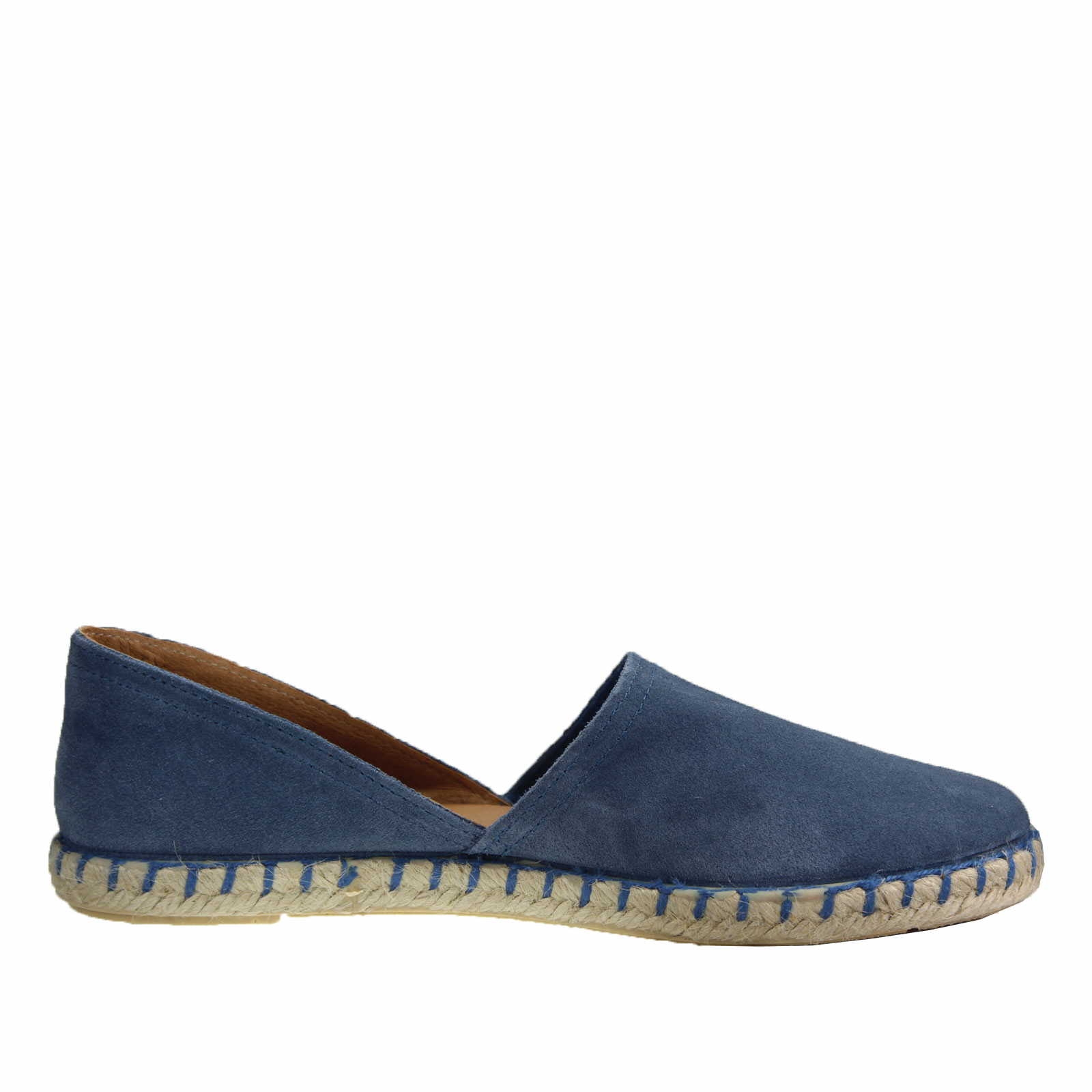 hola@verbenas.com _____Die jeansblaue Damen-Espandrille Carmen Serraje von Verbenas besteht aus Veloursleder.