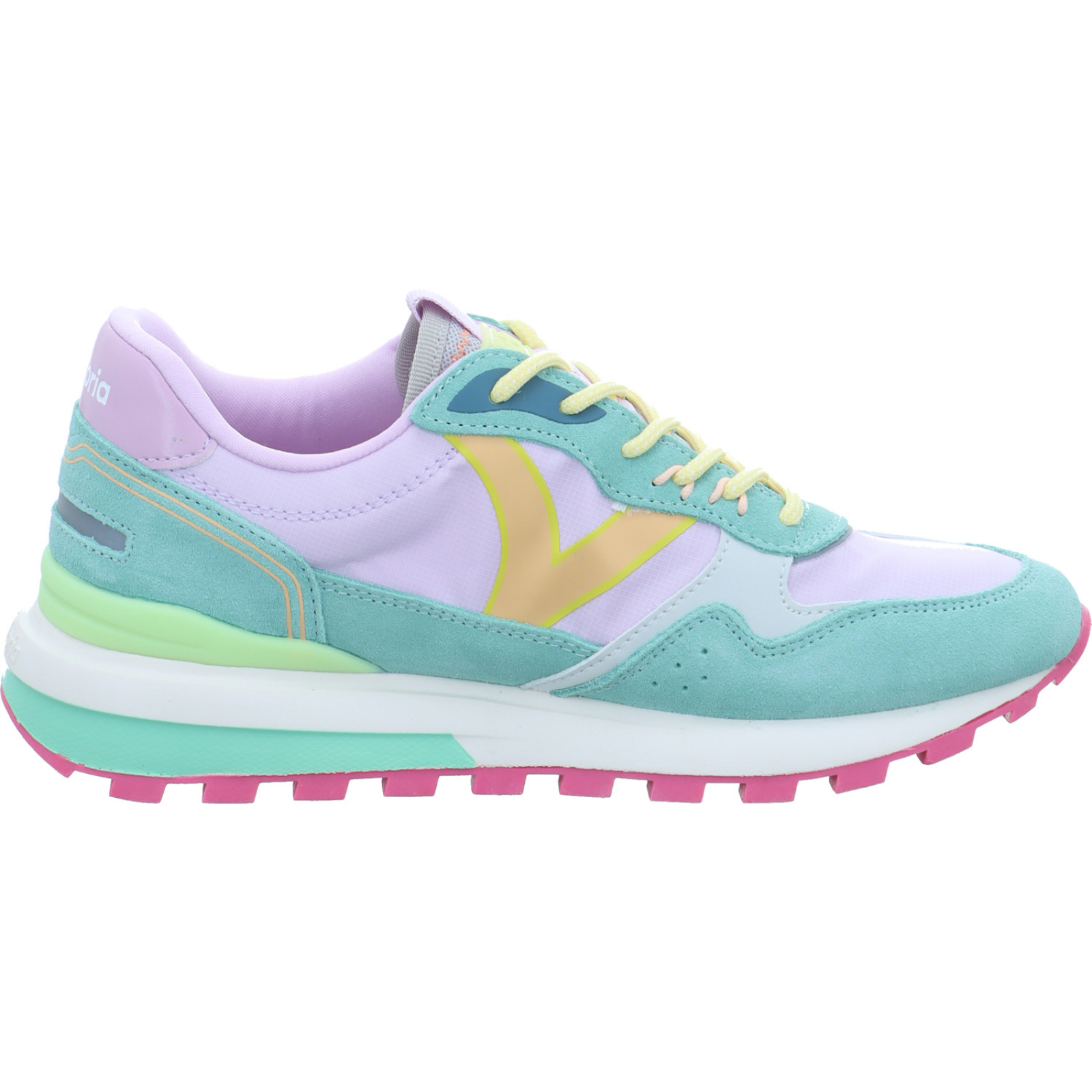 calidad@nuevomilenio.es_____Der lila-multifarbene Damen-Schnürhalbschuh 1156115-91 von Victoria besteht aus Velours- und Glattleder sowie Textil und Mesh. Dieses Modell überzeugt nicht nur optisch durch seine sommerlichen Farben, sondern bietet auch noch einen optimalen Komfort dank dem weichen Wechselfußbett.